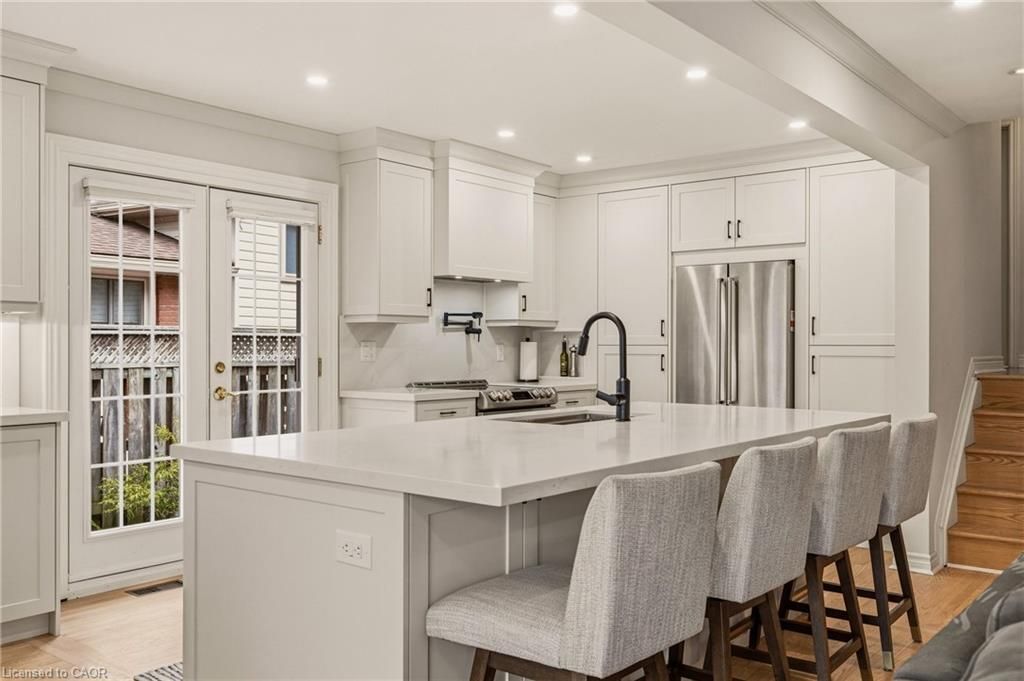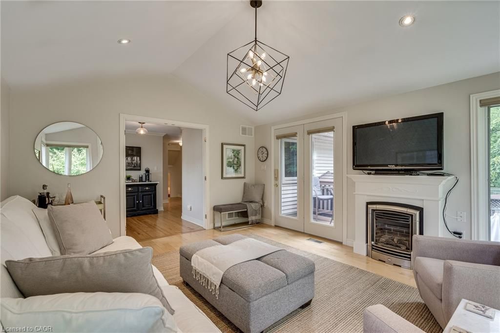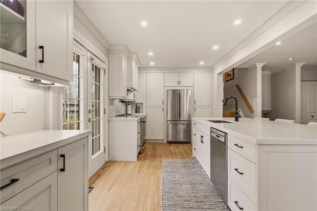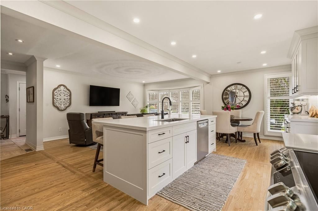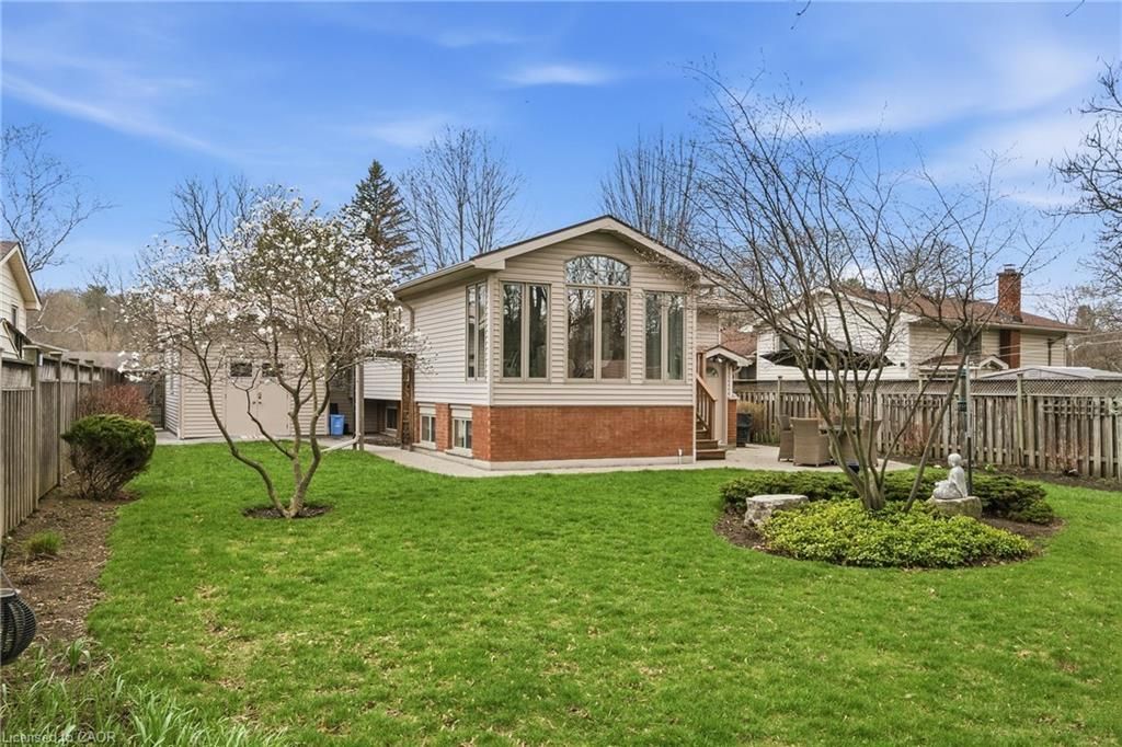 Perfectly positioned just steps from little john park and set on an impressive 175-foot deep lot backing directly onto the rail trail, this exceptional split-level home captures the very best of dundas living. Surrounded by nature, close to countless amenities, and thoughtfully enhanced, this 3 bedroom, two bathroom, three-level back split is designed to impress! Inside, the home reveals an exquisitely renovated open-concept living, dining, and kitchen space, finished with high-end materials and designed with both everyday comfort and stylish entertaining in mind. Oversized windows flood the space with natural light, while the kitchen impresses with quartz countertops, premium appliances, and refined detailing throughout. A short set of stairs leads to the upper level, offering a beautifully updated full bathroom and two generously sized bedrooms, including a serene primary retreat with walk-in closet. A rare and inviting wine bar/coffee station transitions seamlessly into the rear family room addition-an ideal place to relax while taking in uninterrupted views of the stunning backyard, or step out through patio doors to enjoy the fresh air. The fully finished lower level provides additional versatile living space, while the attached garage offers both interior access and a convenient rear door to the yard. The exterior won't disappoint, featuring a durable steel roof, lush perennial gardens, composite decking, and an exposed aggregate patio. A beautifully landscaped yard unfolds behind the home, where a spacious deck off the family room invites effortless outdoor dining, while a charming pergola tucked at the rear creates the perfect setting to unwind by the firepit under the stars. Meticulously maintained and thoughtfully upgraded, this home is a rare offering that blends natural beauty, refined design, and everyday functionality.