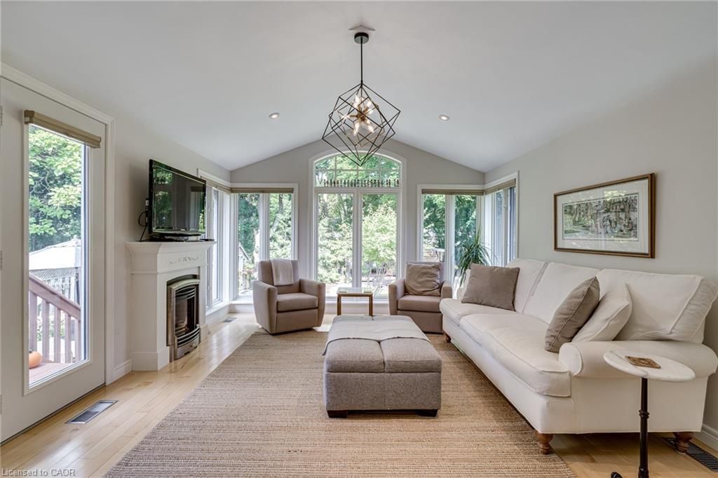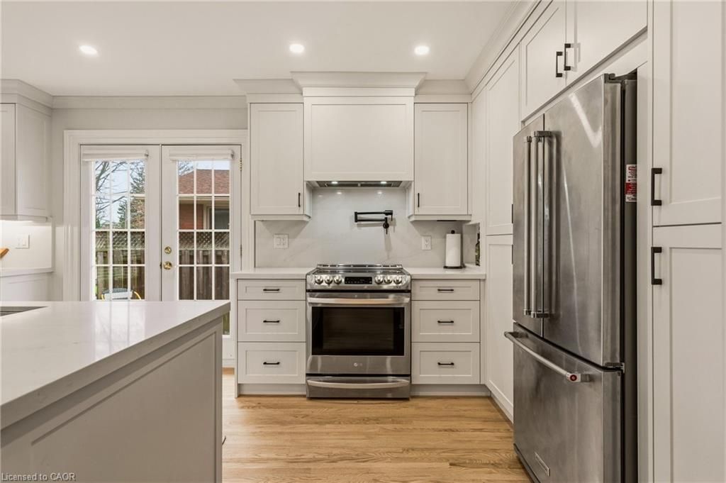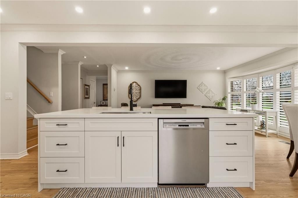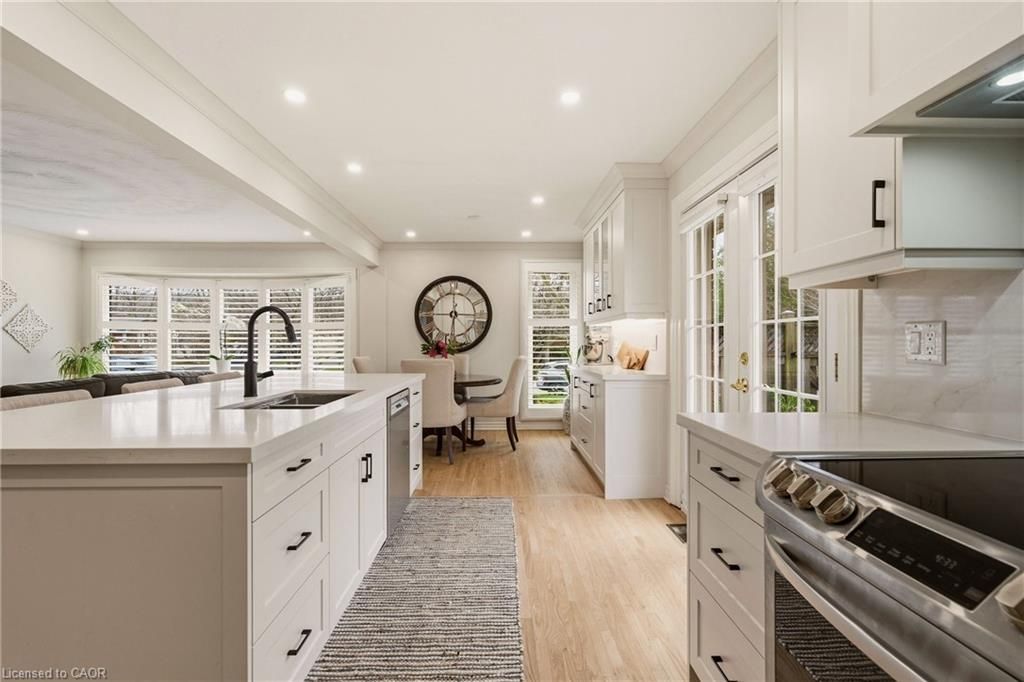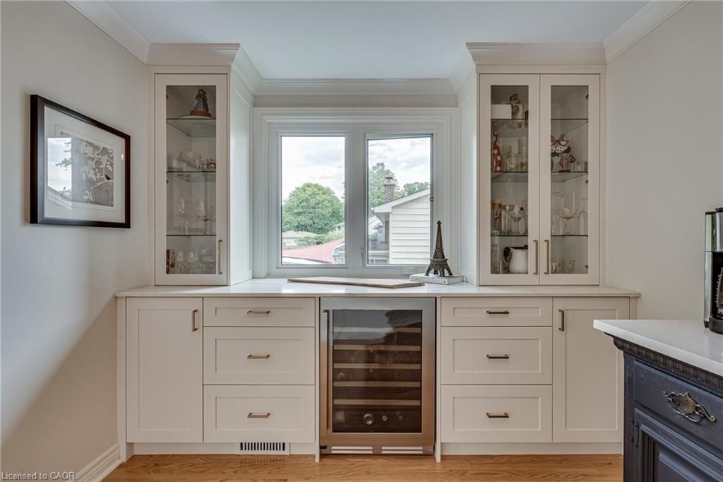 Perfectly positioned just steps from little john park and set on an impressive 175-foot deep lot backing directly onto the rail trail, this exceptional split-level home captures the very best of dundas living. Surrounded by nature, close to countless amenities, and thoughtfully enhanced, this 3 bedroom, two bathroom, three-level back split is designed to impress! Inside, the home reveals an exquisitely renovated open-concept living, dining, and kitchen space, finished with high-end materials and designed with both everyday comfort and stylish entertaining in mind. Oversized windows flood the space with natural light, while the kitchen impresses with quartz countertops, premium appliances, and refined detailing throughout. A short set of stairs leads to the upper level, offering a beautifully updated full bathroom and two generously sized bedrooms, including a serene primary retreat with walk-in closet. A rare and inviting wine bar/coffee station transitions seamlessly into the rear family room addition-an ideal place to relax while taking in uninterrupted views of the stunning backyard, or step out through patio doors to enjoy the fresh air. The fully finished lower level provides additional versatile living space, while the attached garage offers both interior access and a convenient rear door to the yard. The exterior won't disappoint, featuring a durable steel roof, lush perennial gardens, composite decking, and an exposed aggregate patio. A beautifully landscaped yard unfolds behind the home, where a spacious deck off the family room invites effortless outdoor dining, while a charming pergola tucked at the rear creates the perfect setting to unwind by the firepit under the stars. Meticulously maintained and thoughtfully upgraded, this home is a rare offering that blends natural beauty, refined design, and everyday functionality.