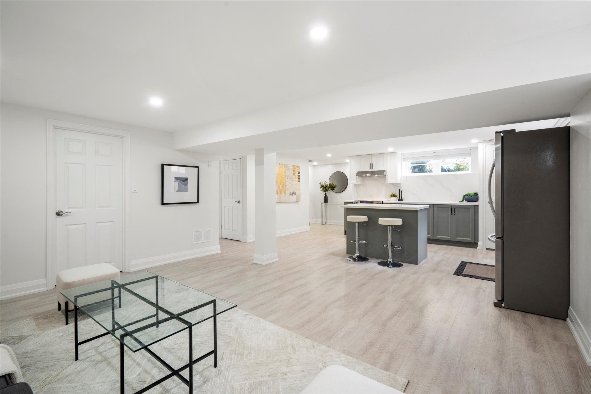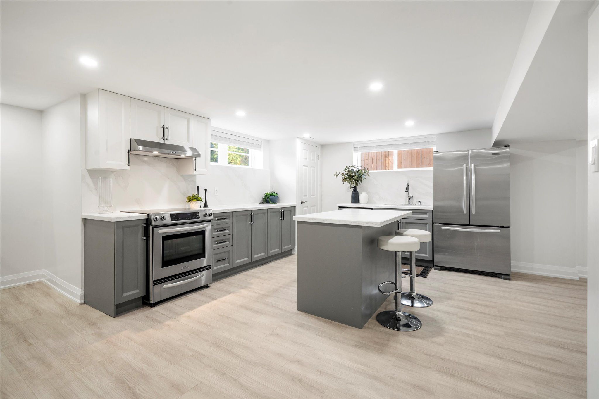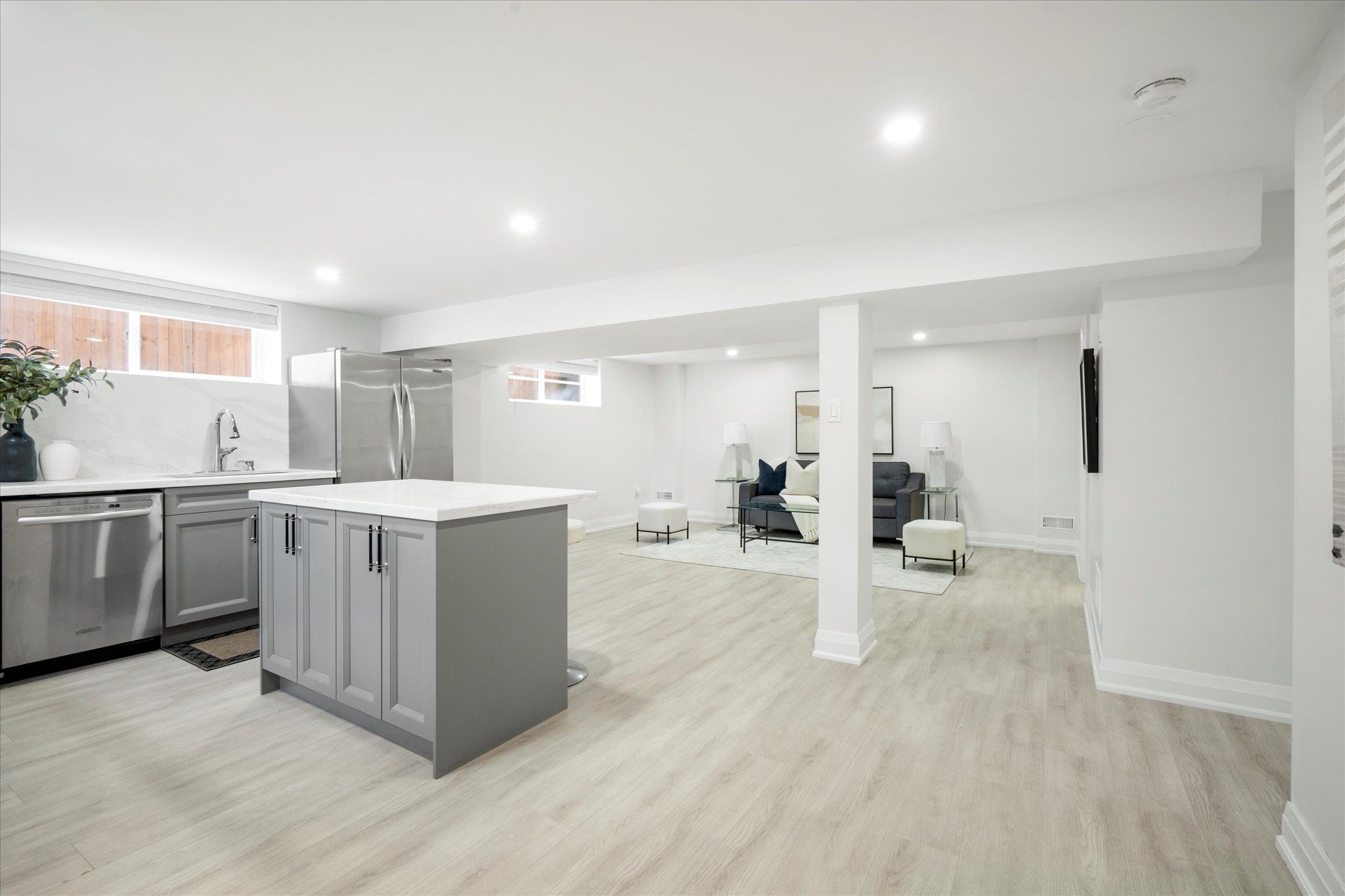 • Finished lower level with living area, full kitchen, and private bedroom.