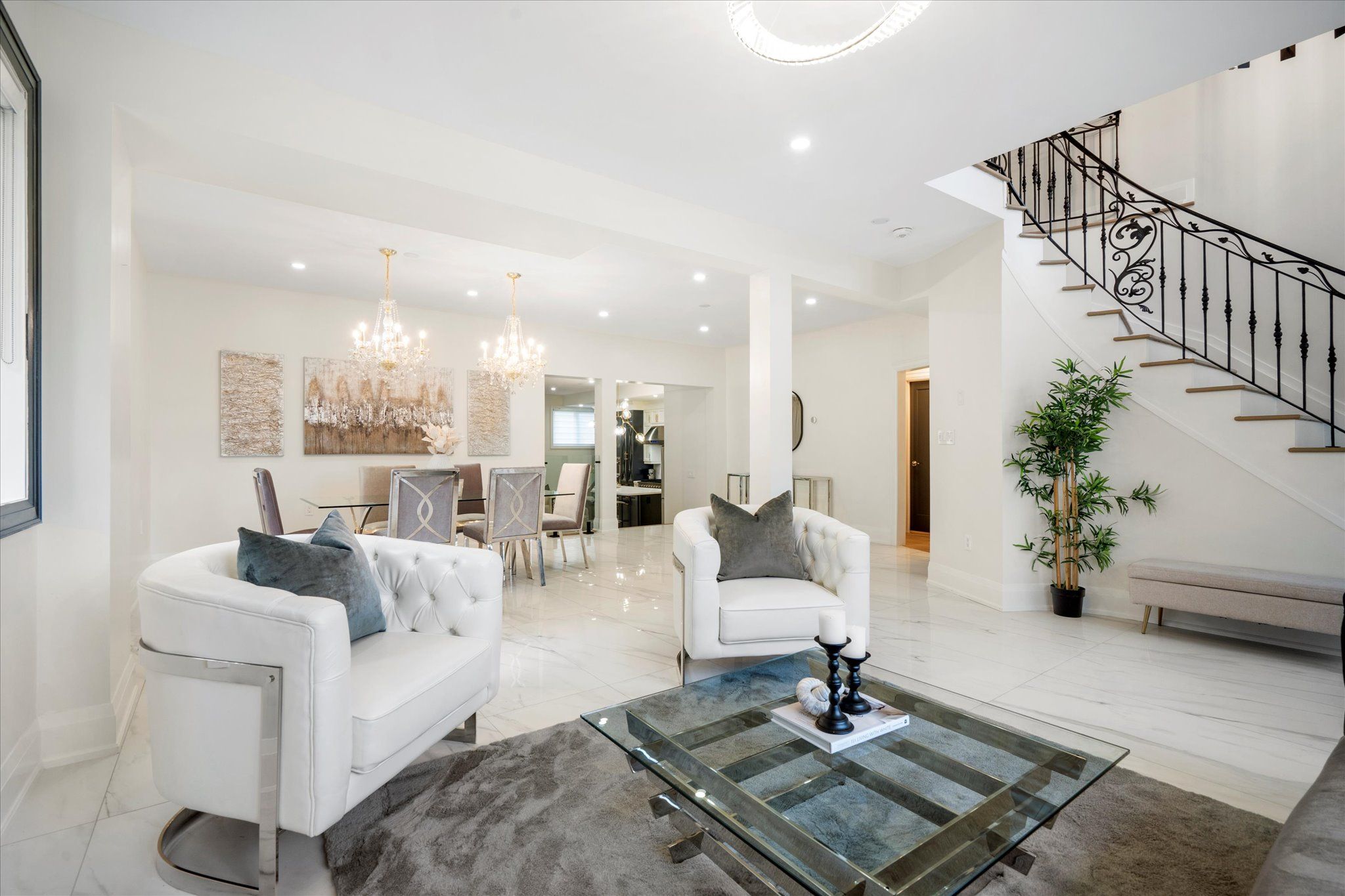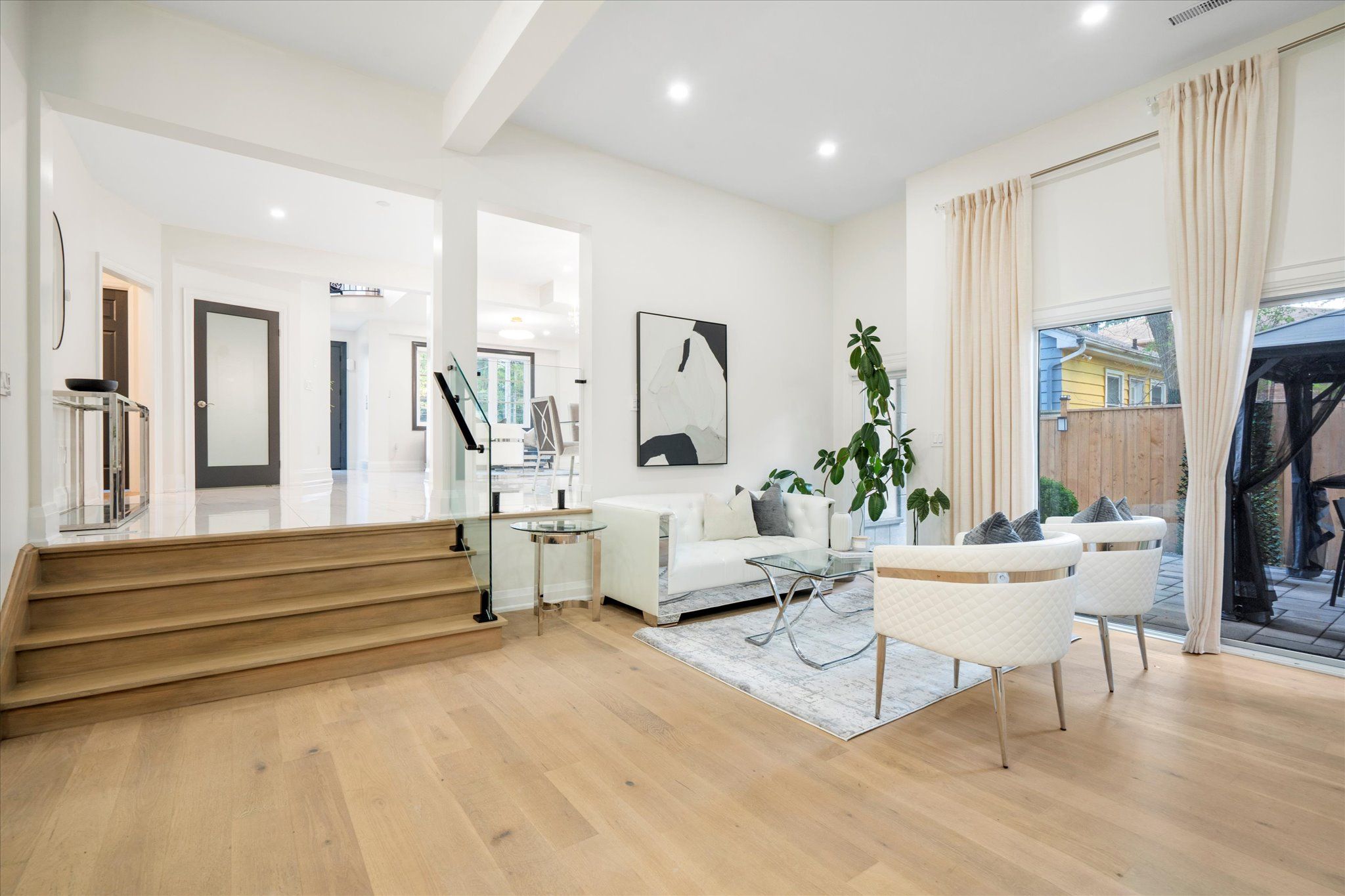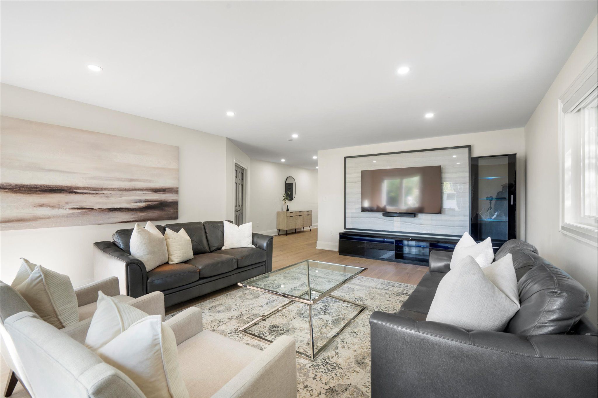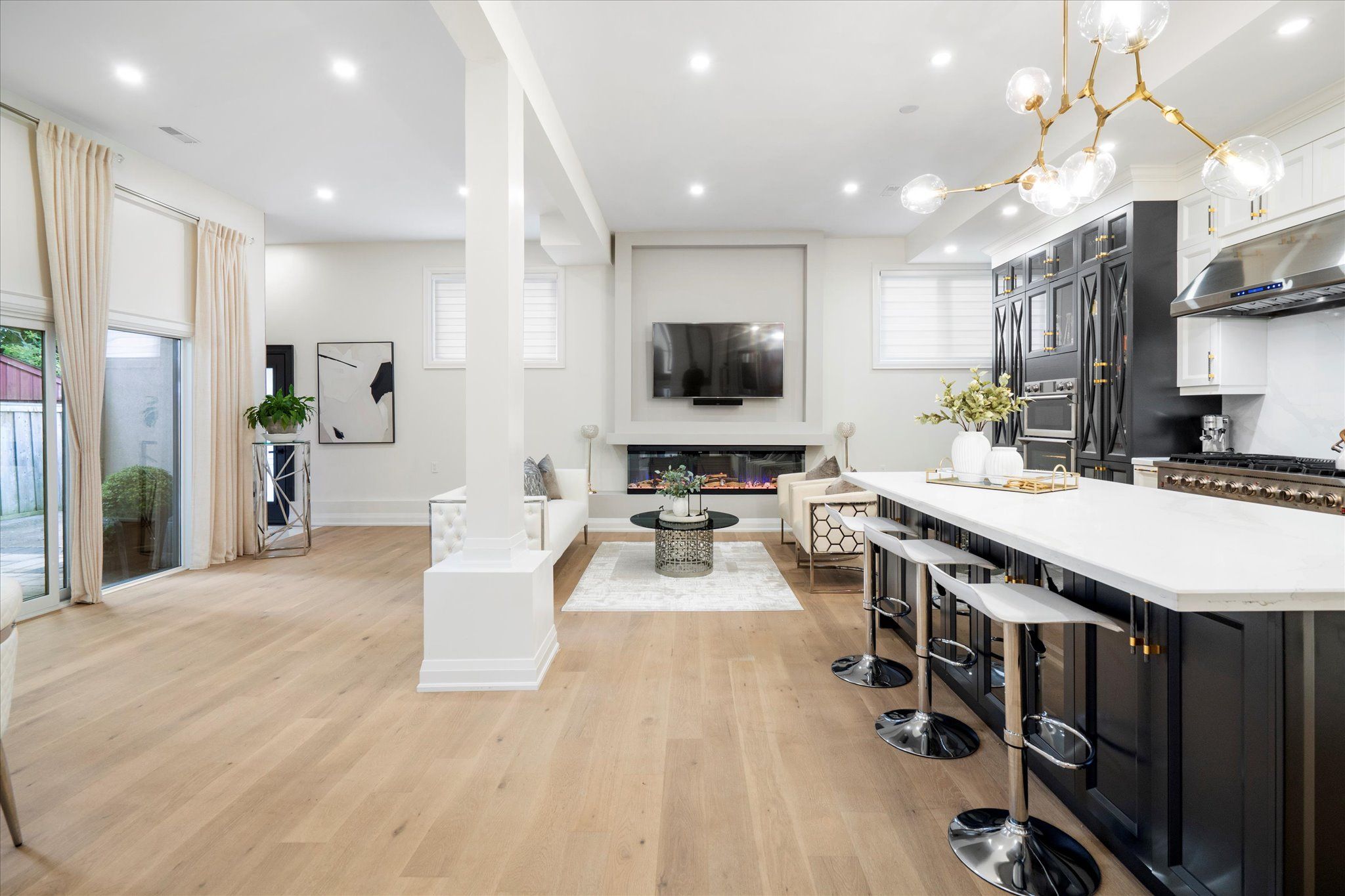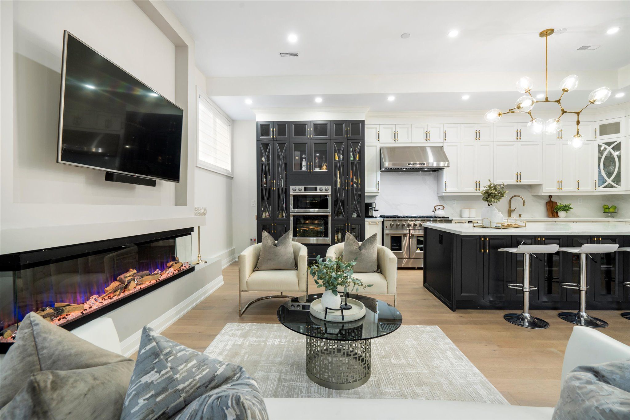 Welcome to 134 manse road, a stunning custom-built home redesigned from the ground up with exceptional craftsmanship, energy-efficient systems, and upscale finishes. Perfectly located near scenic waterfront trails, this property combines modern elegance with everyday convenience. Offering over 4,500 square feet, the home features six bedrooms and four full bathrooms in an open-concept layout ideal for both entertaining and family life. Soaring ceilings, premium lighting, engineered hardwood floors, and a striking cast-iron staircase set a sophisticated tone. A main-floor bedroom with a private ensuite and walk-in closet is perfect for guests or multi-generational living. The great room impresses with dramatic smooth ceiling heights, a sleek linear fireplace, and 14-foot sliding glass doors leading to a private patio. The chef's kitchen includes a massive centre island with additional storage, quartz counters and backsplash, a walk-in pantry, and premium built-in appliances, including a 48-inch gas range and wine cooler. Upstairs, the sunlit primary suite offers a walk-in closet and spa-like ensuite with a freestanding soaking tub, custom double vanity, and a glass-enclosed rain shower with body jets. Spacious second story family room retreat perfect for movie & game nights. The finished lower level adds versatility with above-grade windows, a full kitchen, large living area, and a bedroom with a four-piece ensuite ideal for extended family or guests. Professionally landscaped stonework enhances the nine-car driveway and backyard patio, ready for a pool, garden suite, or outdoor kitchen. Situated near port union and lawrence, commuting is effortless with quick access to the port union go station and highway 401. Parks, waterfront paths, shopping, and dining are all close at hand, making this a rare blend of luxury and convenience!