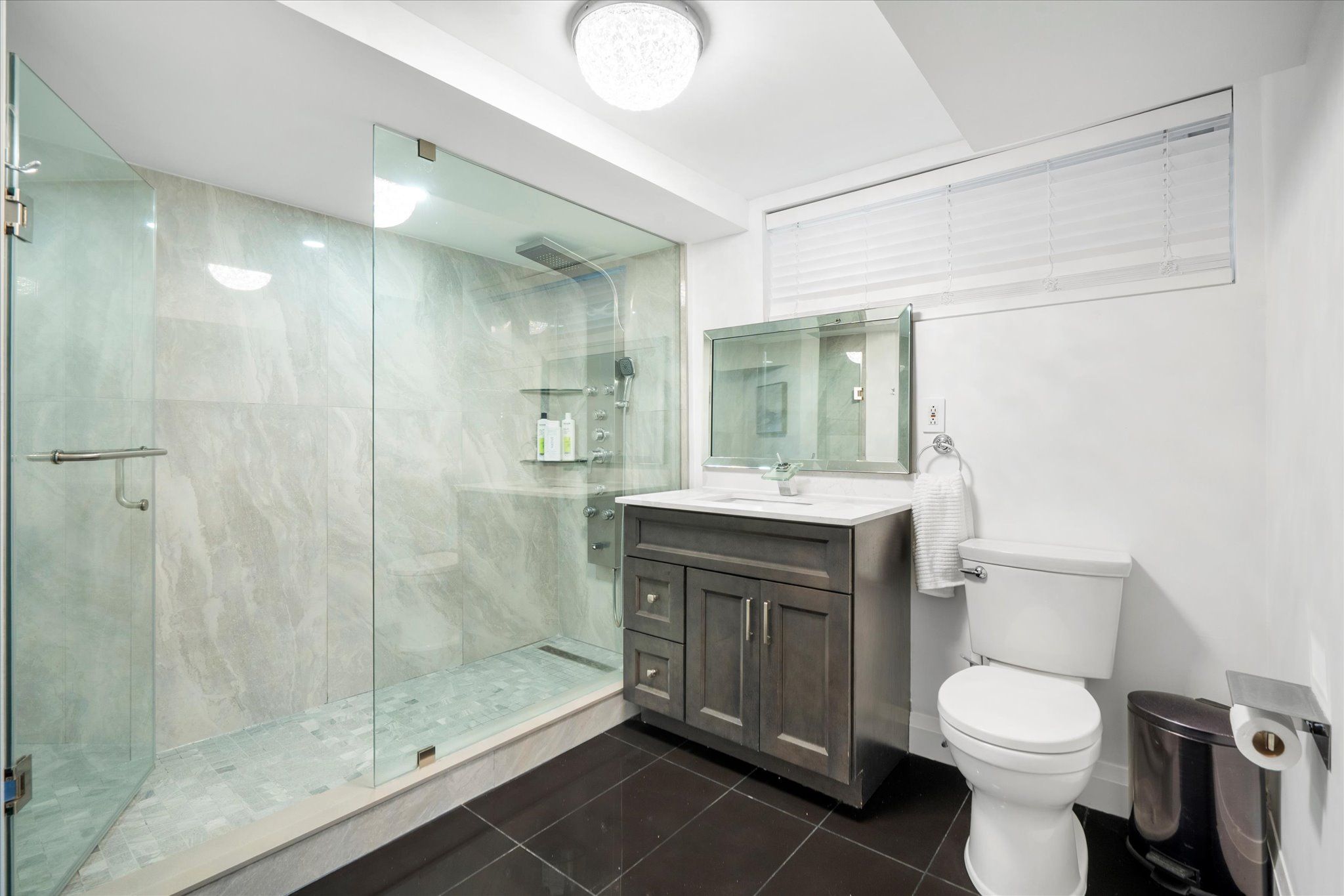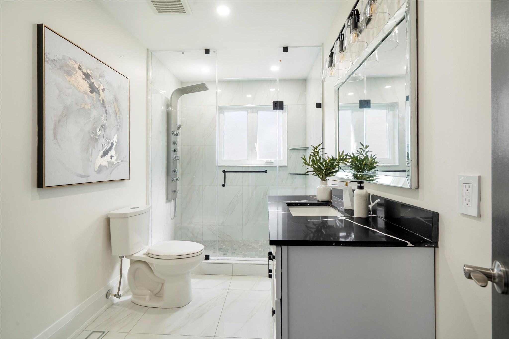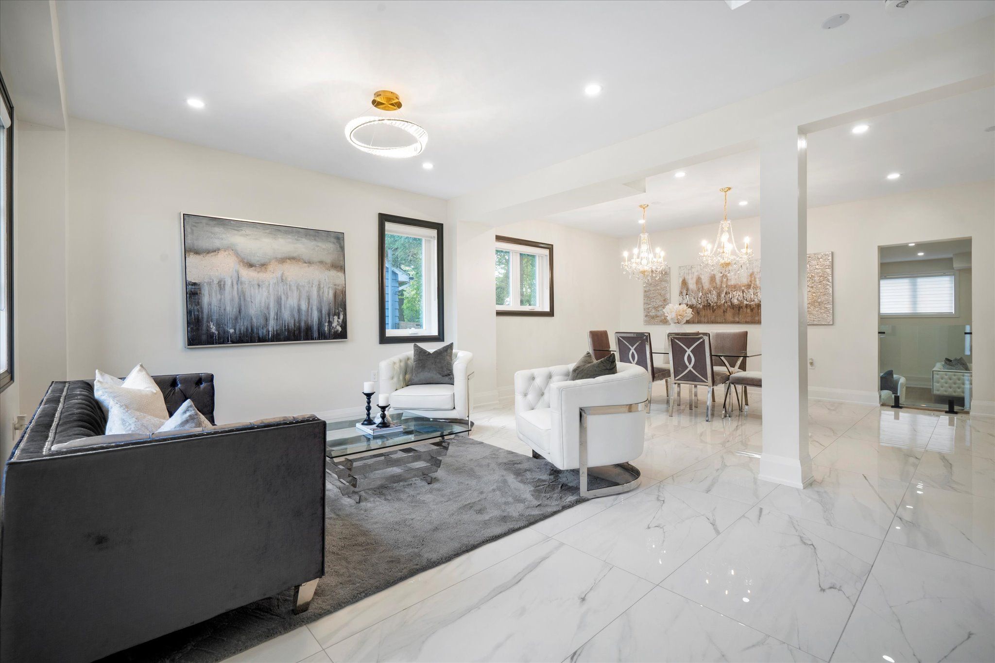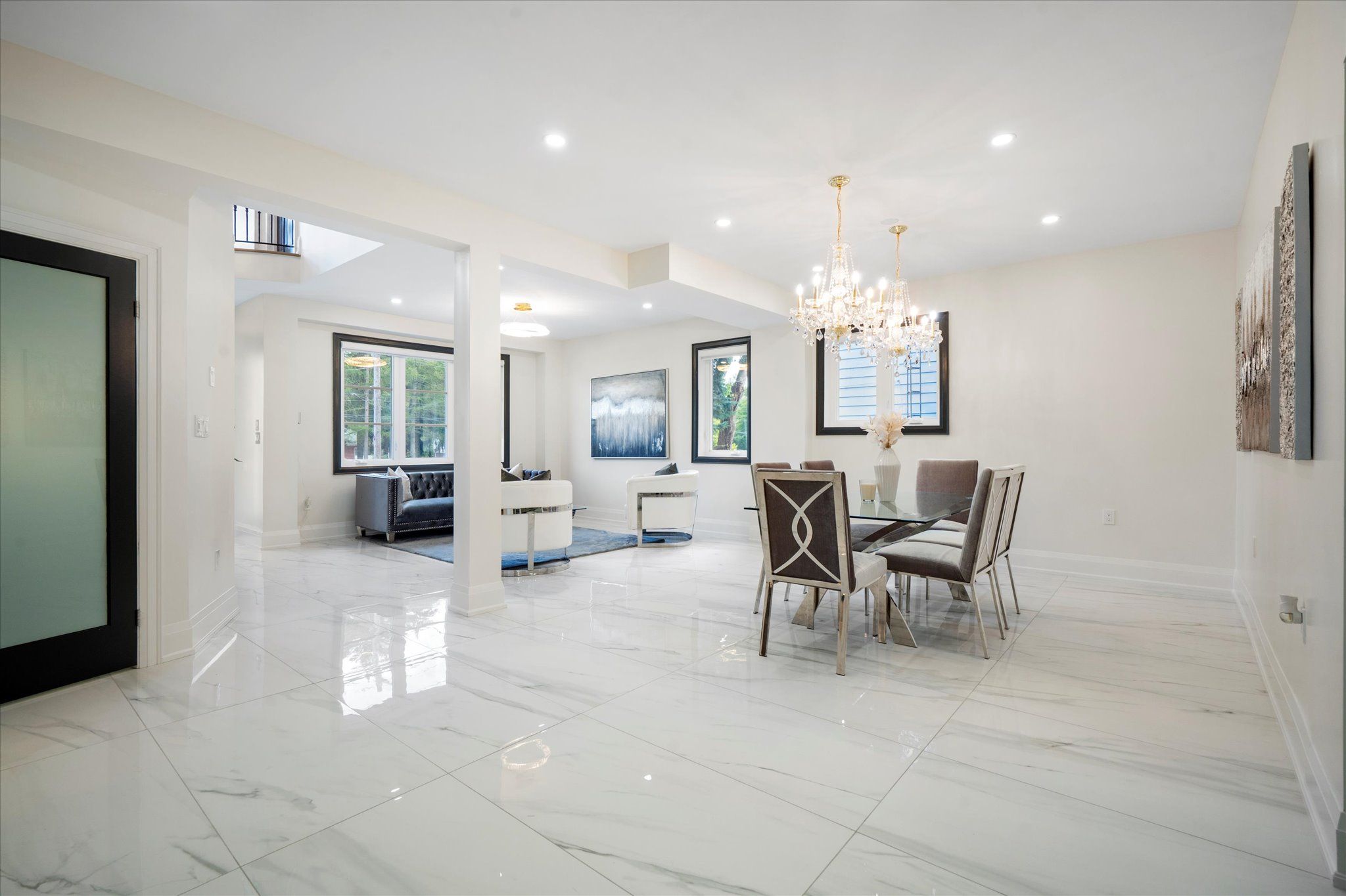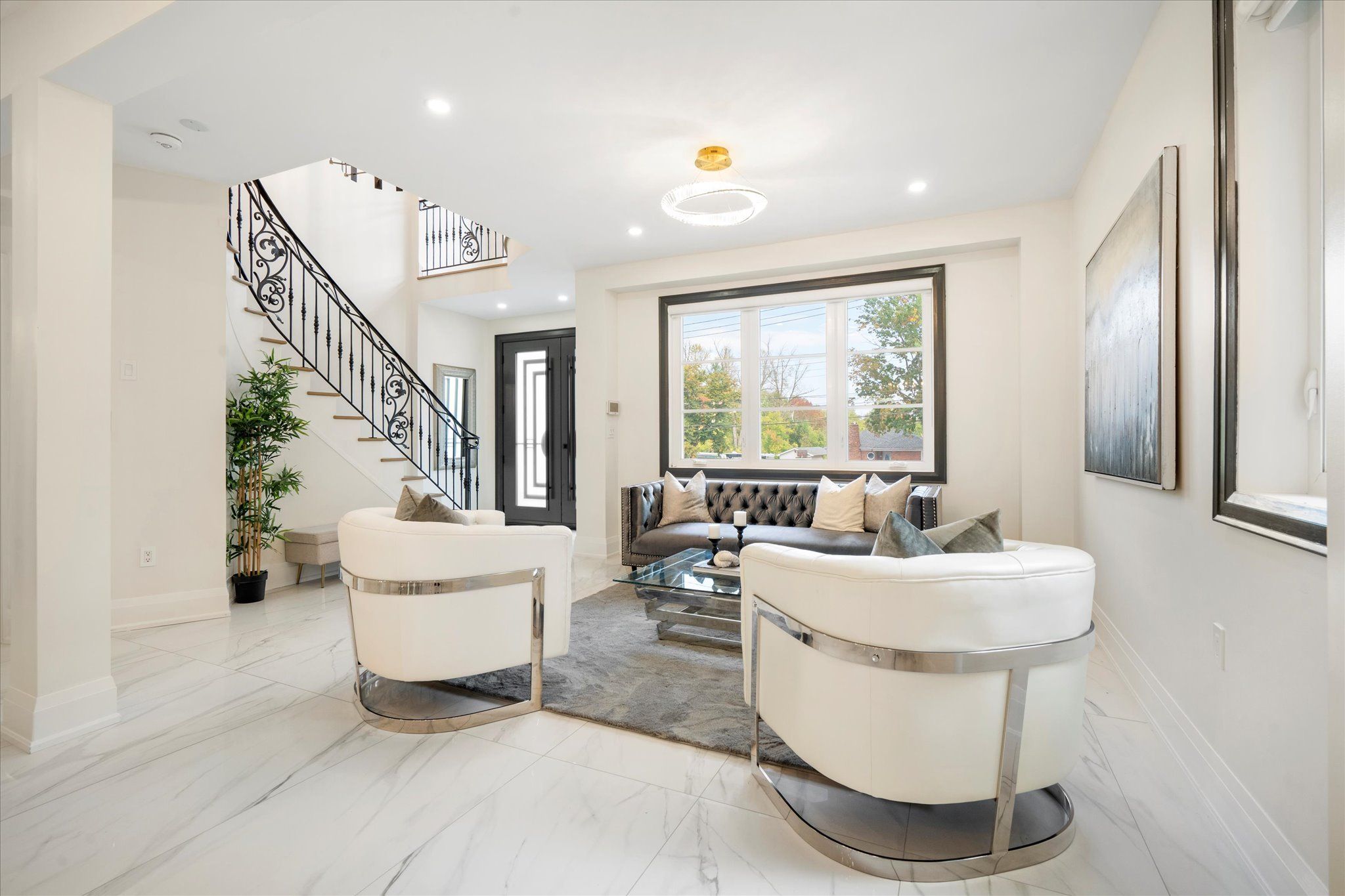 Welcome to 134 manse road, a stunning custom-built home redesigned from the ground up with exceptional craftsmanship, energy-efficient systems, and upscale finishes. Perfectly located near scenic waterfront trails, this property combines modern elegance with everyday convenience. Offering over 4,500 square feet, the home features six bedrooms and four full bathrooms in an open-concept layout ideal for both entertaining and family life. Soaring ceilings, premium lighting, engineered hardwood floors, and a striking cast-iron staircase set a sophisticated tone. A main-floor bedroom with a private ensuite and walk-in closet is perfect for guests or multi-generational living. The great room impresses with dramatic smooth ceiling heights, a sleek linear fireplace, and 14-foot sliding glass doors leading to a private patio. The chef's kitchen includes a massive centre island with additional storage, quartz counters and backsplash, a walk-in pantry, and premium built-in appliances, including a 48-inch gas range and wine cooler. Upstairs, the sunlit primary suite offers a walk-in closet and spa-like ensuite with a freestanding soaking tub, custom double vanity, and a glass-enclosed rain shower with body jets. Spacious second story family room retreat perfect for movie & game nights. The finished lower level adds versatility with above-grade windows, a full kitchen, large living area, and a bedroom with a four-piece ensuite ideal for extended family or guests. Professionally landscaped stonework enhances the nine-car driveway and backyard patio, ready for a pool, garden suite, or outdoor kitchen. Situated near port union and lawrence, commuting is effortless with quick access to the port union go station and highway 401. Parks, waterfront paths, shopping, and dining are all close at hand, making this a rare blend of luxury and convenience!