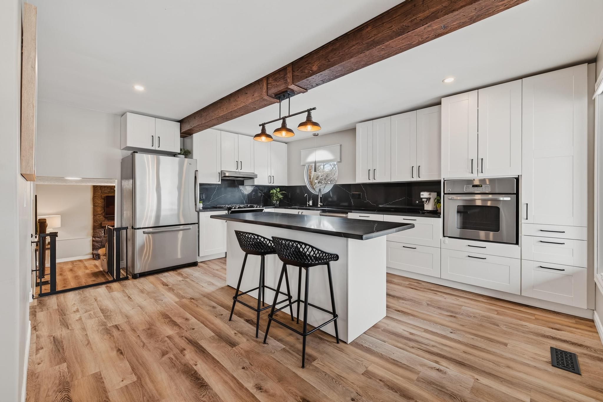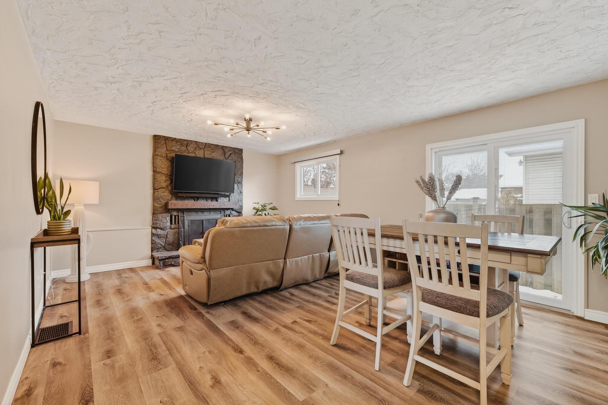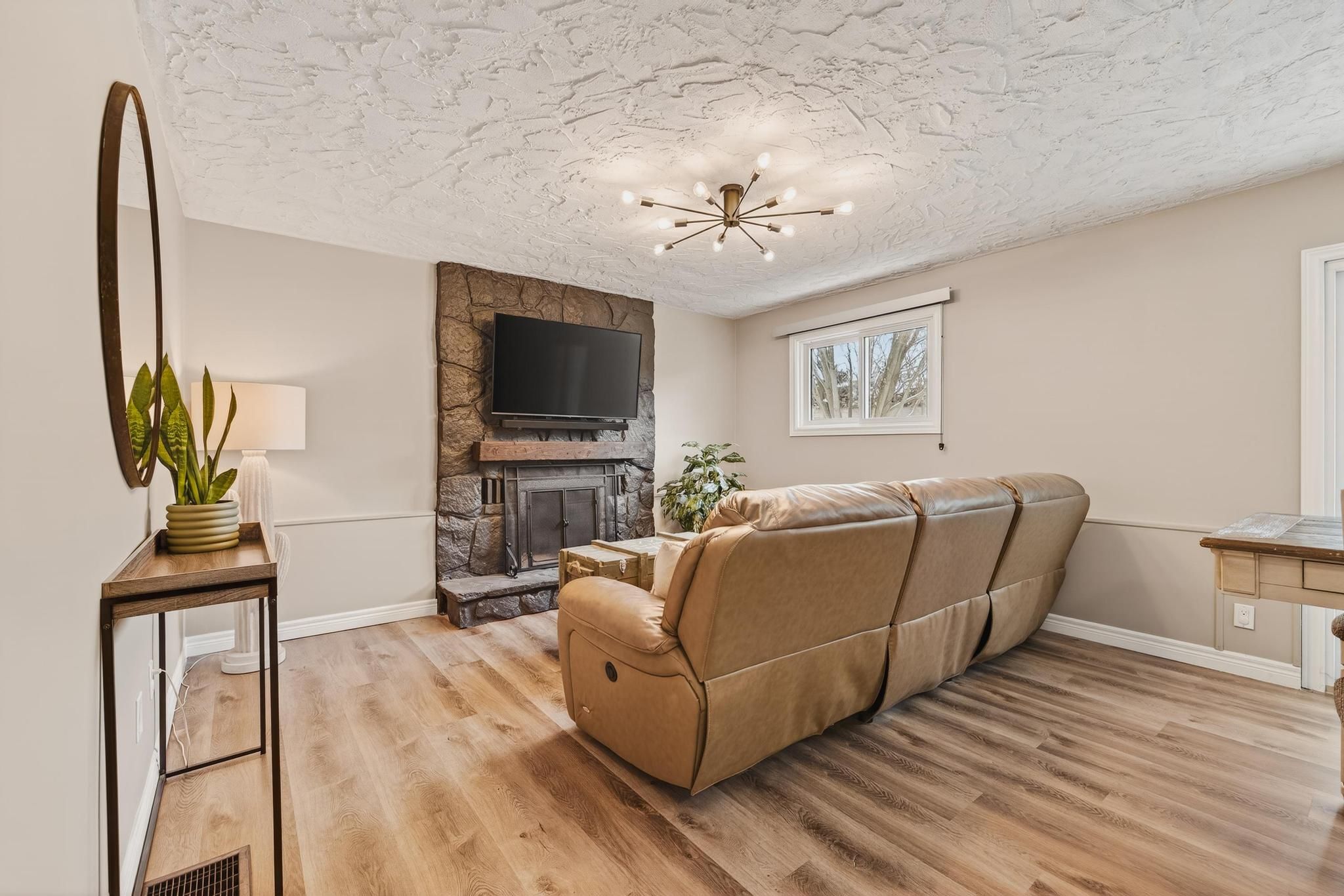 A beautifully updated backsplit in a mature brantford neighbourhood, offering bright spaces and a layout that truly works. The main level features an upgraded kitchen with a gas stove top, wall oven, and direct flow into the dining room. Upstairs, you'll find three comfortable bedrooms and a full bath. The lower level adds two distinct living areas, including a cozy family room with a wood-burning fireplace and a large sunroom-style space with a gas fireplace and walkout to the yard, plus a fully updated bathroom with heated floors. The basement provides even more flexibility with an additional bedroom ideal for guests, hobbies, or a private workspace. Set on a 0. 35 acre lot, the backyard is a highlight with mature trees, plenty of room to enjoy, and a hot tub ready for year-round use. A concrete triple-wide driveway accommodates up to six vehicles along with a 1. 5 car garage. Close to parks, major shopping, the gretzky centre, and highway 403, this home delivers comfort, convenience, and the space families are looking for.