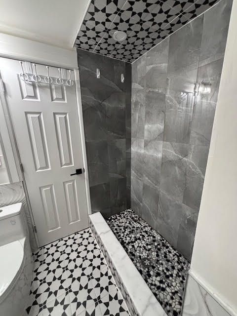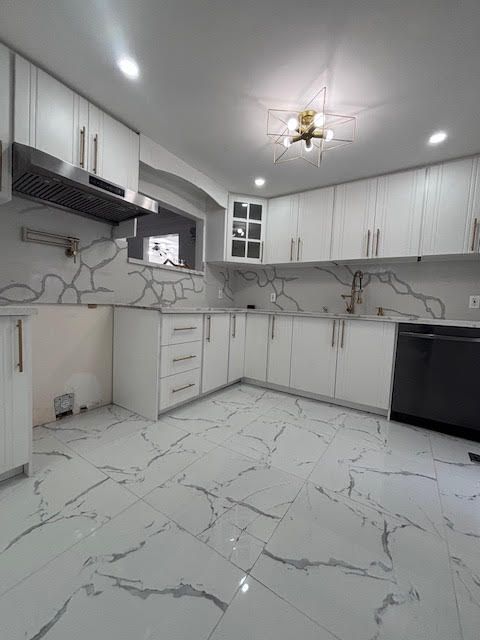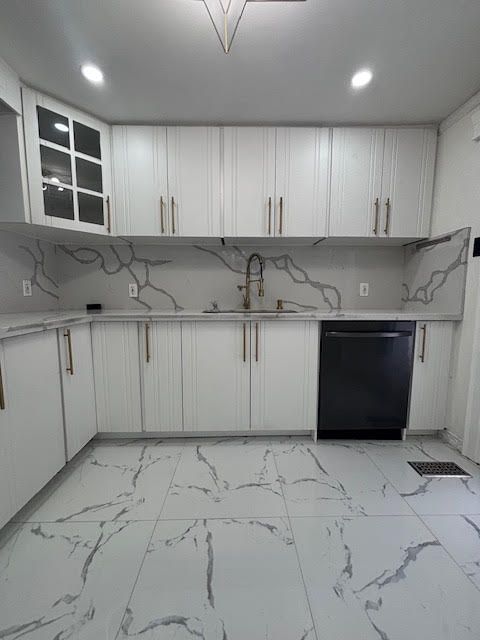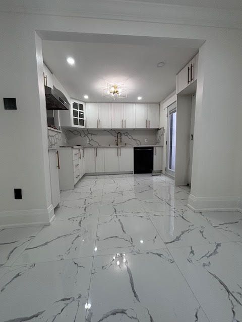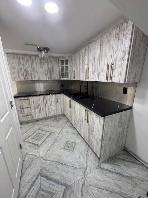 • Modern kitchen featuring quartz countertops and ample cabinetry.