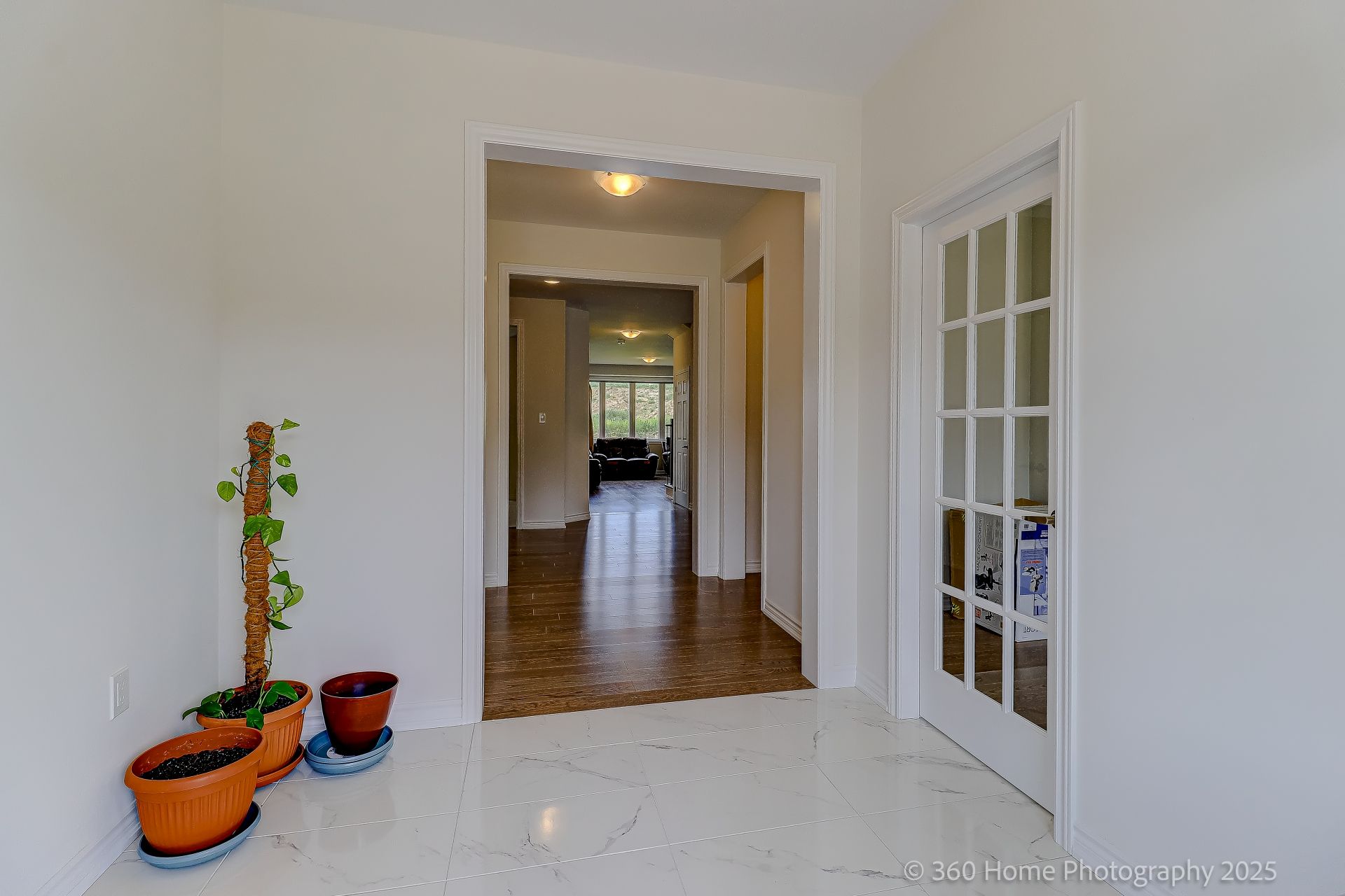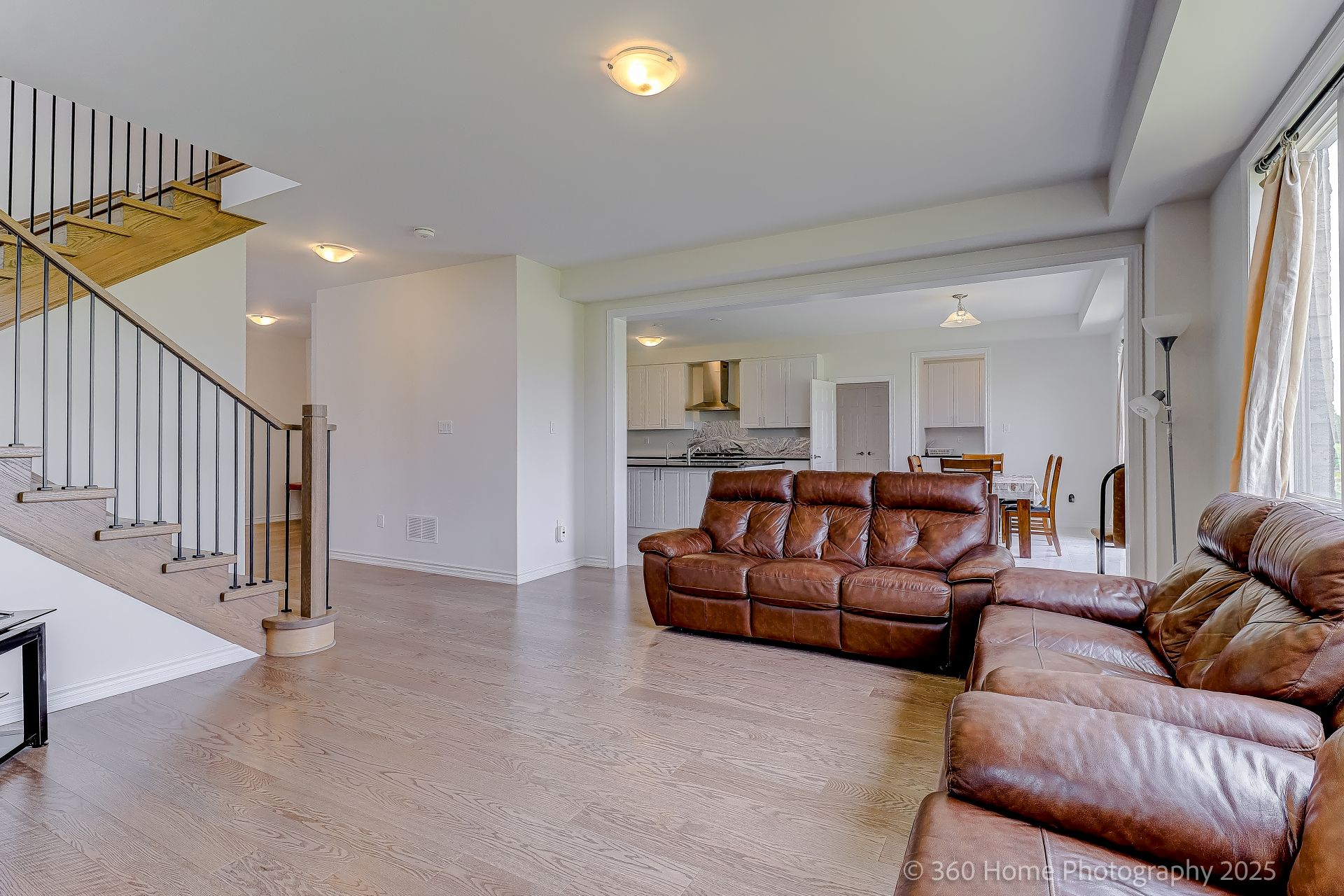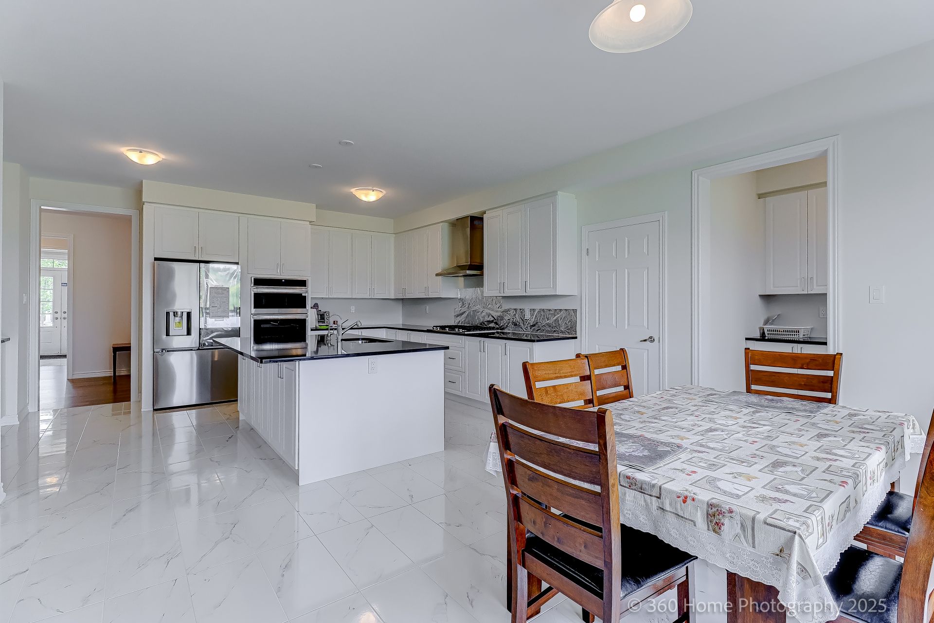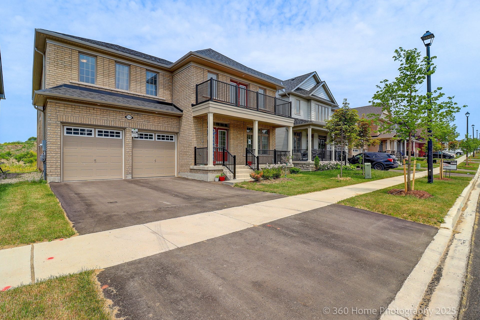 Presenting a captivating 2-storey, never lived in dechated home in the highly sought-after fergus neighborhood, renowned for its appeal to families. Within walking distance to parks, the scenic cataract trail, the majestic grand river & the vibrant historic downtown, this residence offers over 3700 square feet of luxurious living space. Crafted by award-winning builder every detail exudes quality and elegance. Step inside to discover towering 9' ceilings, pristine kitchen counter top, high end light fixtures throughout & an open-concept layout suffused with natural light. The gourmet kitchen is a chef's delight, private office along with a convenient laundry on the main floor, top-of-the-line built-in stainless-steel appliances. The adjacent dining area seamlessly flows into the inviting living room, enhanced by an elegant fireplace. Carpet free hardwood floor covers stairs and hallway. Conveniently, a walkout porch and balcony offering an ideal retreat and back yard lots of space for outdoor gatherings. Ascending to the upper level, five spacious bedrooms await a catering to the needs of modern families. The primary suite stands out with its generous closet space & lavish ensuite bath, featuring a double vanity with a makeup area, quartz countertops & luxurious, oversized glass shower. No detail has been overlooked in this exquisite home. Experience the epitome of luxury living in fergus schedule your private viewing today & make this dream home yours. Ev charger installed. Enercare smart home monitoring system with doorbell camera free for 3 years. 200 amp electrical panel. 9" smooth ceiling on main floor.