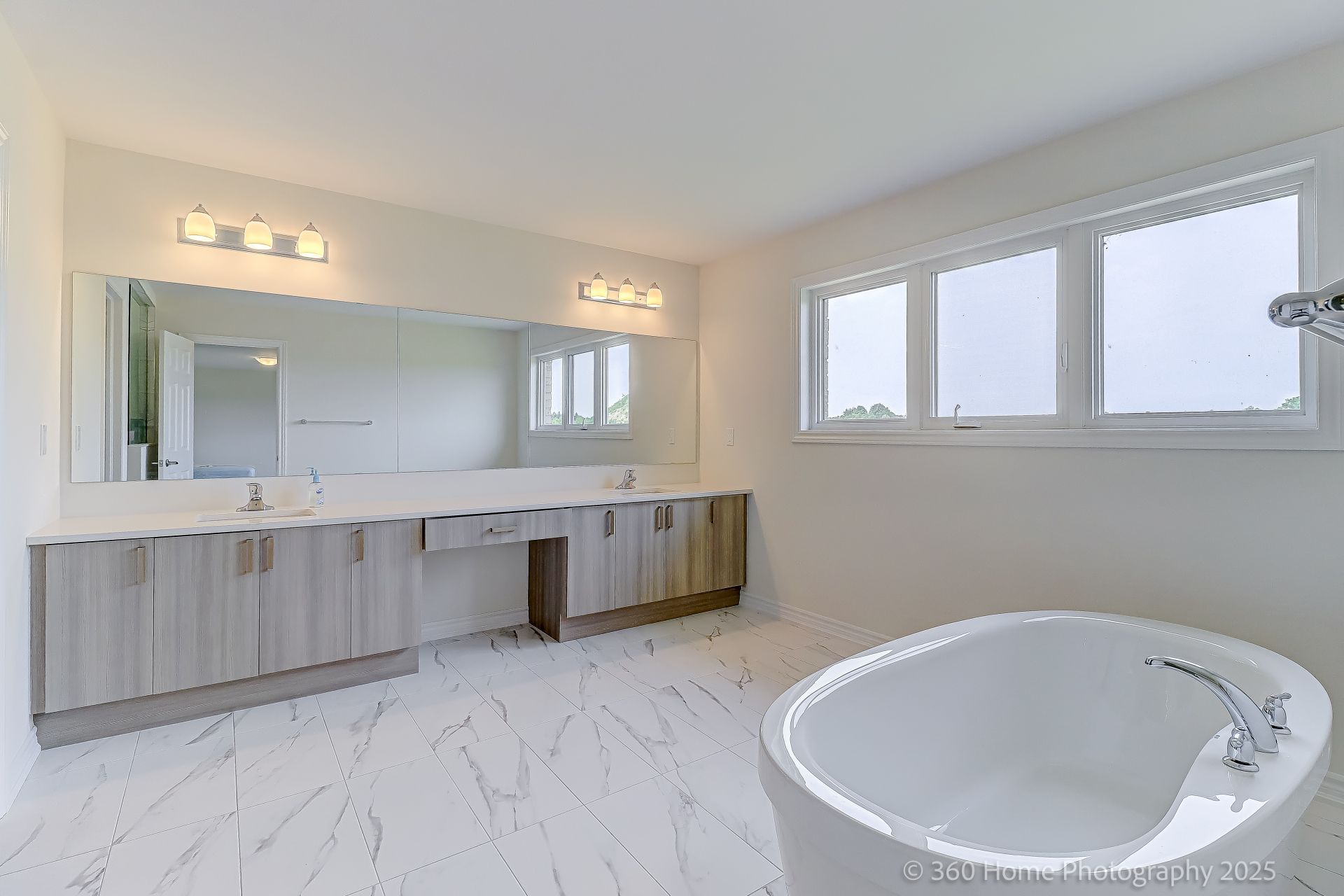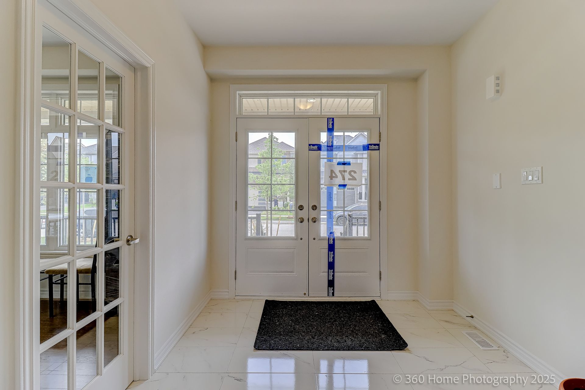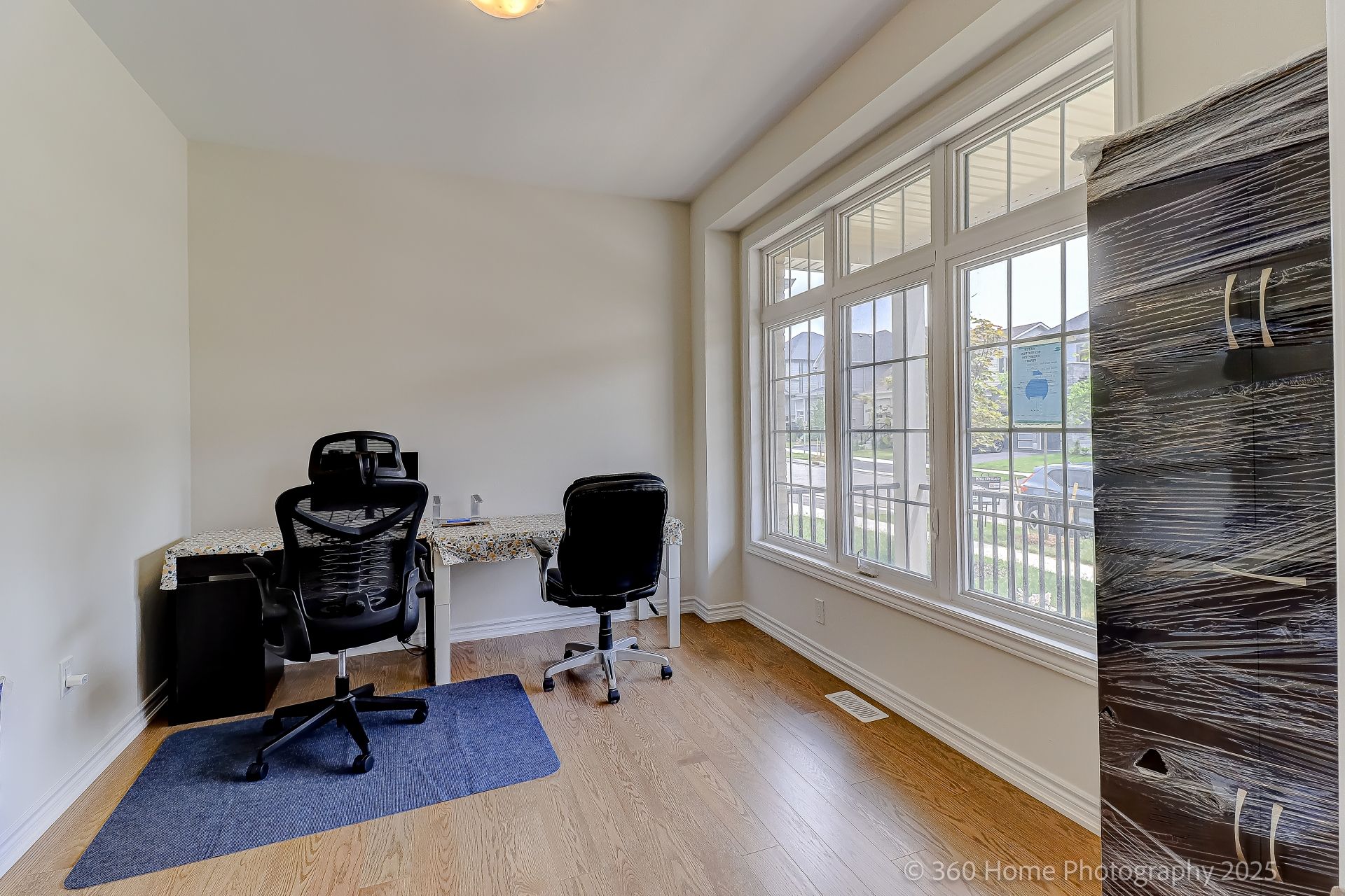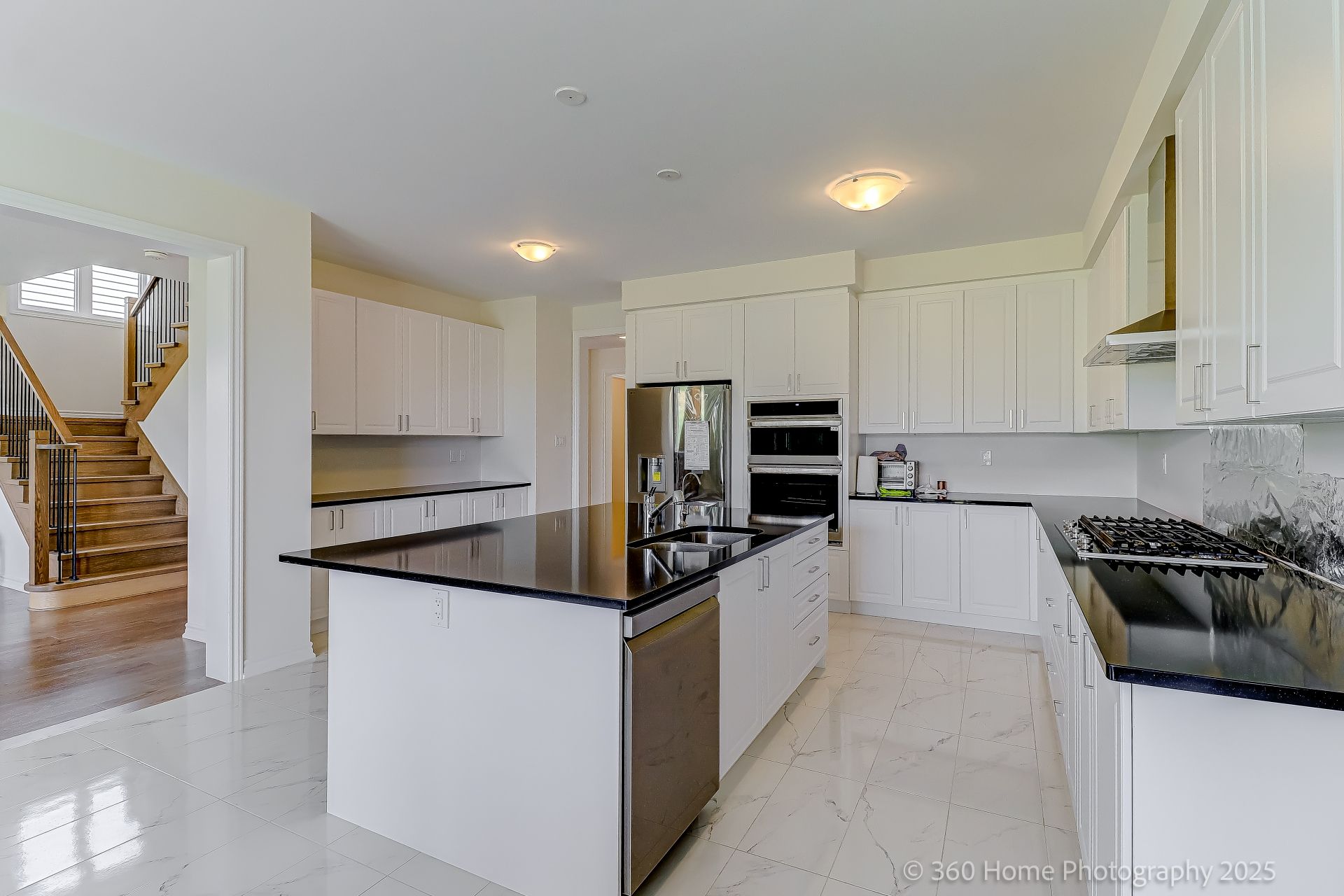 Presenting a captivating 2-storey, never lived in dechated home in the highly sought-after fergus neighborhood, renowned for its appeal to families. Within walking distance to parks, the scenic cataract trail, the majestic grand river & the vibrant historic downtown, this residence offers over 3700 square feet of luxurious living space. Crafted by award-winning builder every detail exudes quality and elegance. Step inside to discover towering 9' ceilings, pristine kitchen counter top, high end light fixtures throughout & an open-concept layout suffused with natural light. The gourmet kitchen is a chef's delight, private office along with a convenient laundry on the main floor, top-of-the-line built-in stainless-steel appliances. The adjacent dining area seamlessly flows into the inviting living room, enhanced by an elegant fireplace. Carpet free hardwood floor covers stairs and hallway. Conveniently, a walkout porch and balcony offering an ideal retreat and back yard lots of space for outdoor gatherings. Ascending to the upper level, five spacious bedrooms await a catering to the needs of modern families. The primary suite stands out with its generous closet space & lavish ensuite bath, featuring a double vanity with a makeup area, quartz countertops & luxurious, oversized glass shower. No detail has been overlooked in this exquisite home. Experience the epitome of luxury living in fergus schedule your private viewing today & make this dream home yours. Ev charger installed. Enercare smart home monitoring system with doorbell camera free for 3 years. 200 amp electrical panel. 9" smooth ceiling on main floor.