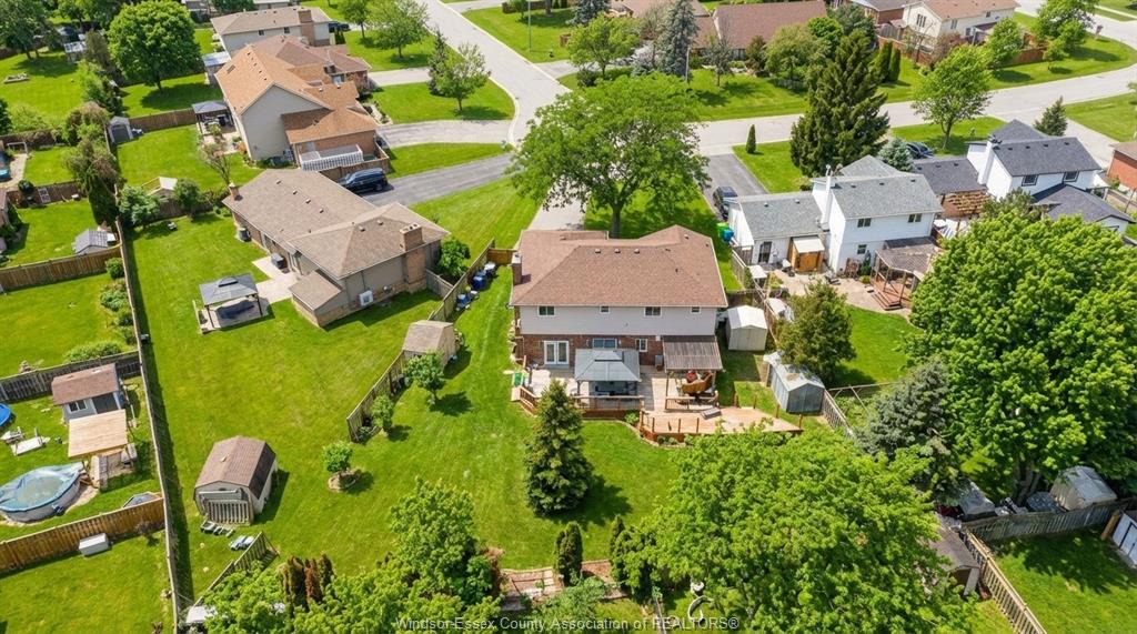 Welcome to this well-located family home on an oversized pie-shaped lot in one of belle river’s quiet, tree-lined crescents. One of the larger lots on the street, offering added space and privacy. This 4+1 bedroom home features a spacious primary bedroom with ensuite and bright living areas enhanced by skylights and natural light. The kitchen and dining area were remodeled in 2019 and showcase an oversized granite island with seating for six, granite countertops, and porcelain flooring throughout the main floor. The sunken family room is open to the kitchen and provides two patio walk-outs, creating a functional layout for everyday living and entertaining. The second-floor bathroom has been recently renovated and includes convenient laundry. A generous backyard provides ample space for outdoor living and entertaining, complemented by a front yard sprinkler system for easy maintenance. Located in a family-friendly neighbourhood close to schools, restaurants, parks, and the marina — a solid opportunity in a desirable belle river location.