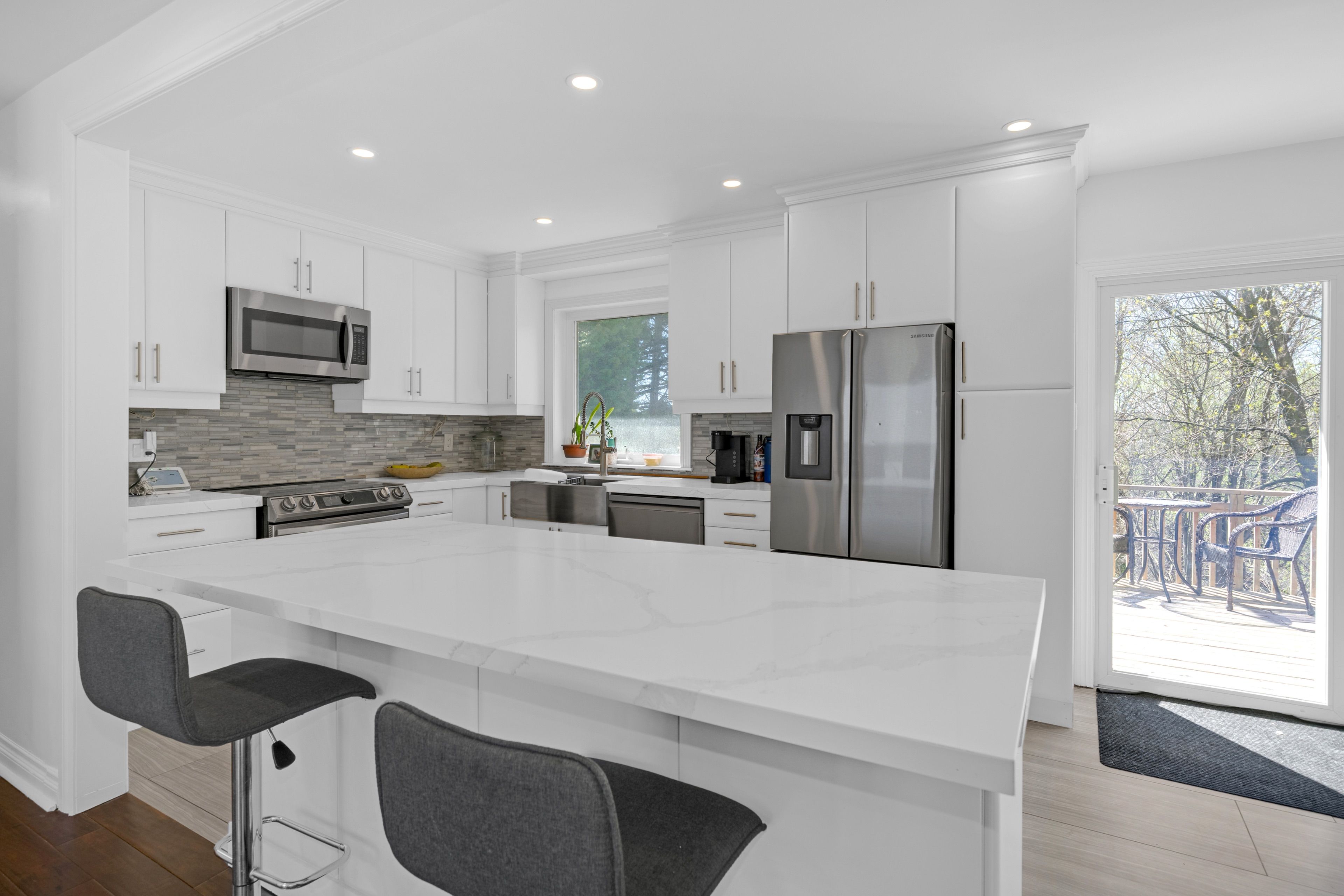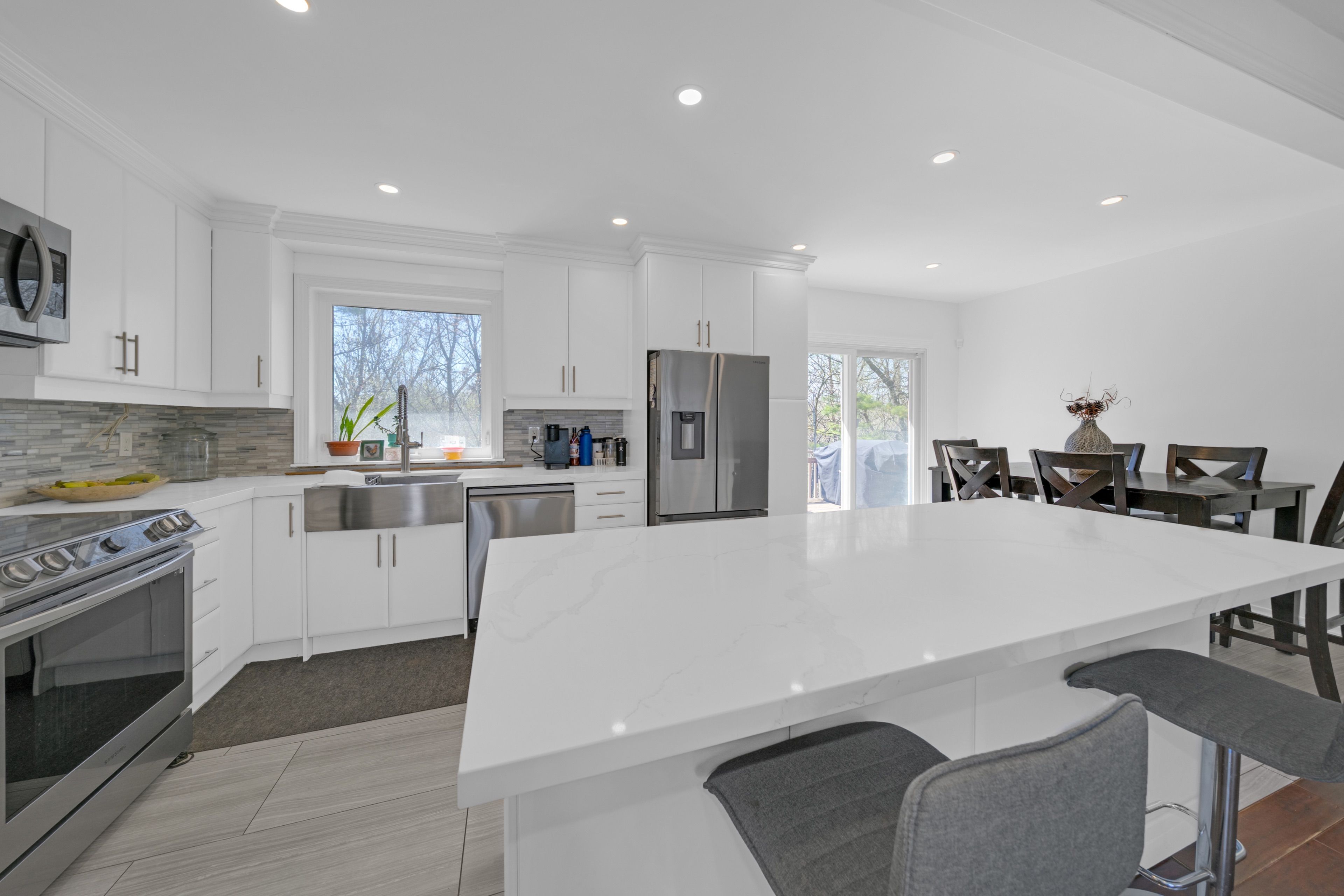 • Open concept kitchen and living space with large island for gatherings.