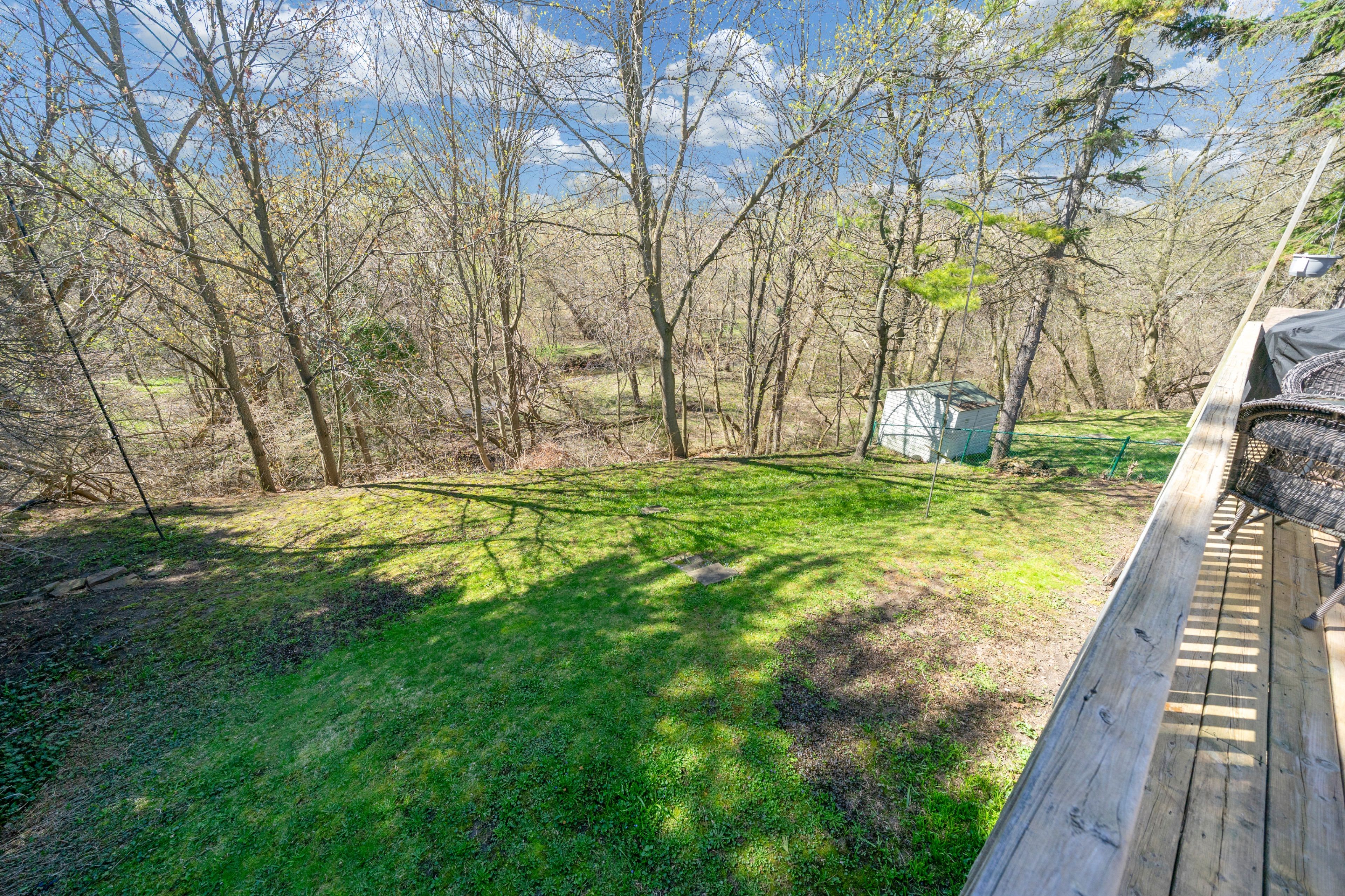 • Private wooded backyard with direct access to Harmony Creek.