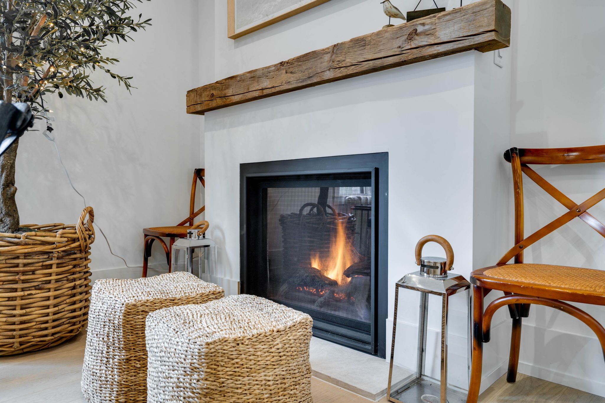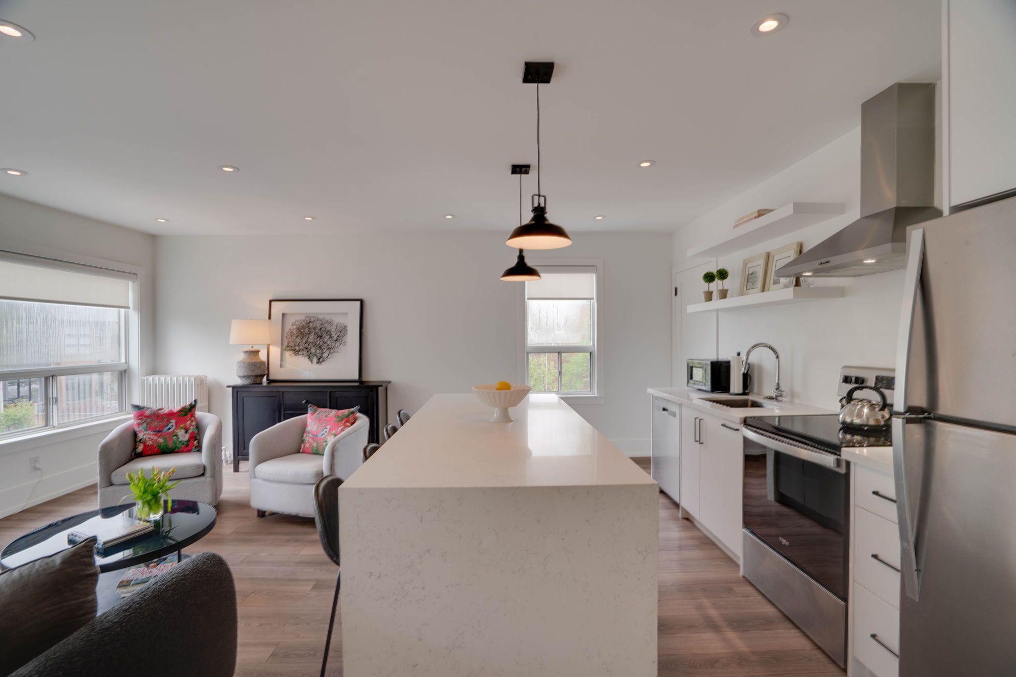• Sophisticated two-bedroom apartment upstairs offers a serene living space.