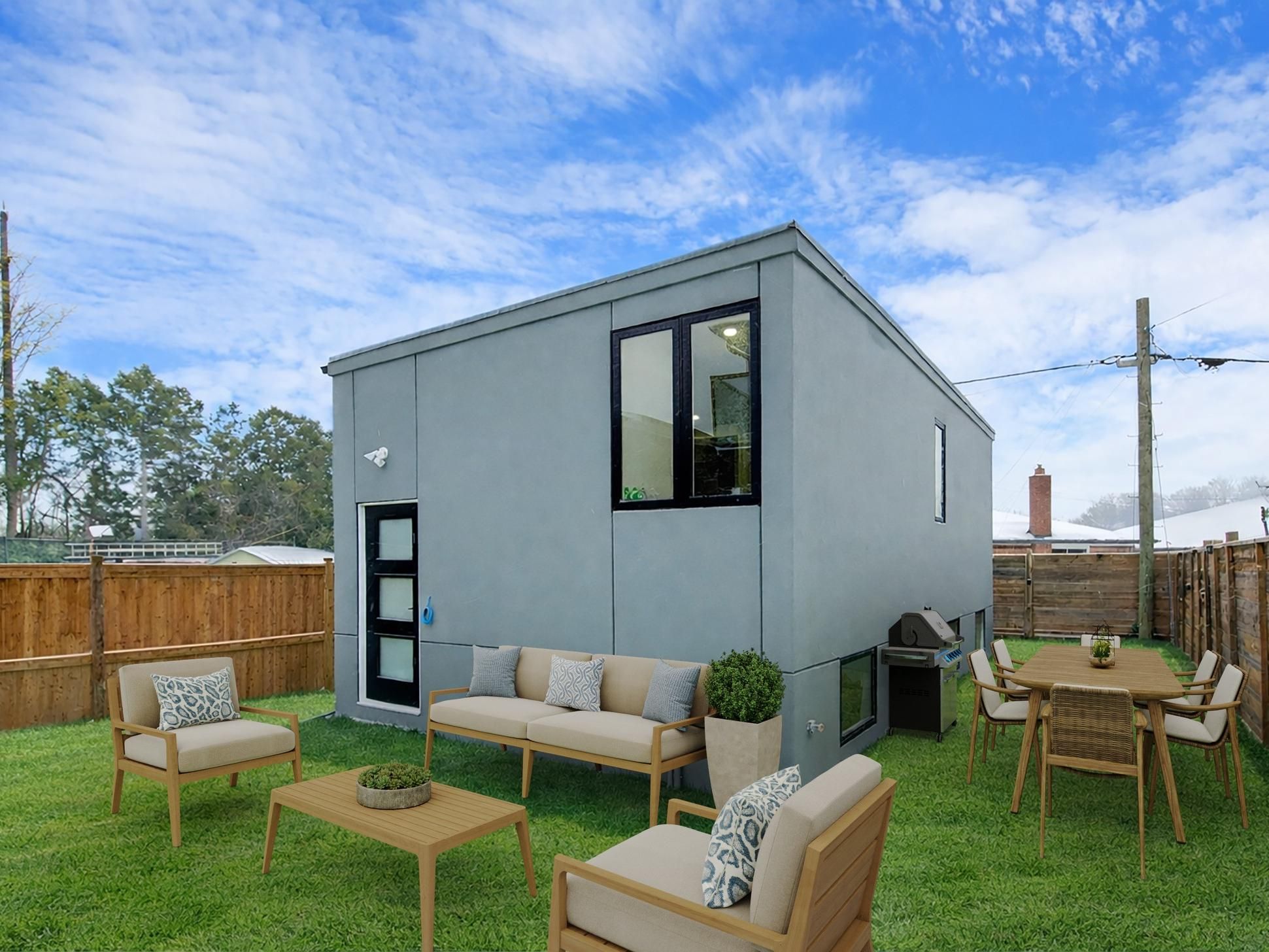 • Quiet backyard shared with residents, perfect for relaxation and BBQs.