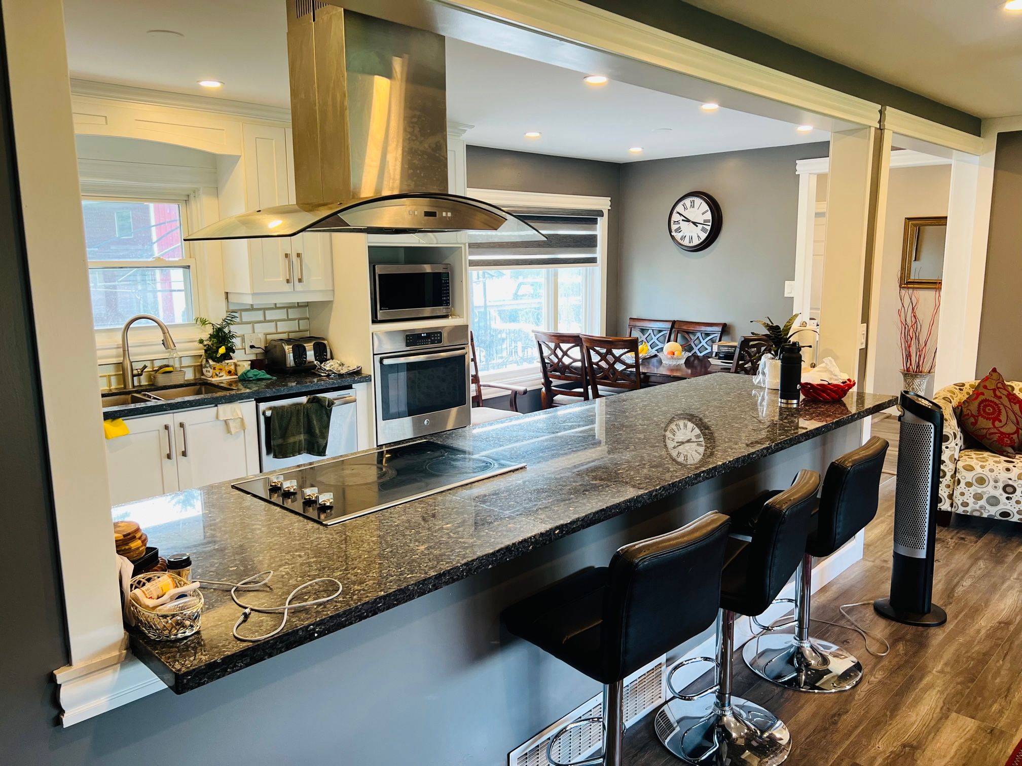 • Updated kitchen featuring stainless steel appliances and quartz countertops.