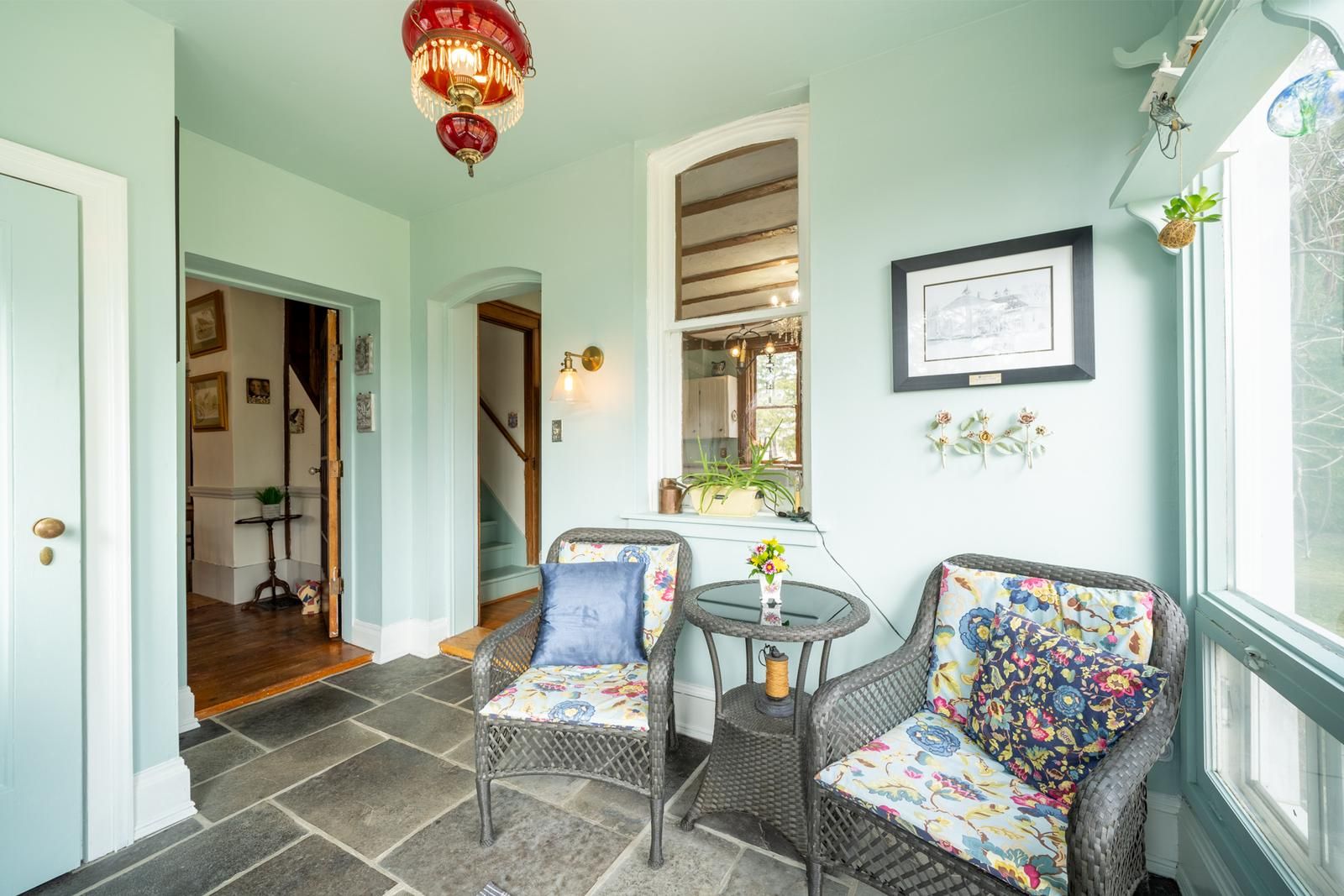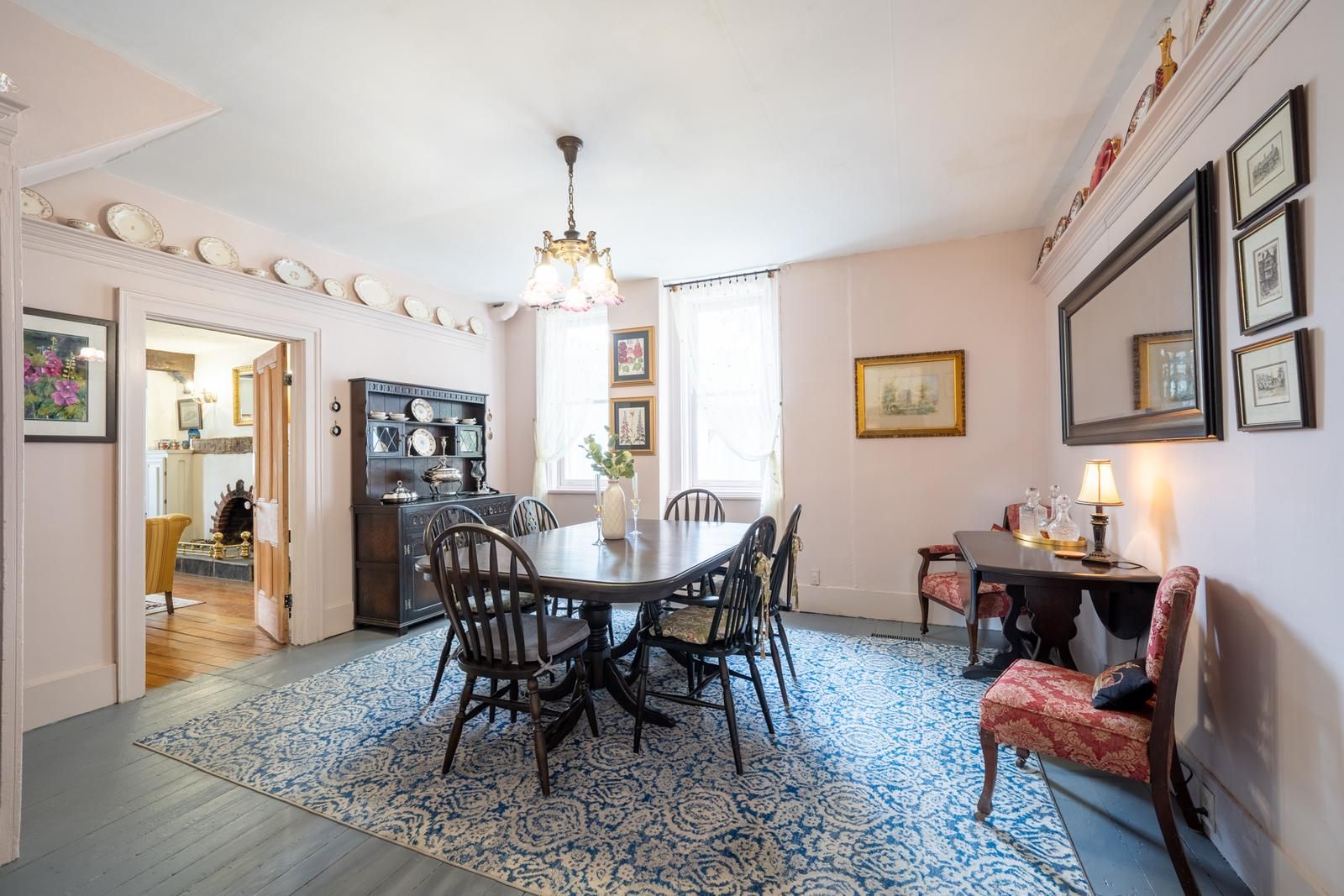Nestled on 1. 06acres this stunning 160 year-old storybook home offers over 3000 square feet of timeless charm. With its grand living room, cozy family room, formal dining room and enclosed front porches, this home offers a blend of classic elegance with modern comforts. Featuring 6 spacious bedrooms and 3 bathrooms, there is ample space for any size family to thrive and grow. Originally built in 1865 this home once served as a local general store in years gone past; ensuring this property is brimming with historical character. Enjoy peaceful views of a serene pond across the road while relaxing in the fully screened in front porch. Or try your hand at growing your own flowers or vegetables in the spacious backyard of this amazing home. This home is a beautifully preserved piece of the past, ready to become the backdrop for your next chapter.
