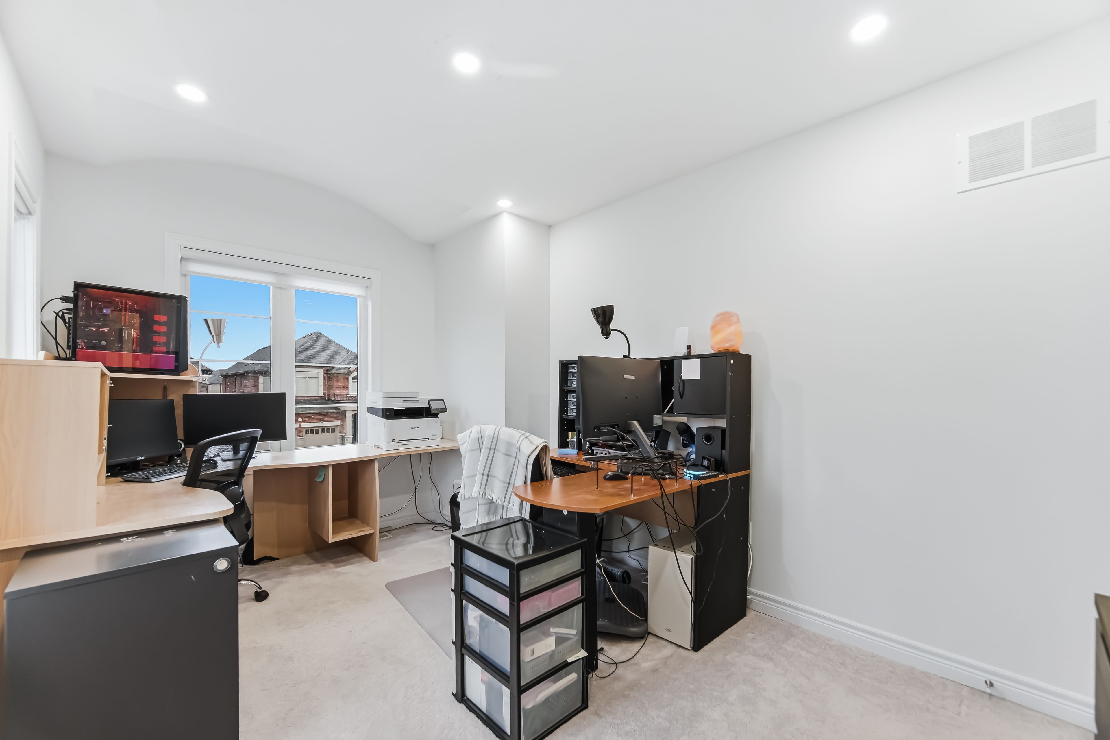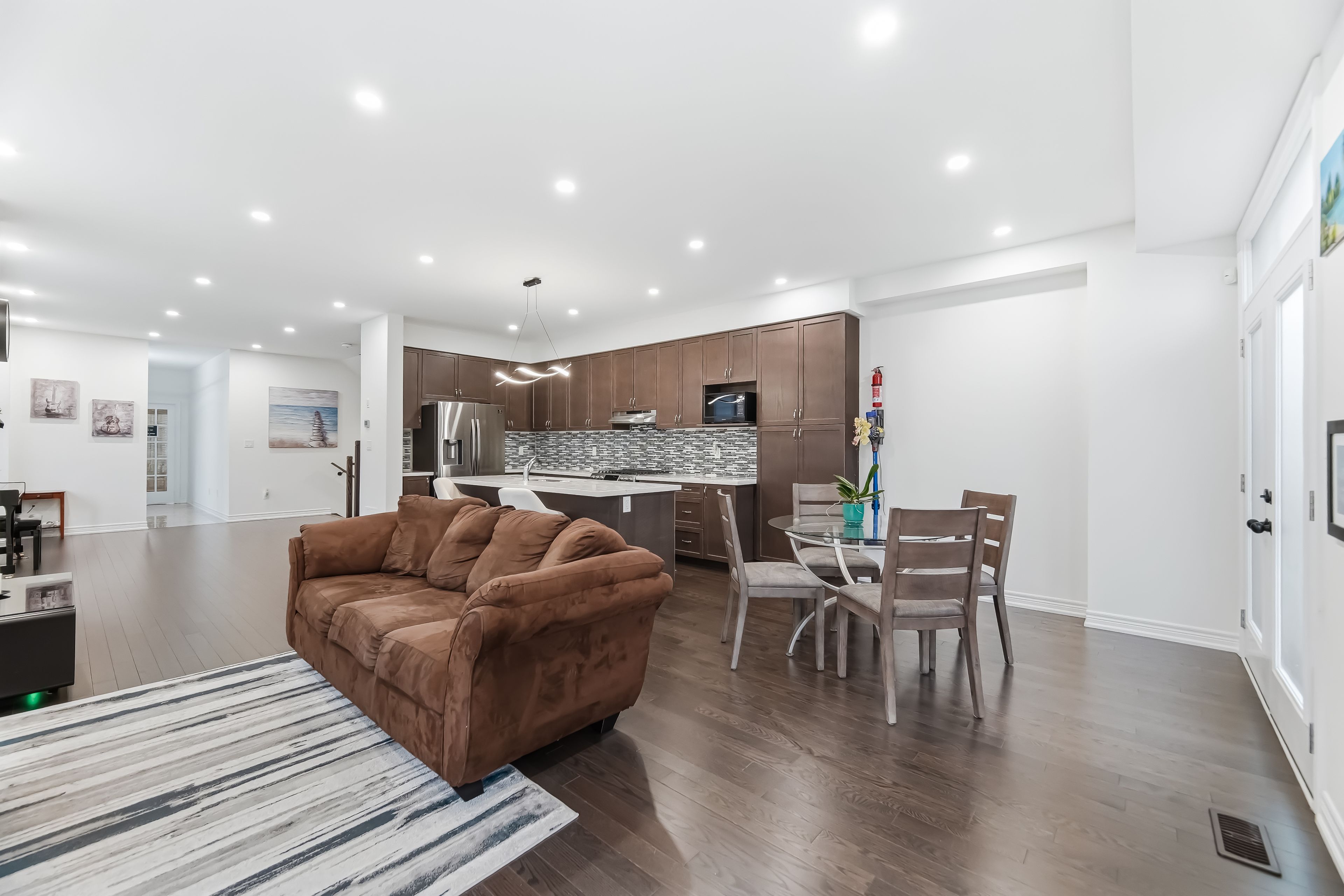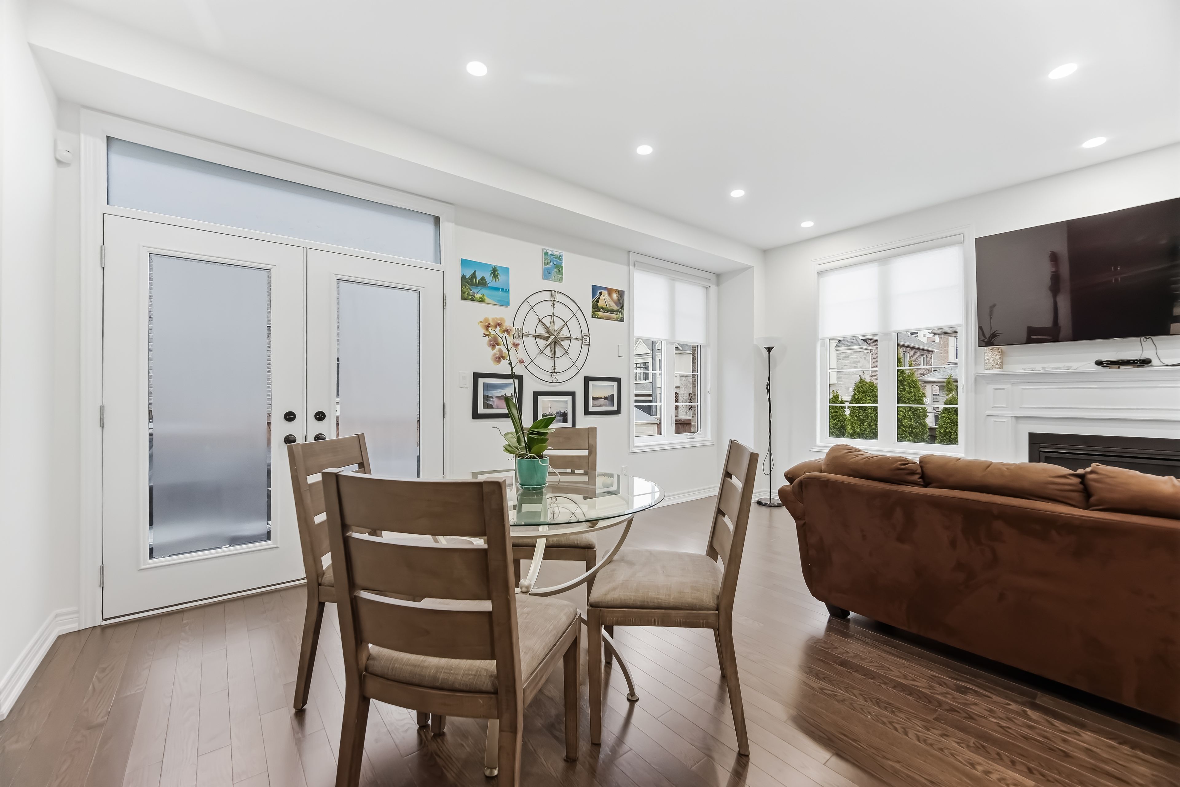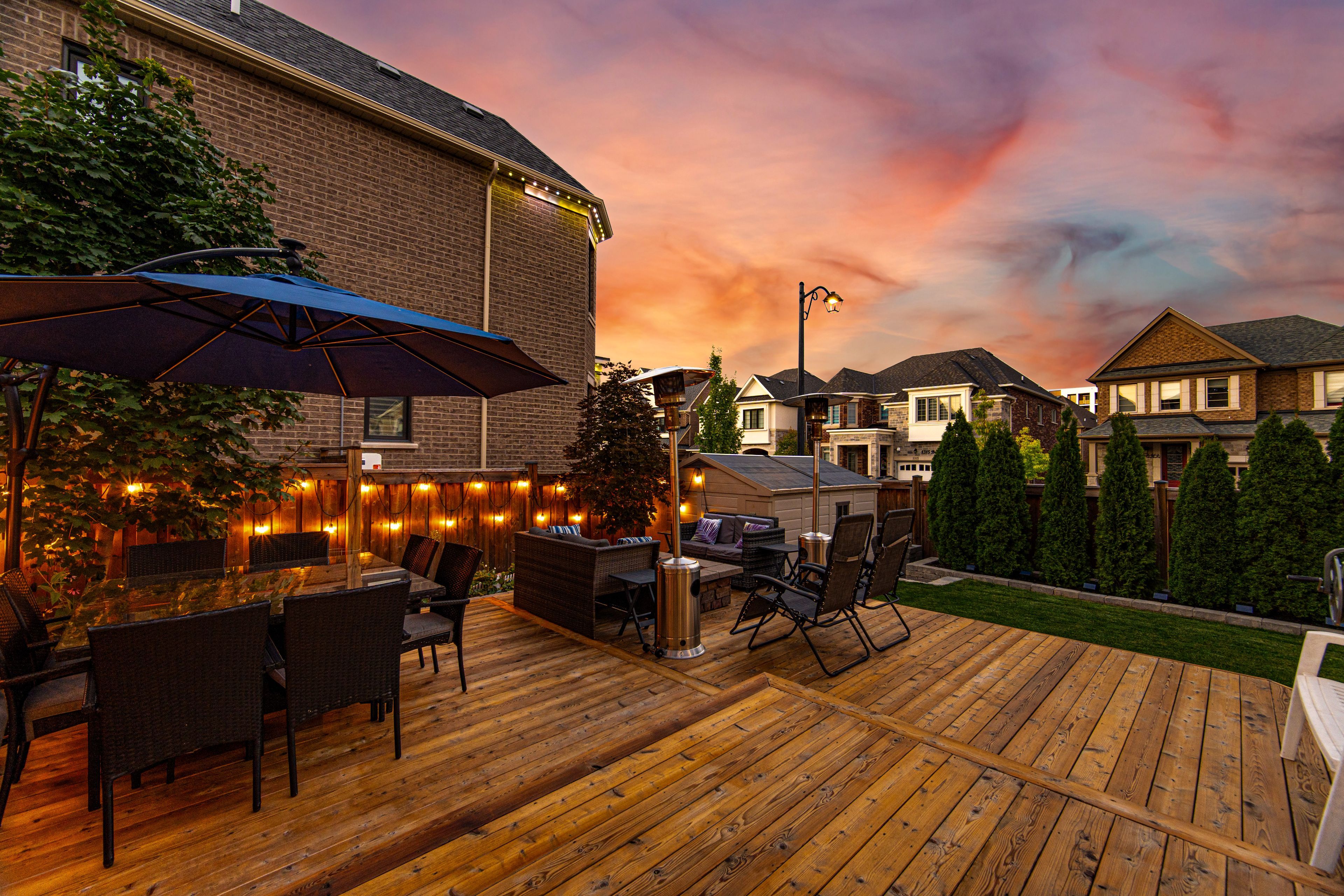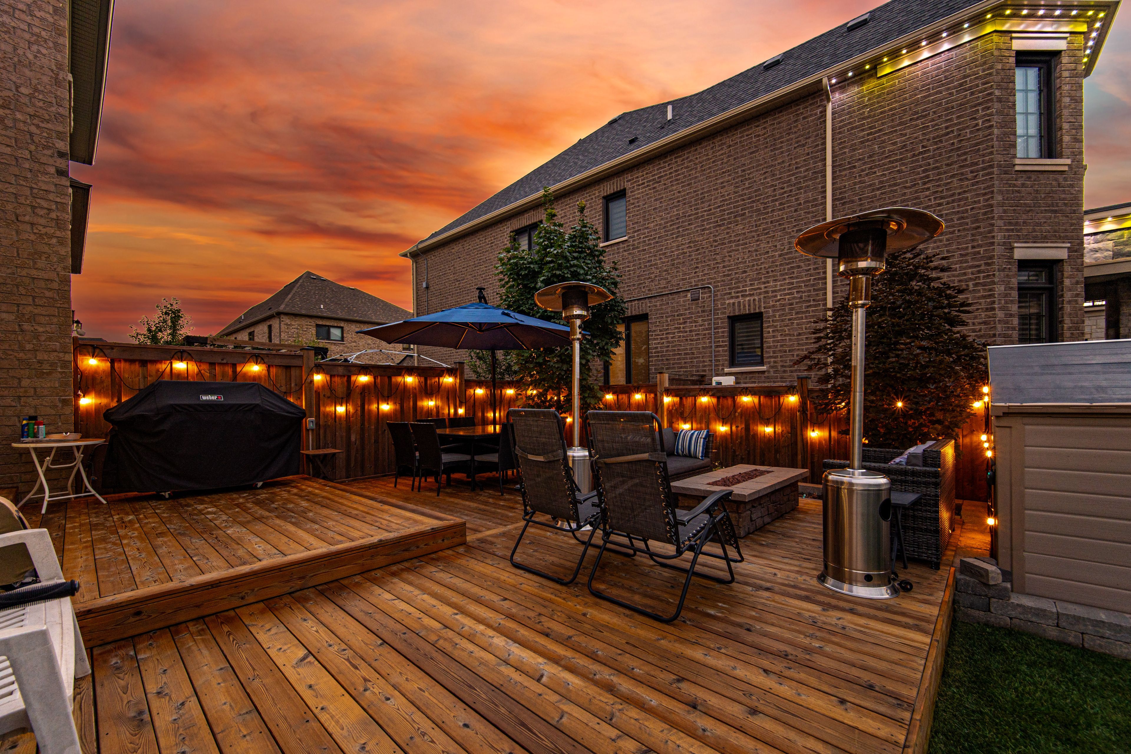 Corner lot! Refined design, thoughtful luxury, and exceptional finishes define this meticulously curated residence on a quiet, high-end street. The open-concept main floor impresses with rich hardwood flooring, abundant natural light, an elegant wood staircase, and pot lights throughout. The modern kitchen features quartz countertops, a stylish backsplash, large pantry, and samsung smart appliances. A powder room, versatile piano room or office, and a gas fireplace complete the space. Upstairs offers three spacious bedrooms and two full bathrooms, including a primary suite with a coffered ceiling. Both the primary ensuite and the second bedroom ensuite are finished with elegant marble countertops. A second-floor laundry room with samsung smart appliances and a large walk-in linen closet adds everyday convenience. Additional features include a bosch tankless water heater and lifebreath filtration system. The finished lower level boasts an open-concept great room, 3-piece bathroom, large storage room, additional storage, and a spacious woodworking shop. Enjoy a private, fully fenced backyard with over $60k in landscaping, featuring a 400 sq ft cedar deck, covered porch, 15 emerald cedars, mature maple trees, stone planter boxes, and a large garden. Gas lines for a bbq and fire table, an 8' x 11' shed equipped with electricity and a concrete pad, and side gate access add exceptional functionality. Permanent gemstone lighting enhances curb appeal year-round. Conveniently located near hwy 401 & 407, milton go, top-rated schools, parks, trails, and shopping, including milton mall. Perfect for families and commuters seeking both luxury and lifestyle.