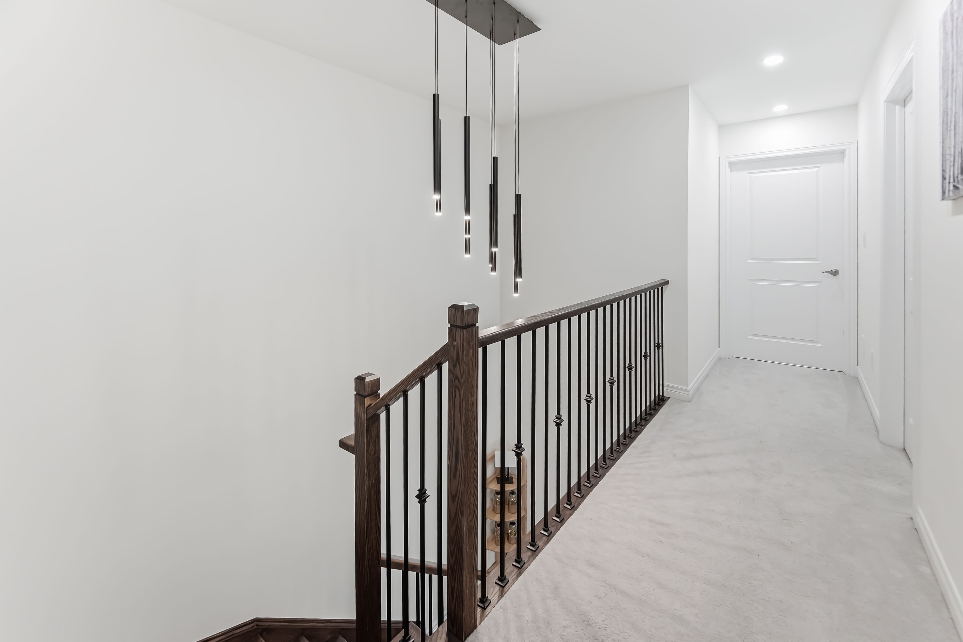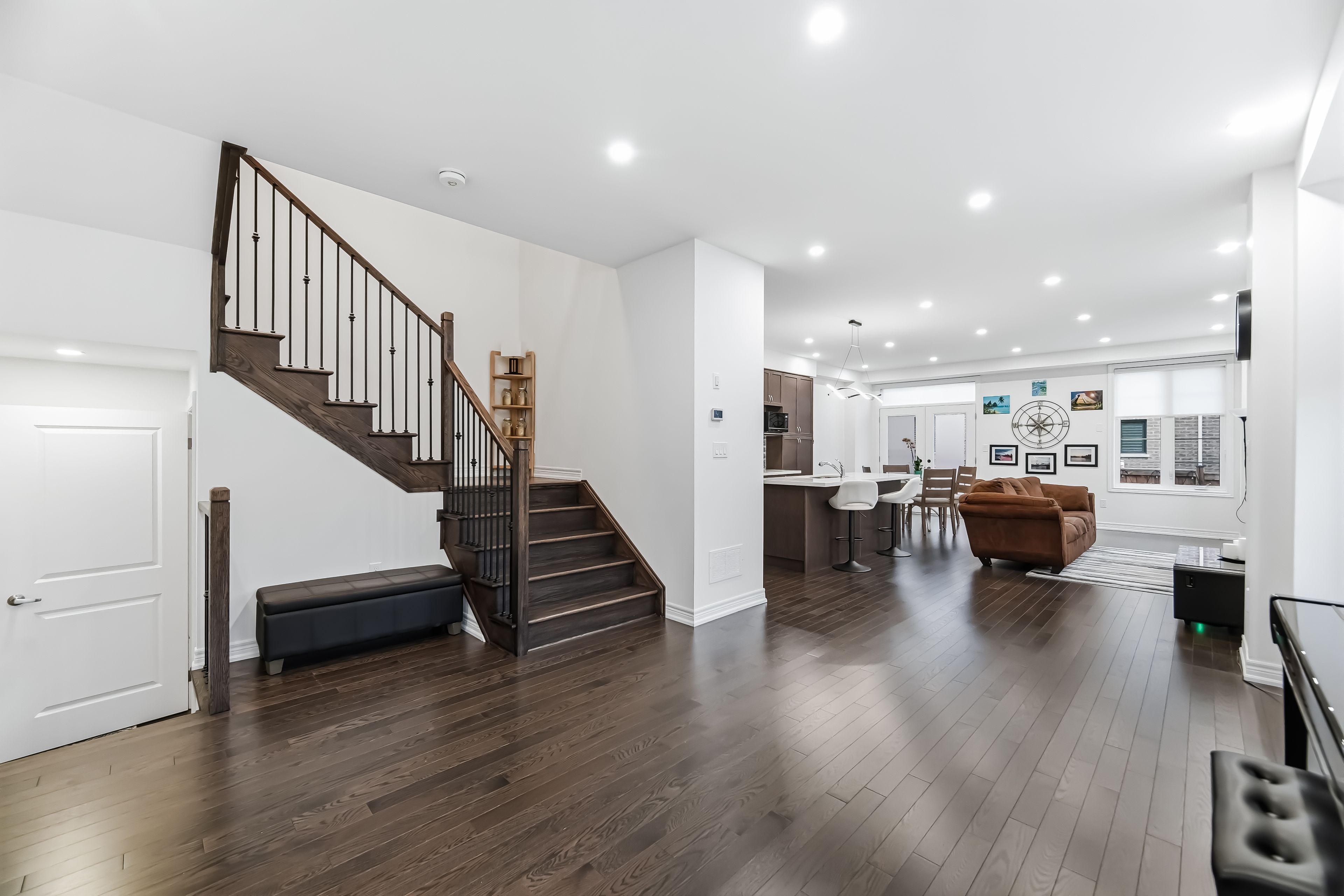• Open-concept main floor with abundant natural light and elegant wood staircase.