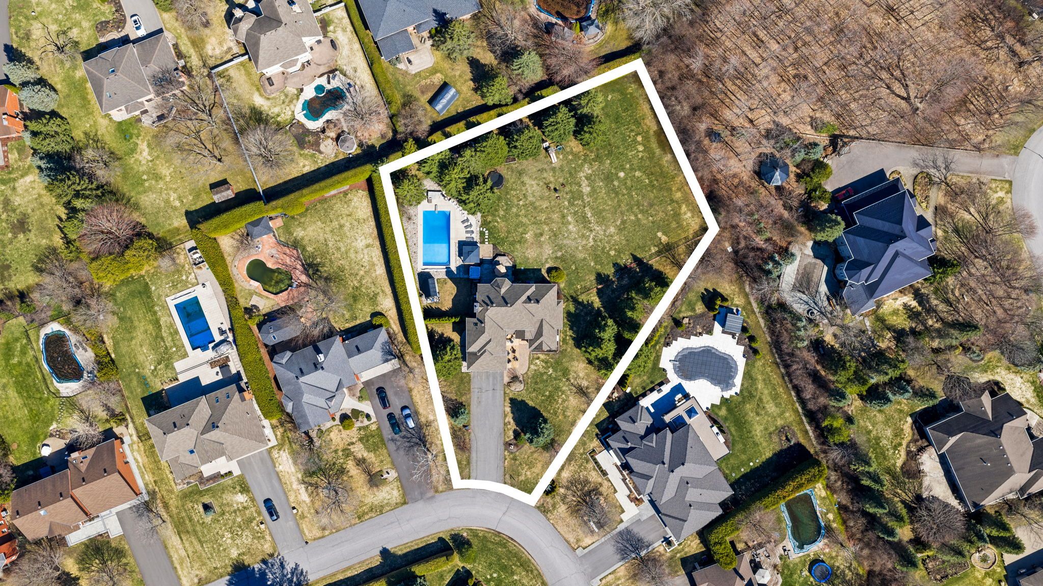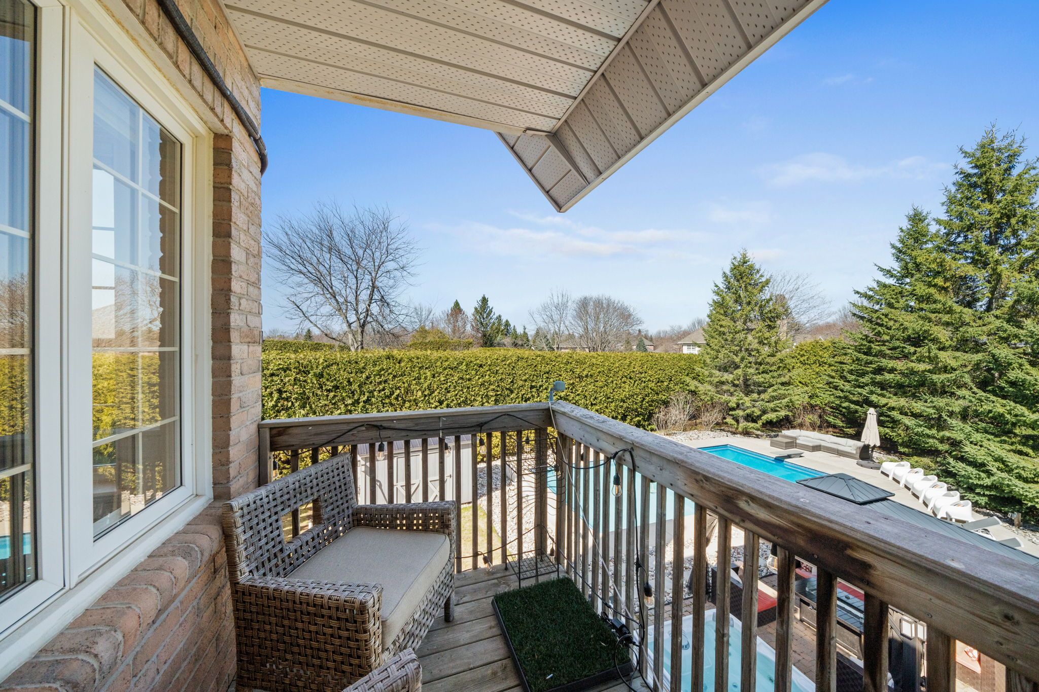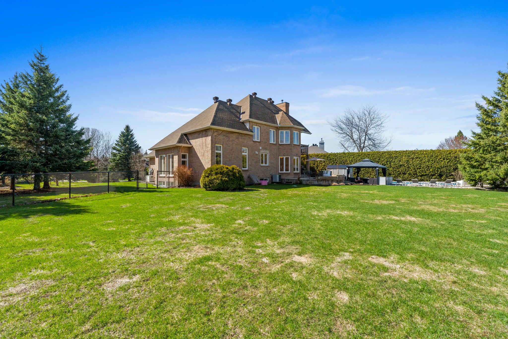 Welcome to an unparalleled retreat in the heart of manotick estates. Set on an expansive 1. 112-acre pie-shaped corner lot, this property is a rare gem in one of the city's most sought-after communities. Offering extreme privacy secured by tall hedges, stands of mature evergreens, & fully fenced, this expansive estate feels like a personal sanctuary. The sheer scale of this lot provides a vast canvas for the imagination, offering endless possibilities for future expansion, such as a coach house, detached outbuildings, & extra hosting space. The architectural presence of the home is immediate, featuring high roof lines & large windows that flood the interior with natural light. Inside, the grand foyer w/ an oak staircase leads to refined living spaces. The living room boasts 9ft vaulted ceilings w/ heavy crown moldings, a wood-burning fireplace, while the dining room features a bay window overlooking the 20' x 40' saltwater inground pool, gas fireplace & hot tub area. The gourmet kitchen has been completely reimagined with crisp white cabinetry, black honed granite counters, pewter travertine flooring & a raised breakfast bar. For the entertainer & sport enthusiast, a custom bar area w/ a sink & beverage fridge leads to the family room, complemented by 11ft tray ceilings w/ recessed lighting & french pocket door. The upper level serves as a sanctuary, headlined by the primary bedroom retreat featuring a bayed sitting area & exclusive access to a covered romeo & juliet balcony overlooking the yard. The primary ensuite is fully renovated w/ a soaker tub, dual vanities, & separate walk-in closets. The finished basement extends the home w/ a 4th bedroom & a fully renovated bathroom + laundry room w/ heated floors. Whole-home generac generator, two new sump pumps + battery backup system, professionally landscaped (2023), new water treatment systems + uv filter (approx 4 years old), roof (approx 8 years old, + 25-year warranty), gas furnace (approx. 2019), many more updates