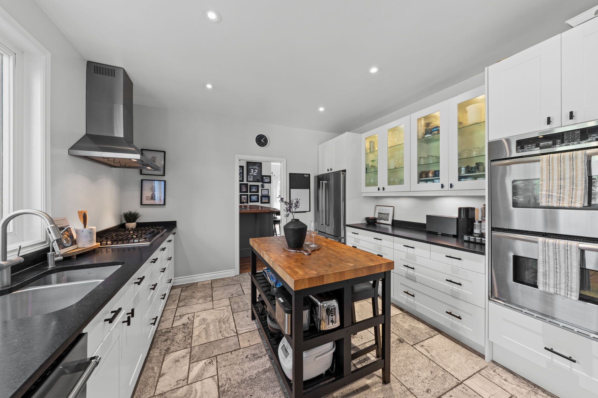 • Gourmet kitchen features updated cabinetry, granite counters, and breakfast bar.