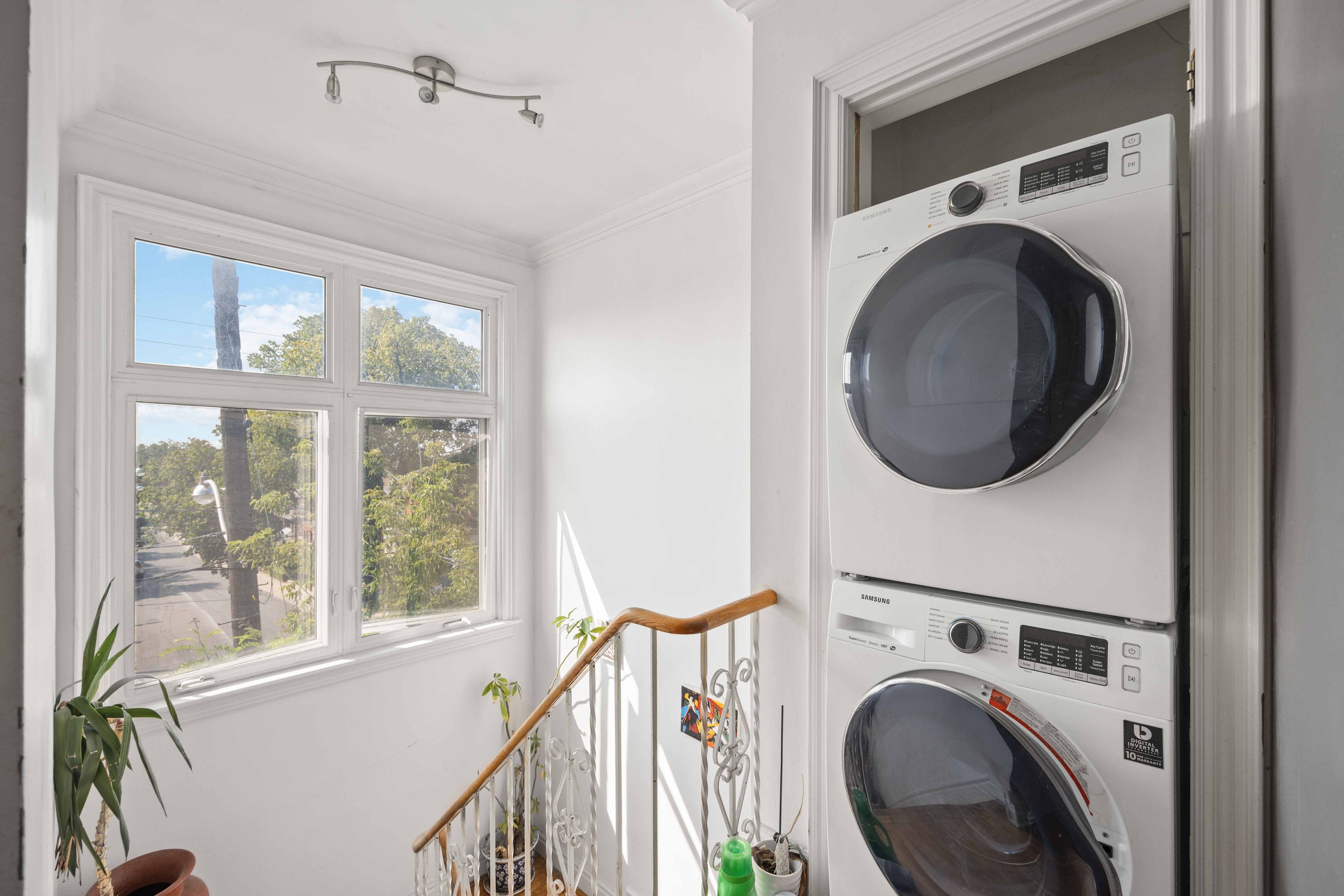 • Three bedrooms on the second floor with hardwood floors and ample closets.