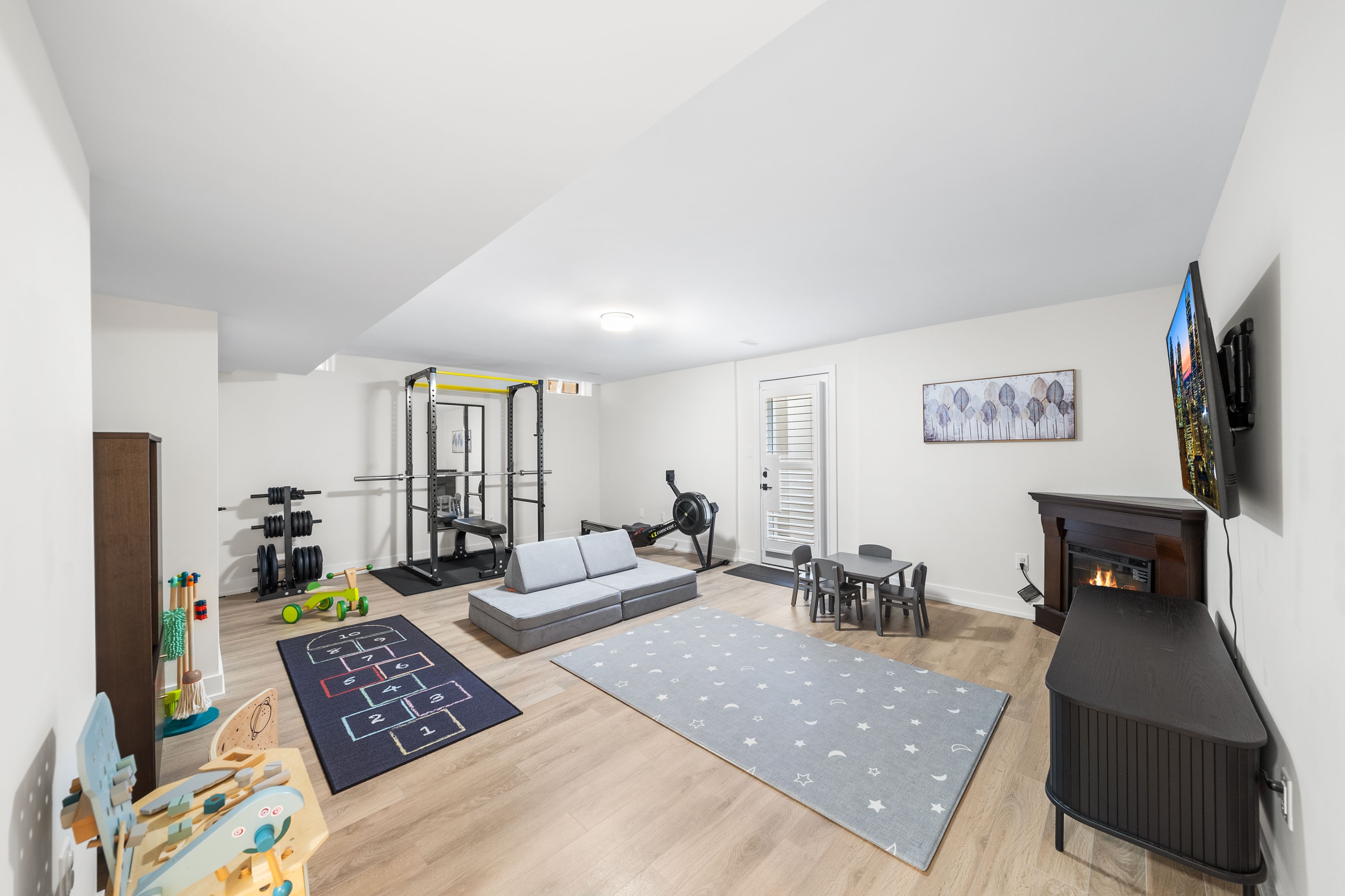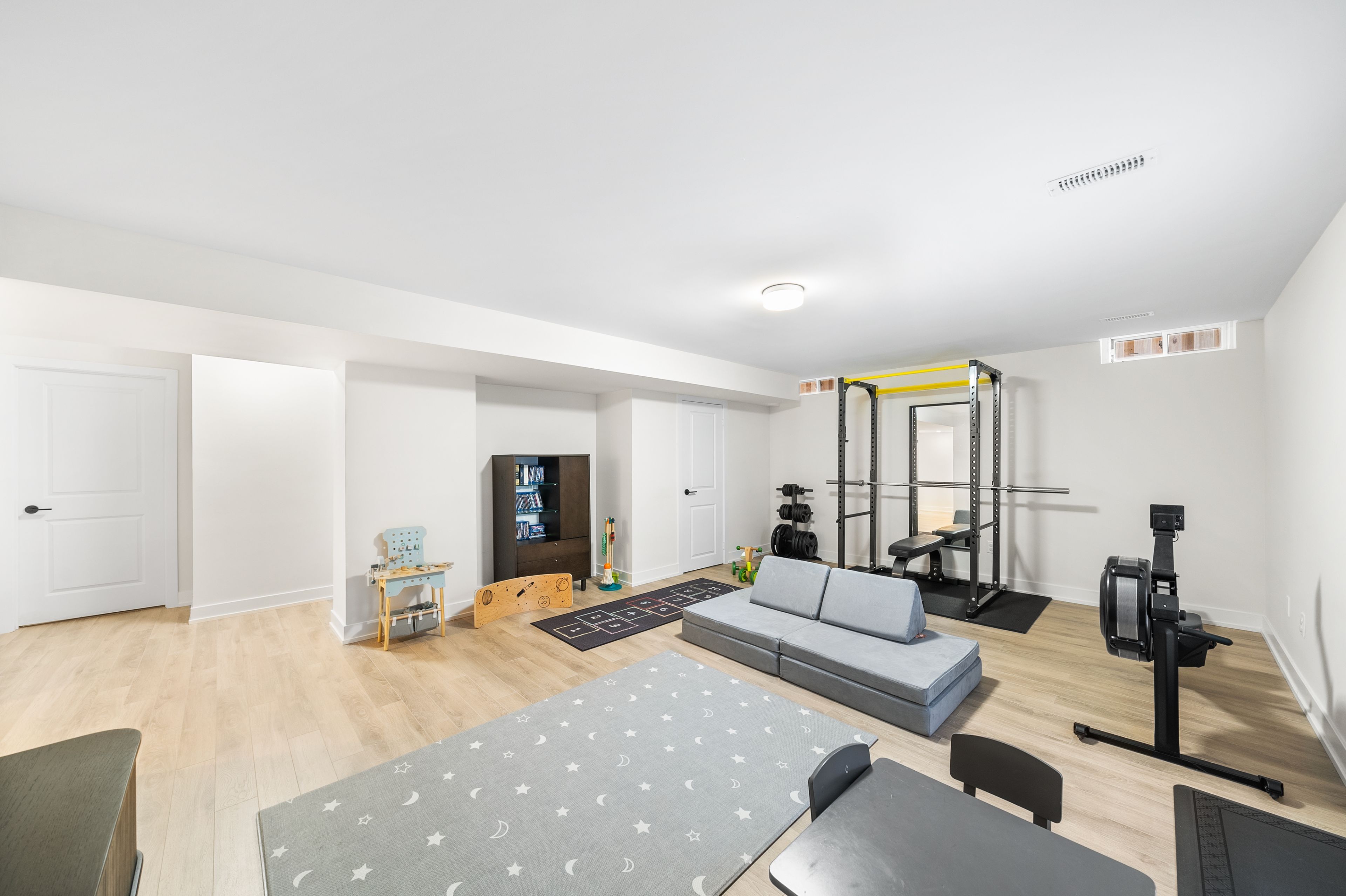 • Gourmet kitchen with top-of-the-line appliances and quartz countertops.
