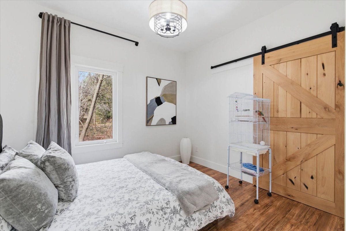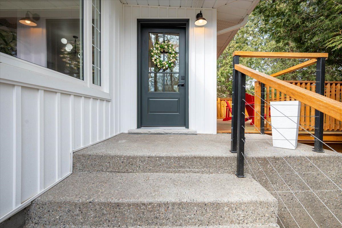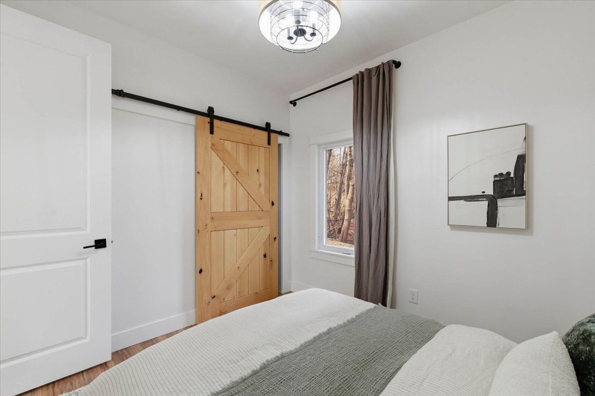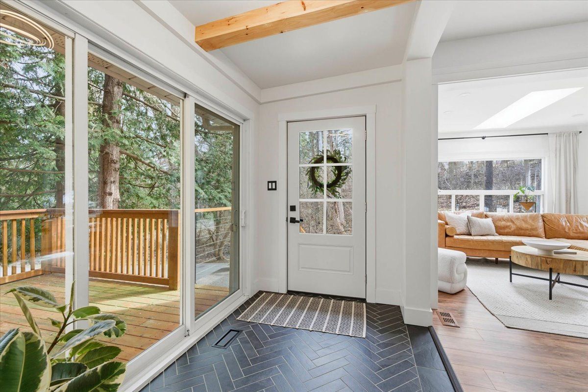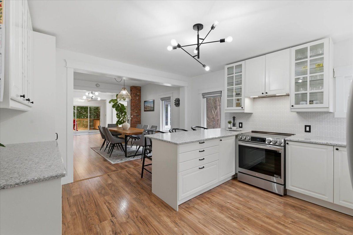 Sitting on one acre of land, nestled along the wooded banks of the grand river, this recently updated home is ready to be yours, in the quaint neighborhood of sheps subdivision, north dumfries. At a quick glance, you get the feeling that you've left the city hours behind, but it's actually a scenic 8 minute drive to downtown galt. The home and detached garage take advantage of the deep lot as they sit back from the road, the mature trees create a natural buffer making the property more private. The bungalow is approximately 1466 square feet of pure charm. A three-panel floor to ceiling window and sliding door separate the foyer from the front facing deck which overlooks the pond and creates the spot for you to enjoy your morning coffee. The living room is the perfect example of how immersed the home is into its natural surroundings, windows on all three sides and a skylight; you won't suffer from the lack of natural light here. The formal dining room separates the living room from the eat in kitchen, rightfully occupying a major part of the main floor space. Wrap around quartz countertops form a peninsula that can seat three. Storage and display cabinetry fully utilize the wall space adding function and elegance with stainless steel appliances. The home hosts two bedrooms and two bathrooms, one is a 3 piece and one is a luxury 5 piece, complete with free standing soaker tub and the shiplap wall finishing of the mudroom laundry continues to bring the cottage feel. The second structure on the property is dual purposed. It's a detached garage or shop space, and right beside it with a separate entrance and its own heating and cooling system, an additional bachelor dwelling unit complete with kitchen, bathroom, and laundry. Furnace (2023), septic system rebuild (2023) you will be hard pressed to find a property so close to the city that offers the privacy and versatility like this one!