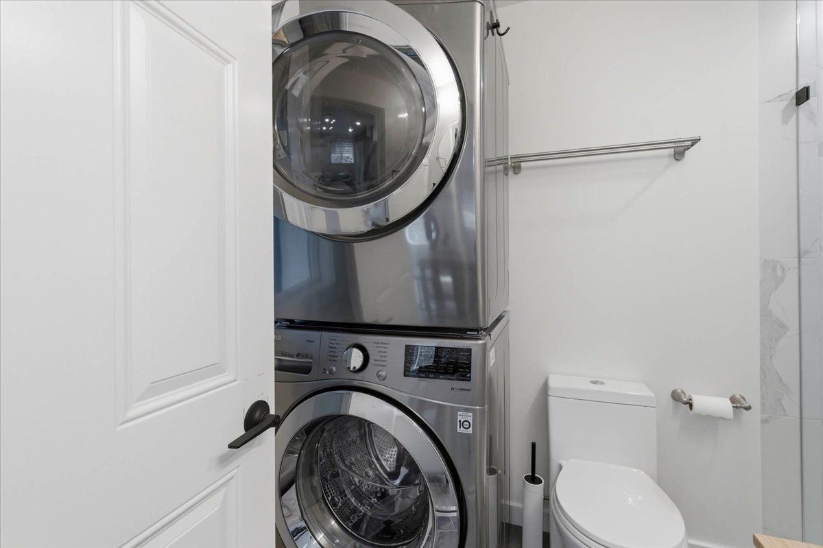 • Open concept living with quartz countertops and stainless steel appliances.