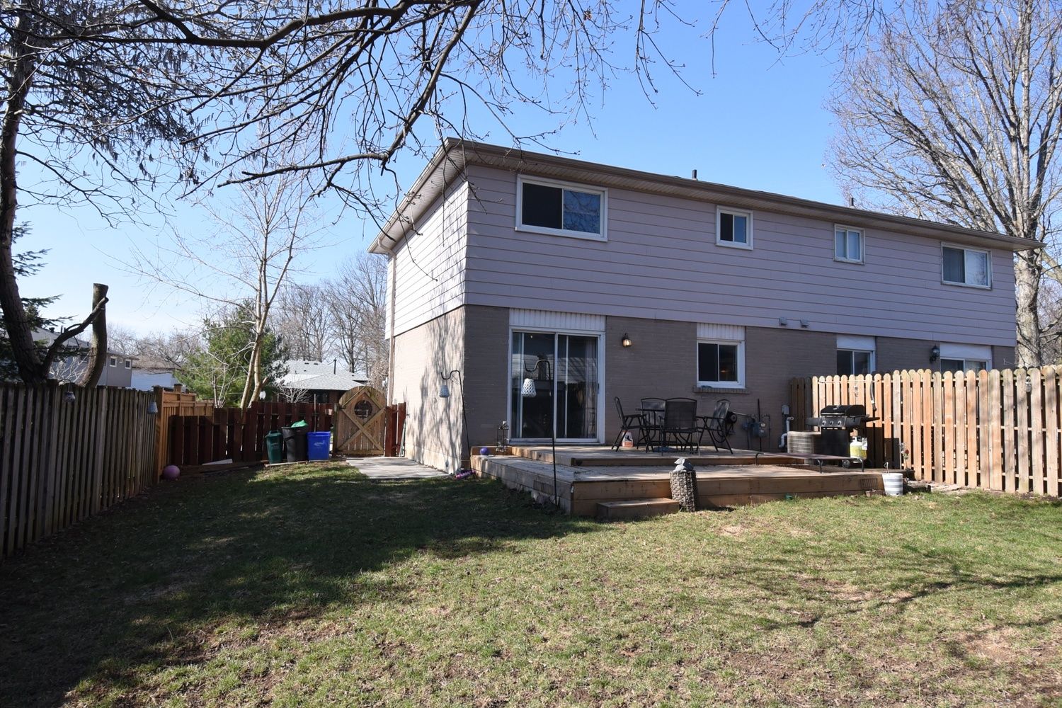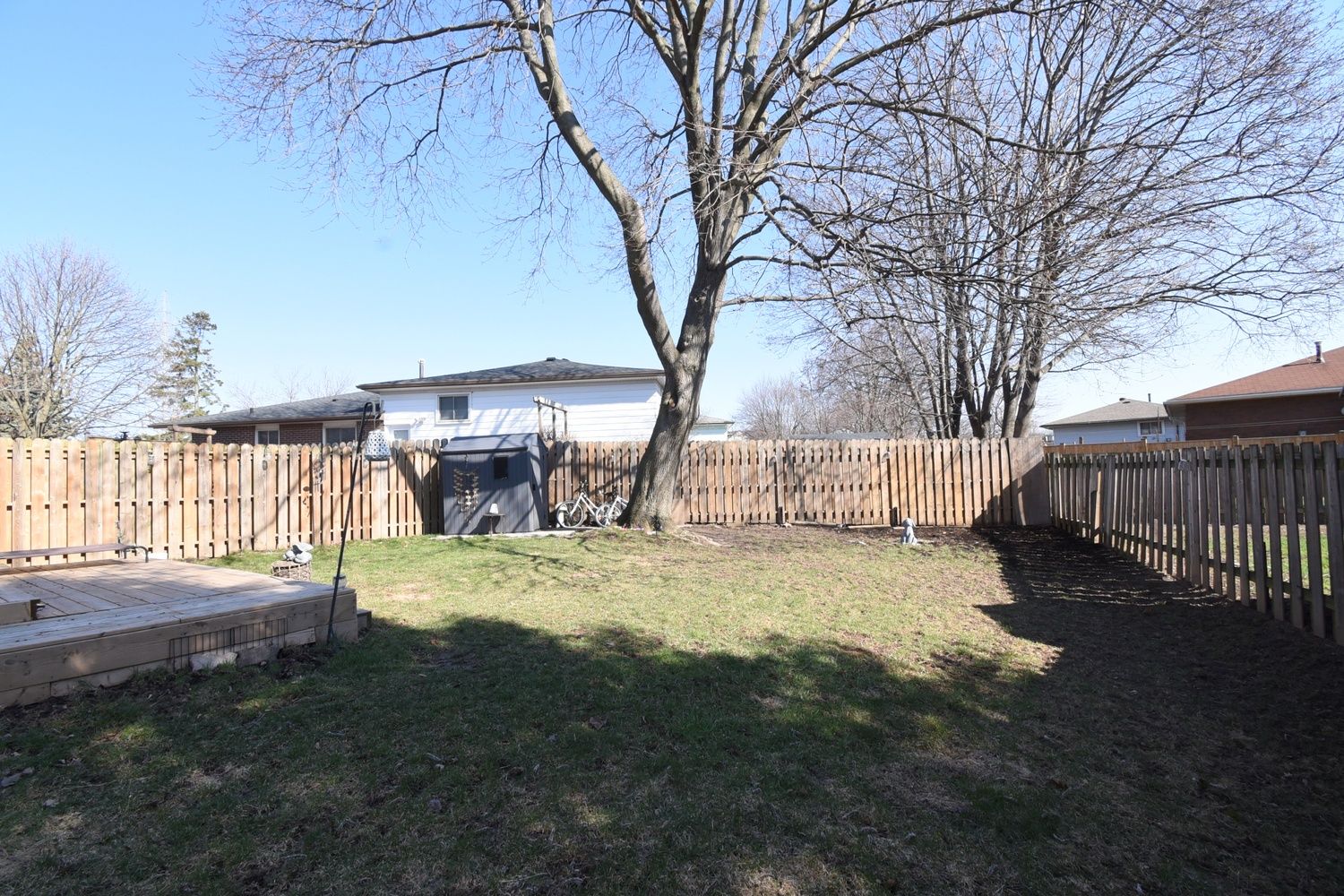 • Large, fully fenced backyard with a deck for outdoor living.