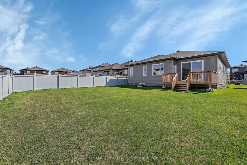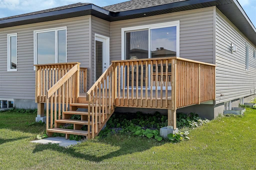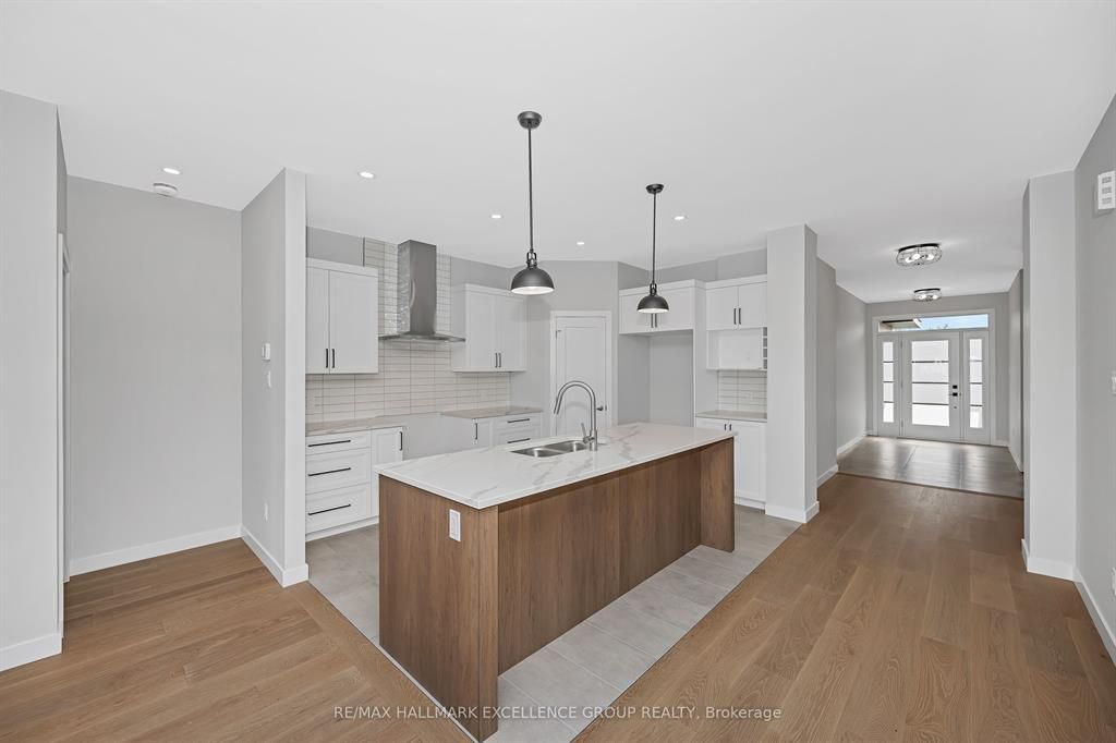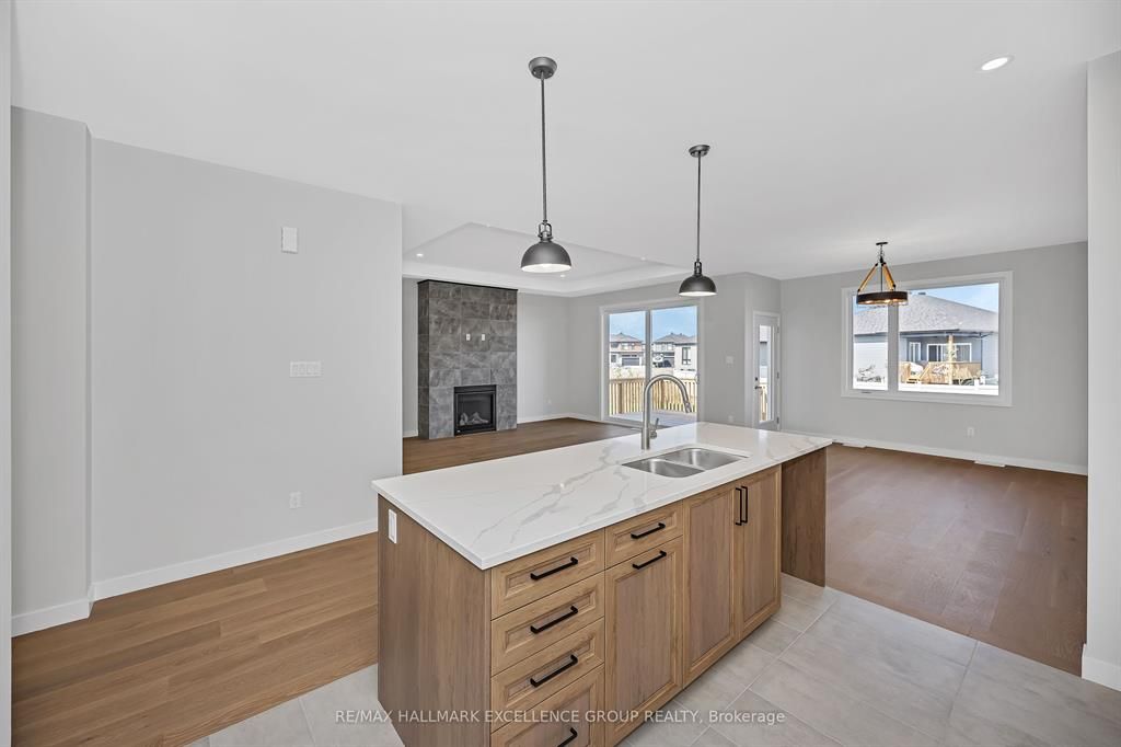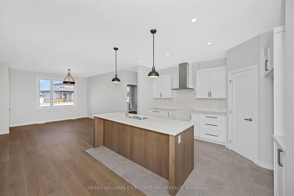Brand-new bungalow offering hst rebate, an elegant design, quality finishes, modern comfort & an oversized lot! This stunning 1,862 sq ft home features a timeless stone façade, a double garage with access to inside and an inviting layout perfect for todays lifestyle. Step inside to a spacious foyer with a walk-in closet, leading to an impressive open-concept living space that blends the kitchen, dining & living areas seamlessly... Ideal for entertaining & everyday living. The gourmet kitchen boasts quartz countertops, a pantry, backsplash, quality cabinetry with pull-out drawers, and a functional island with built-in recycling station. Enjoy easy access from the dining & living areas to the exterior deck overlooking an extra deep backyard, perfect for summer gatherings. The primary bedroom offers a peaceful retreat with a luxurious ensuite featuring a soaker tub, walk-in tile/glass shower, double vanity, and walk-in closet. Two additional bedrooms provide ample space with generous closets. A secondary side entrance conveniently connects to both the main floor hallway and the unfinished basement, which is roughed-in for a full in-law suite offering future income potential or multi-generational living flexibility. Additional features include ceramic & wide plank hardwood flooring throughout, owned furnace & air exchanger, 200 amp electrical panel, and immediate possession available. 24 hours irrevocable on all offers. Some photos virtually staged.