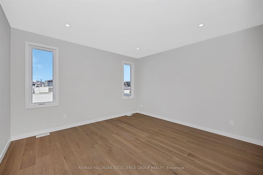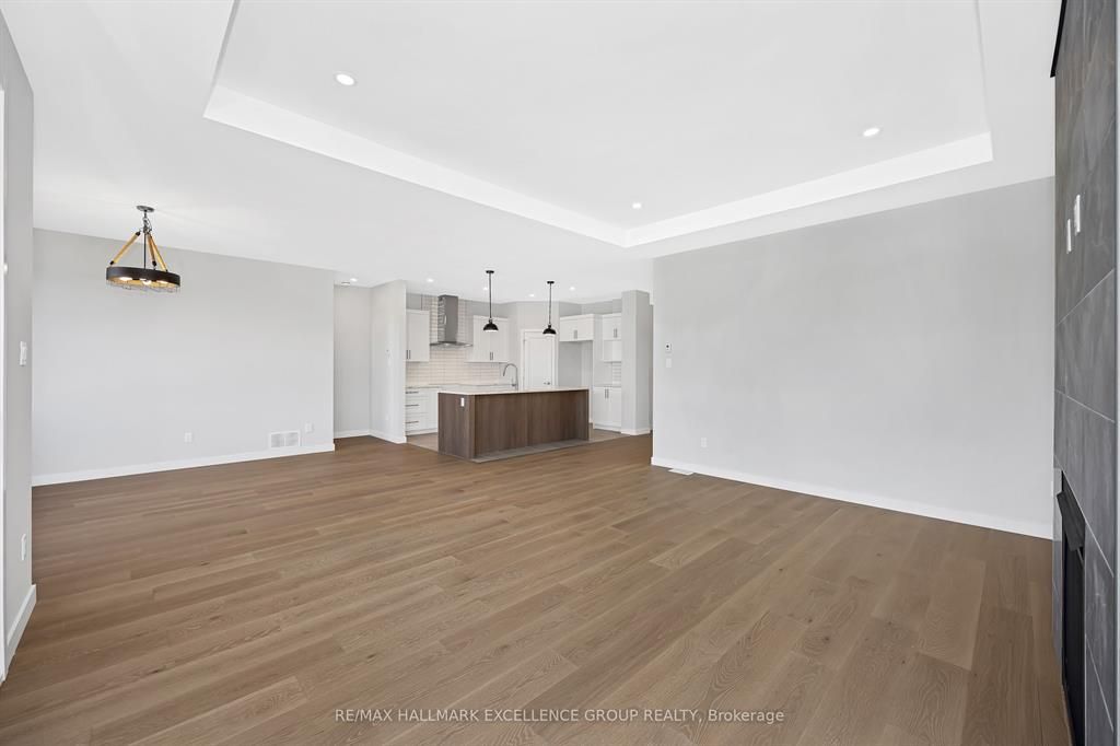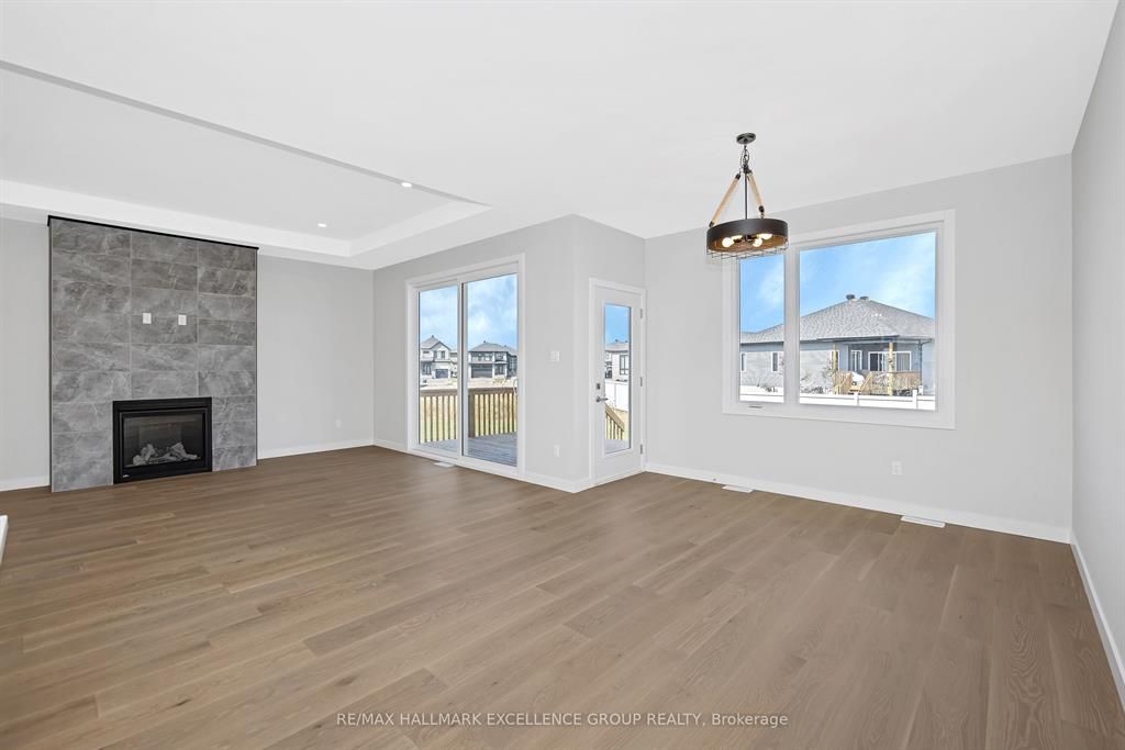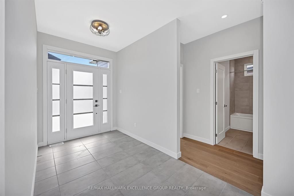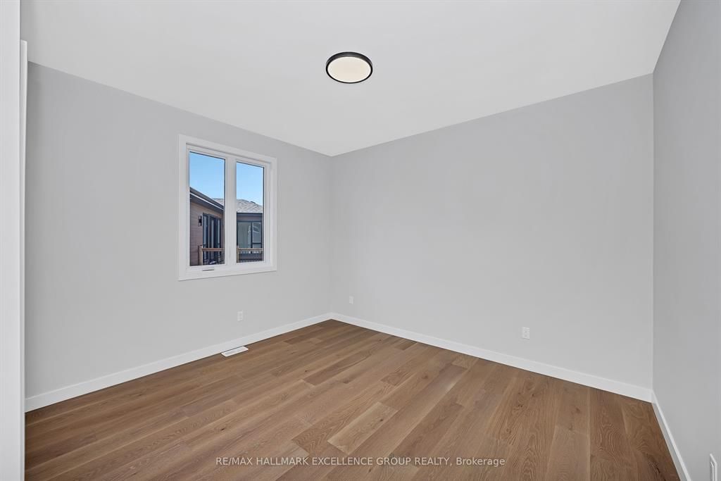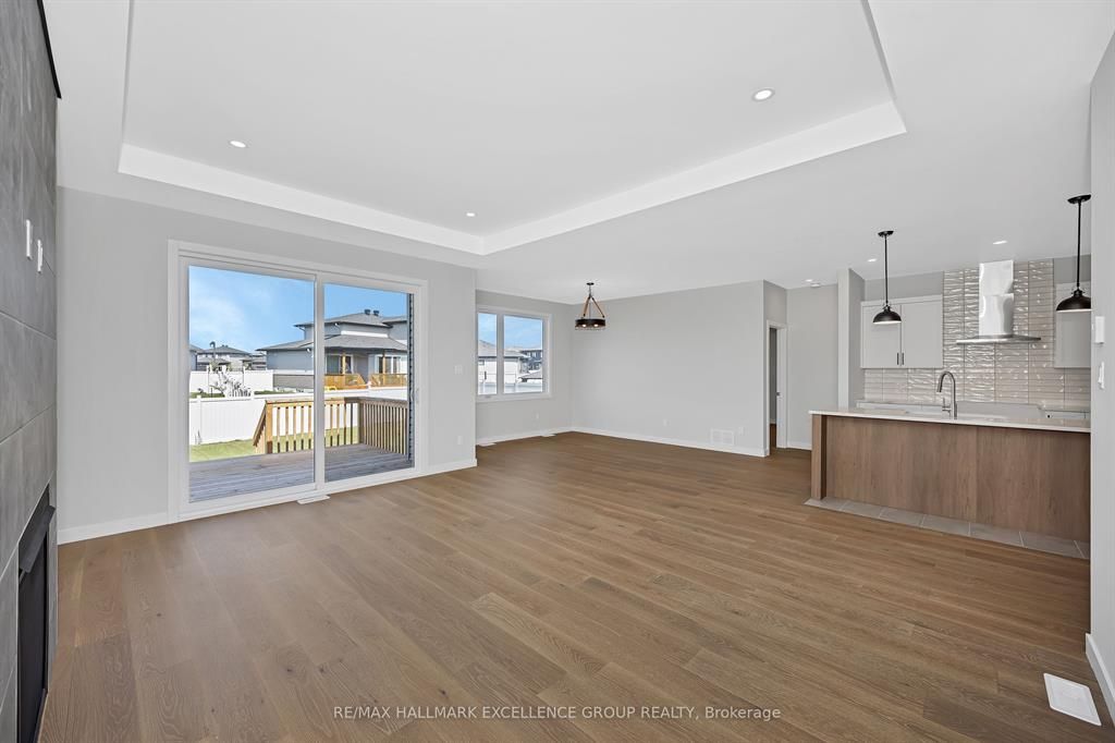 Brand-new bungalow offering hst rebate, an elegant design, quality finishes, modern comfort & an oversized lot! This stunning 1,862 sq ft home features a timeless stone façade, a double garage with access to inside and an inviting layout perfect for todays lifestyle. Step inside to a spacious foyer with a walk-in closet, leading to an impressive open-concept living space that blends the kitchen, dining & living areas seamlessly... Ideal for entertaining & everyday living. The gourmet kitchen boasts quartz countertops, a pantry, backsplash, quality cabinetry with pull-out drawers, and a functional island with built-in recycling station. Enjoy easy access from the dining & living areas to the exterior deck overlooking an extra deep backyard, perfect for summer gatherings. The primary bedroom offers a peaceful retreat with a luxurious ensuite featuring a soaker tub, walk-in tile/glass shower, double vanity, and walk-in closet. Two additional bedrooms provide ample space with generous closets. A secondary side entrance conveniently connects to both the main floor hallway and the unfinished basement, which is roughed-in for a full in-law suite offering future income potential or multi-generational living flexibility. Additional features include ceramic & wide plank hardwood flooring throughout, owned furnace & air exchanger, 200 amp electrical panel, and immediate possession available. 24 hours irrevocable on all offers. Some photos virtually staged.