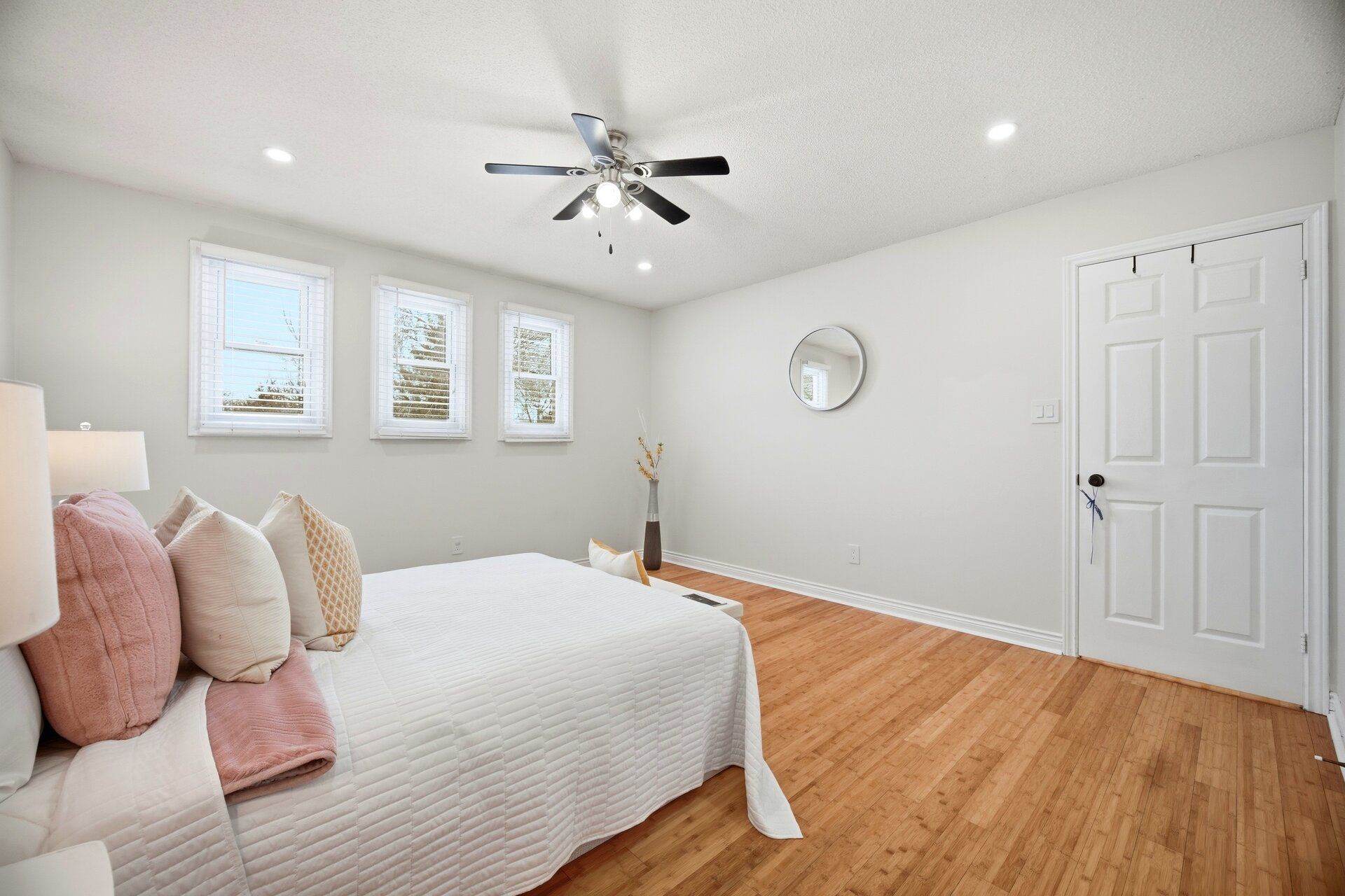 Meticulously maintained and updated 3062 square foot detach with professionally finished basement (2024)having a separate side entrance to basement on a 59' foot lot! Main floor features bamboo hardwood and porcelain flooring throughout 2023 main floor & bedrooms! Renovated kitchen (2023) with quartz counters, pantry, updated range hood and stainless steel appliances, with large breakfast area that walks out to west facing patio! 4 generous bedrooms plus main floor den! Finished basement has 3 piece bath, roughed in kitchen and sep entrance.! Windows replaced. Roof reshingled 2023 with 10 yr warranty. Furnace & a/c 2020! Truly cared for home in desirable neighbourhood in oakville's #1 high school feed - oakville trafalgar! Walk to elementary schools! Minutes to clarkson go, qew/403 and 407!