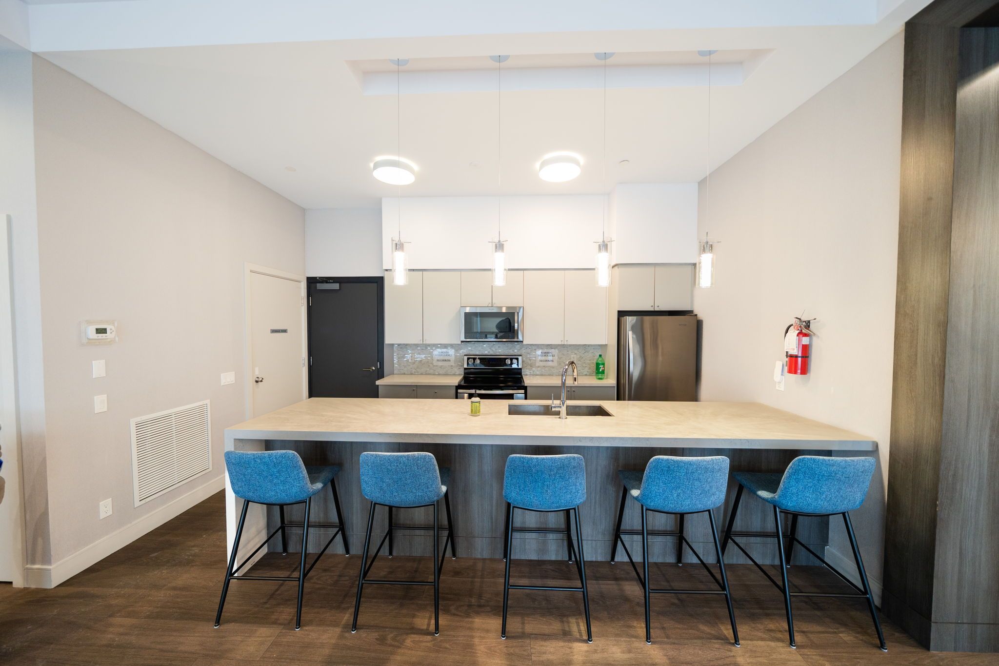• Kitchen equipped with stainless steel appliances and ample cabinet space.