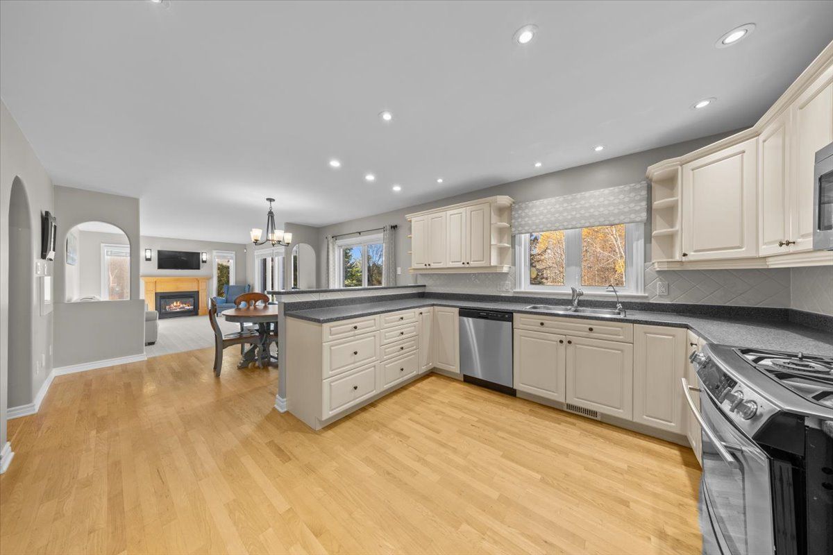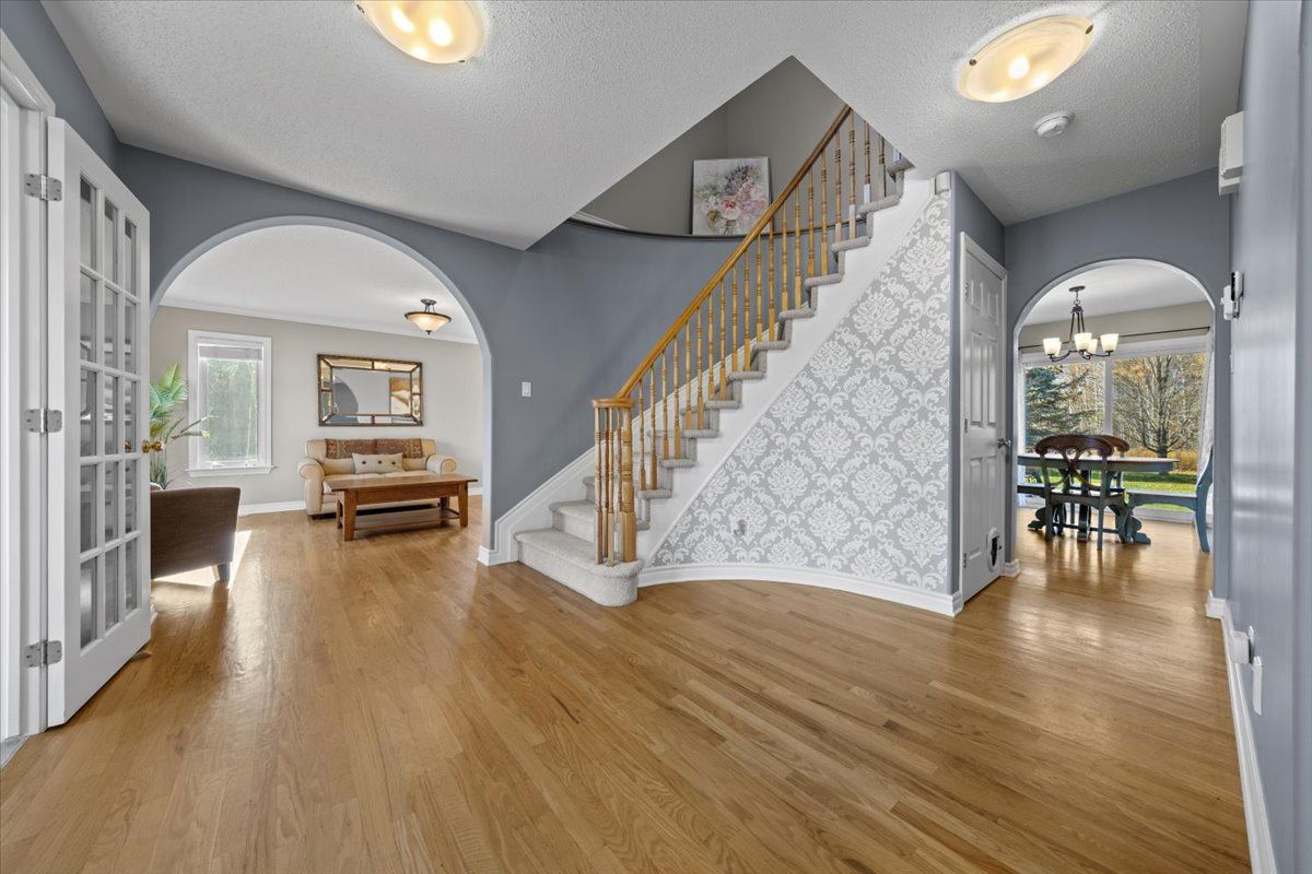 Classic charm meets modern comfort in this timeless 5-bedroom, 4-bathroom family home located on a private 0. 63-acre lot in one of greely's most sought-after neighbourhoods. Thoughtfully designed by john gerard, this residence showcases a beautiful center hall layout, sweeping staircase, elegant built-ins, and signature rounded corners for a refined architectural touch. The main floor features separate formal living and dining rooms, a dedicated home office, and a generous kitchen with gas stove and stainless steel appliances, open to the inviting family room with a cozy gas fireplace. Upstairs, the spacious primary suite offers a luxurious ensuite and walk-in closet, accompanied by three large secondary bedrooms and sculpted berber carpeting throughout. The newly finished lower level adds a bright additional bedroom, full bathroom, and versatile recreation space. Outside, enjoy professionally landscaped grounds with interlock walkway, driveway accents, and a private rear patio surrounded by mature trees. Additional highlights include an upgraded 200-amp electrical panel, brand new generator, underground sprinkler system, and an oversized double garage perfect for the hobbyist or car enthusiast. A beautifully maintained property offering exceptional value and comfort in a premier greely setting.