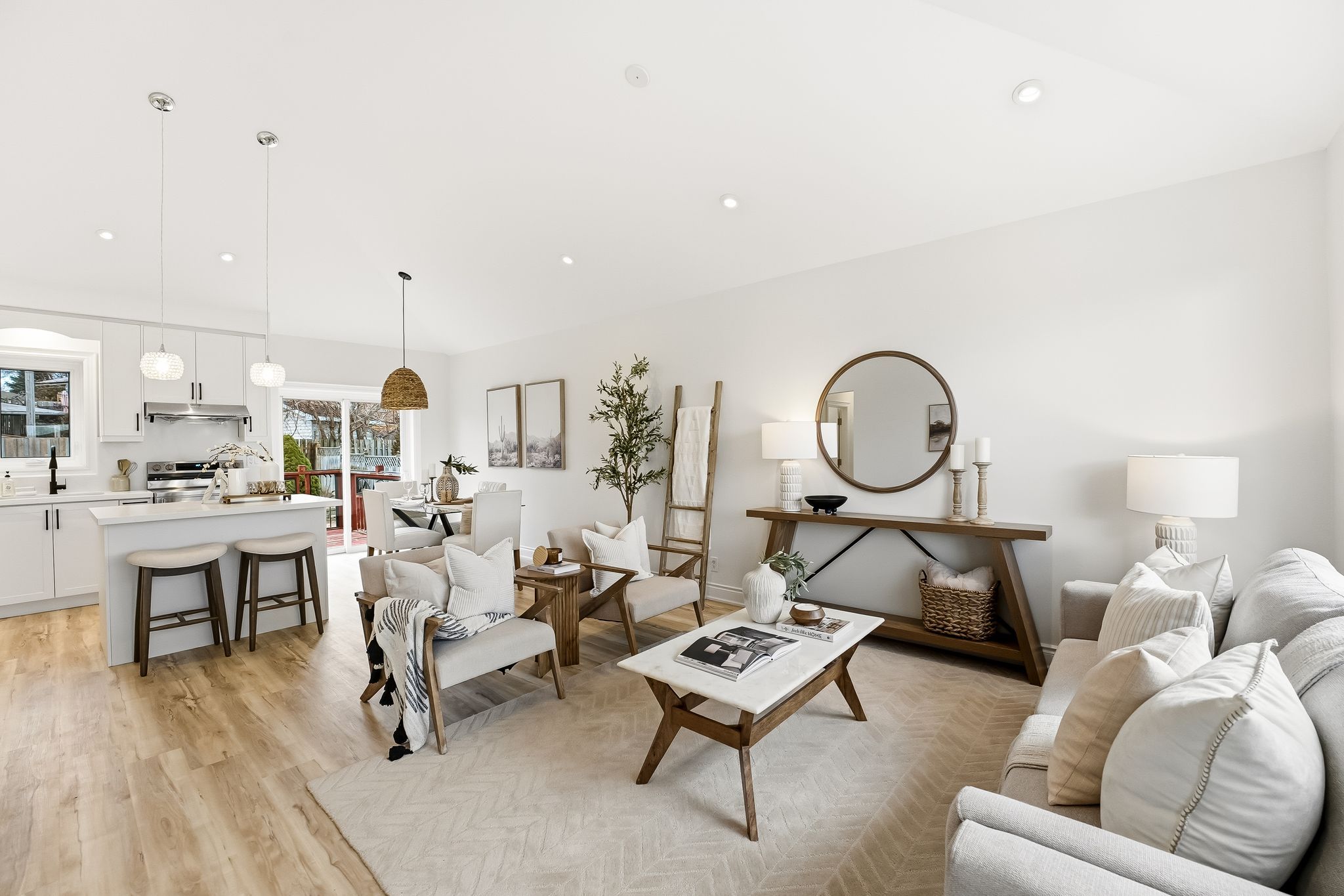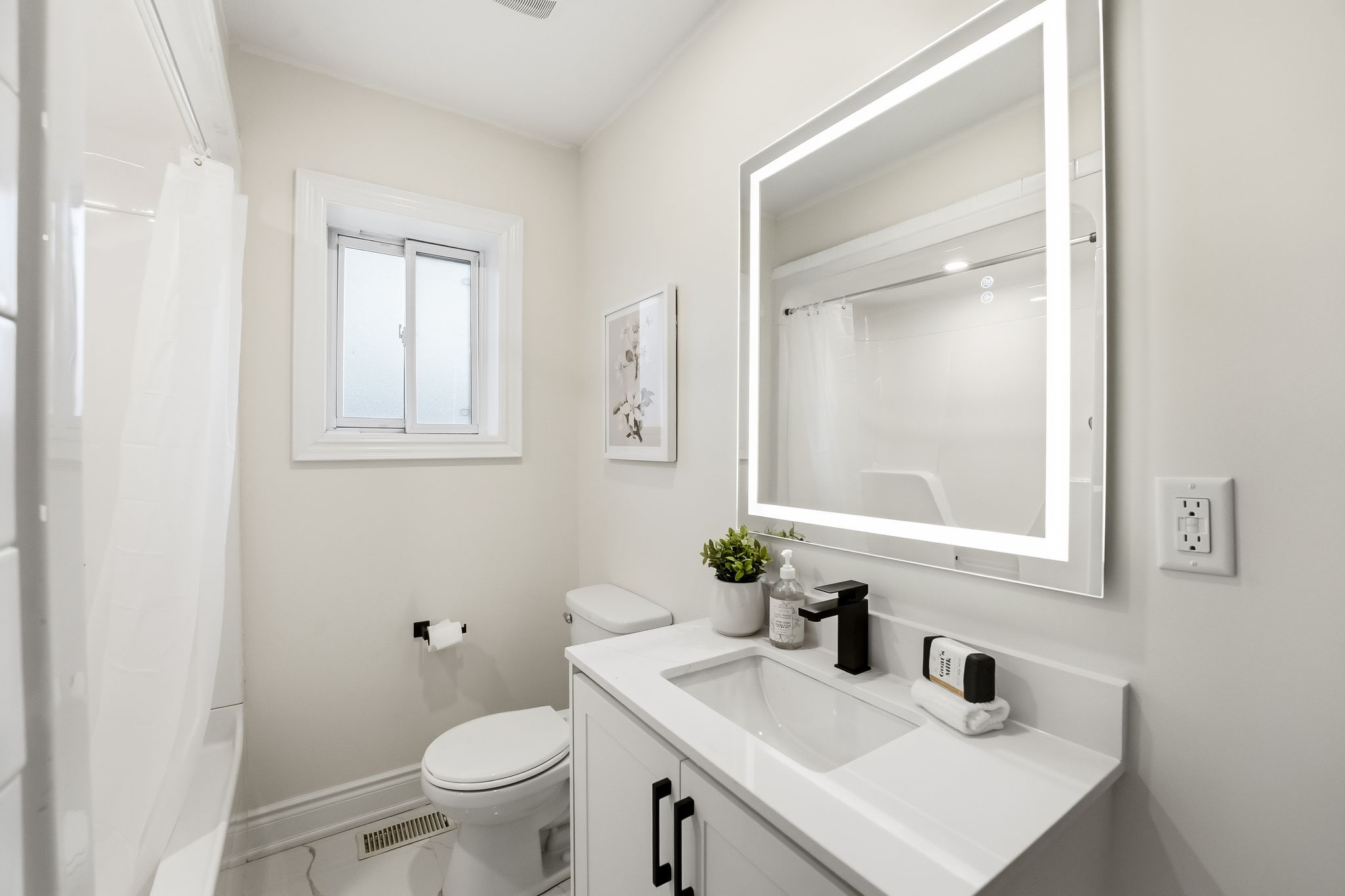 Welcome to 1346 scugog avenue - recently updated detached bungalow ready to move in to! Perfectly located near oshawa's lakeshore, this beautifully refreshed home sits in a neighbourhood known for its parks, schools, conservation area, waterfront trail, and all the amenities of lakeview park. Step outside and enjoy a short walk to the lake and miles of scenic trails. This recently updated property features a bright and airy main floor with cathedral ceilings, pot lights, and large windows that flood the space with natural light. The modern kitchen showcases quartz countertops, matching quartz backsplash, new cabinetry, and stainless steel appliances, making it a true focal point of the home. The renovated bathrooms include led mirrors and stylish designer finishes. An added bonus: this home is perfect for house hacking or extended family living with a separate entrance leading to an in-law suite, offering incredible flexibility and potential.