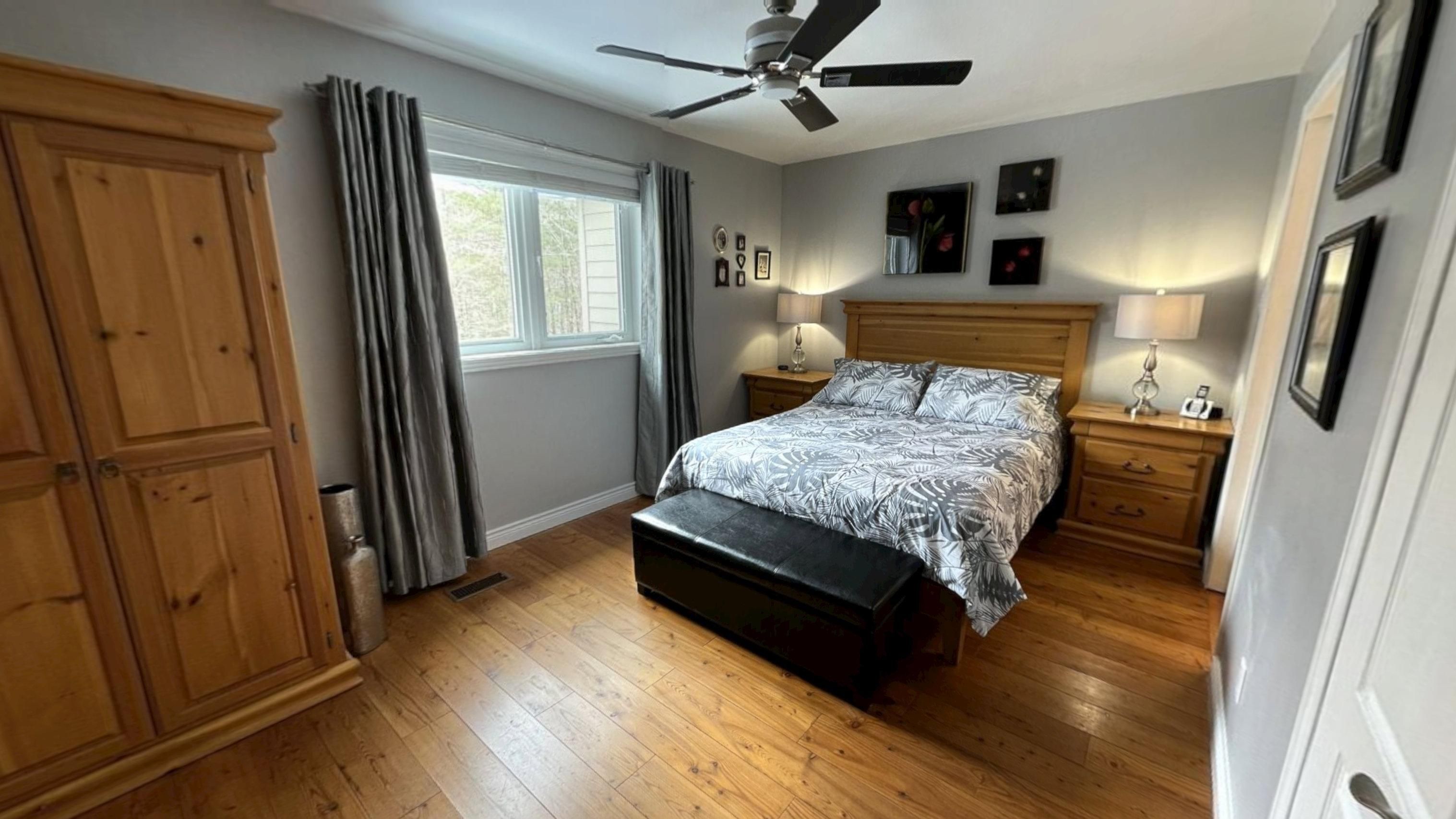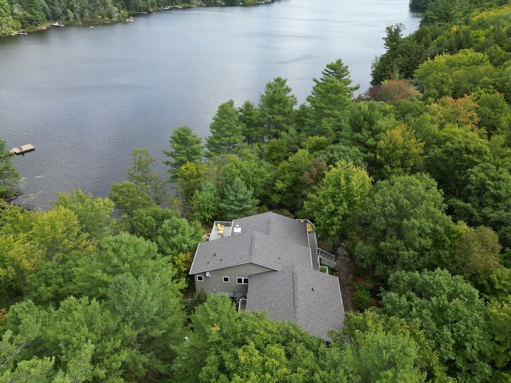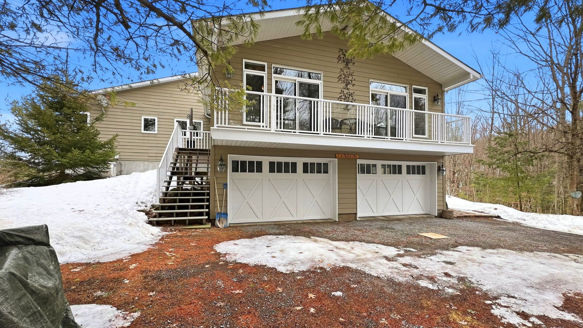 Year-round waterfront home on long lake in parham offering 352 feet of shoreline and 2. 04 acres of privacy. Built in 2002 and maintained by the original owners, this viceroy home provides 2,000 sq ft of living space surrounded by mature pines and oaks with lake views. The property consists of two separately purchased lots. The home sits on a 1. 01-acre lot with 175 feet of waterfront frontage. The adjacent vacant lot is 1. 03 acres with 177 feet of frontage. The shoreline has a gentle slope leading to a large floating dock. The interior features 5 bedrooms and 4 ensuite bathrooms, with heated tile floors in three bathrooms. The open-concept great room includes cathedral pine ceilings, oversized windows with lake views, and wood flooring throughout (larch and pine). Additional features include a wood-burning stove and a recently updated kitchen with granite countertops and solid wood cabinets. Additional structures include an oversized attached double garage and a 12' x 12' matching storage shed with an attached woodshed. Major updates include the roof (2019), forced-air propane furnace (2018), central air conditioning (2019), generac standby generator (2016), well pump, pressure tank and hot water tank (2024), and an 800 sq ft deck with railings (2018). Long lake is known for swimming, fishing and boating.