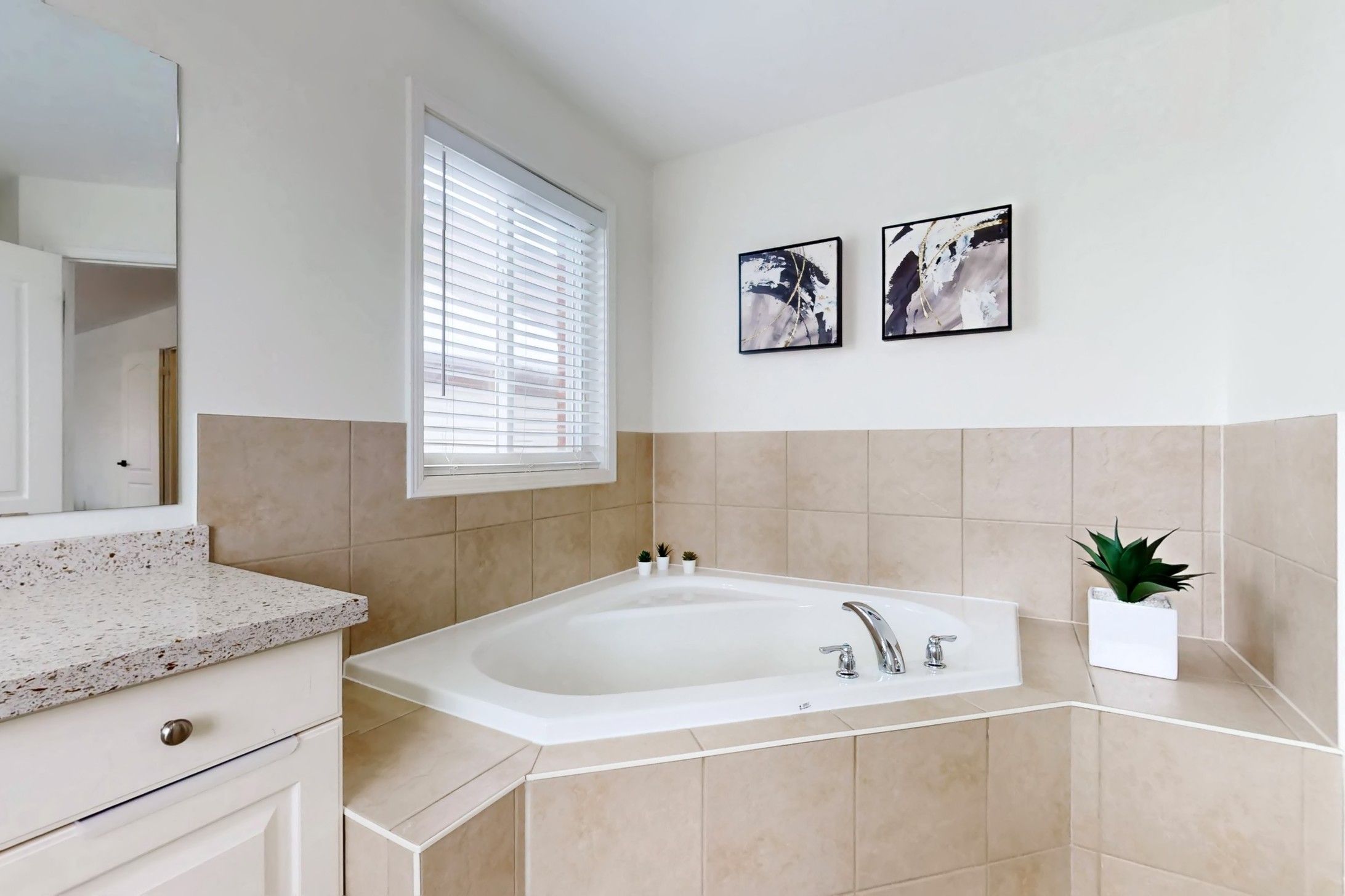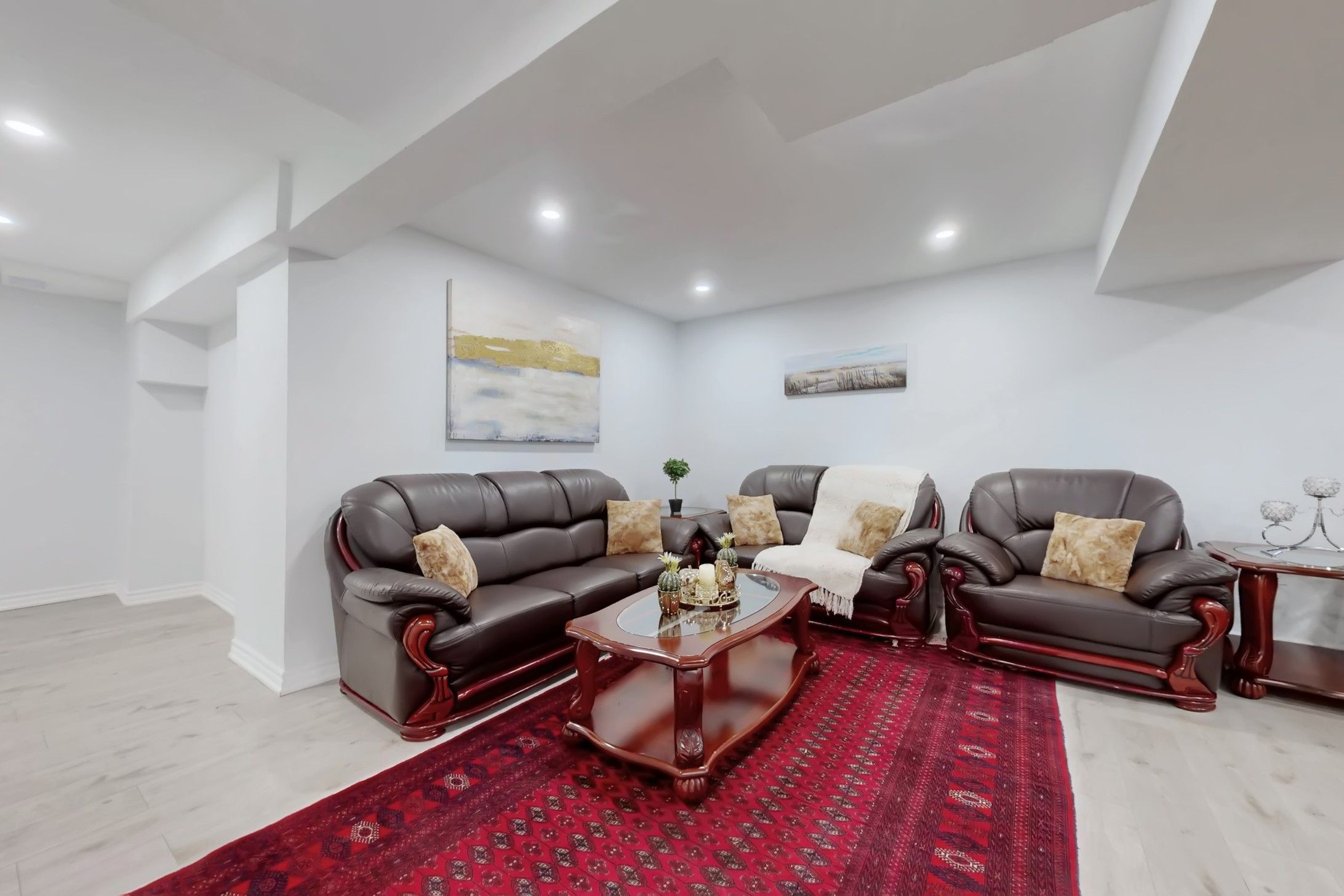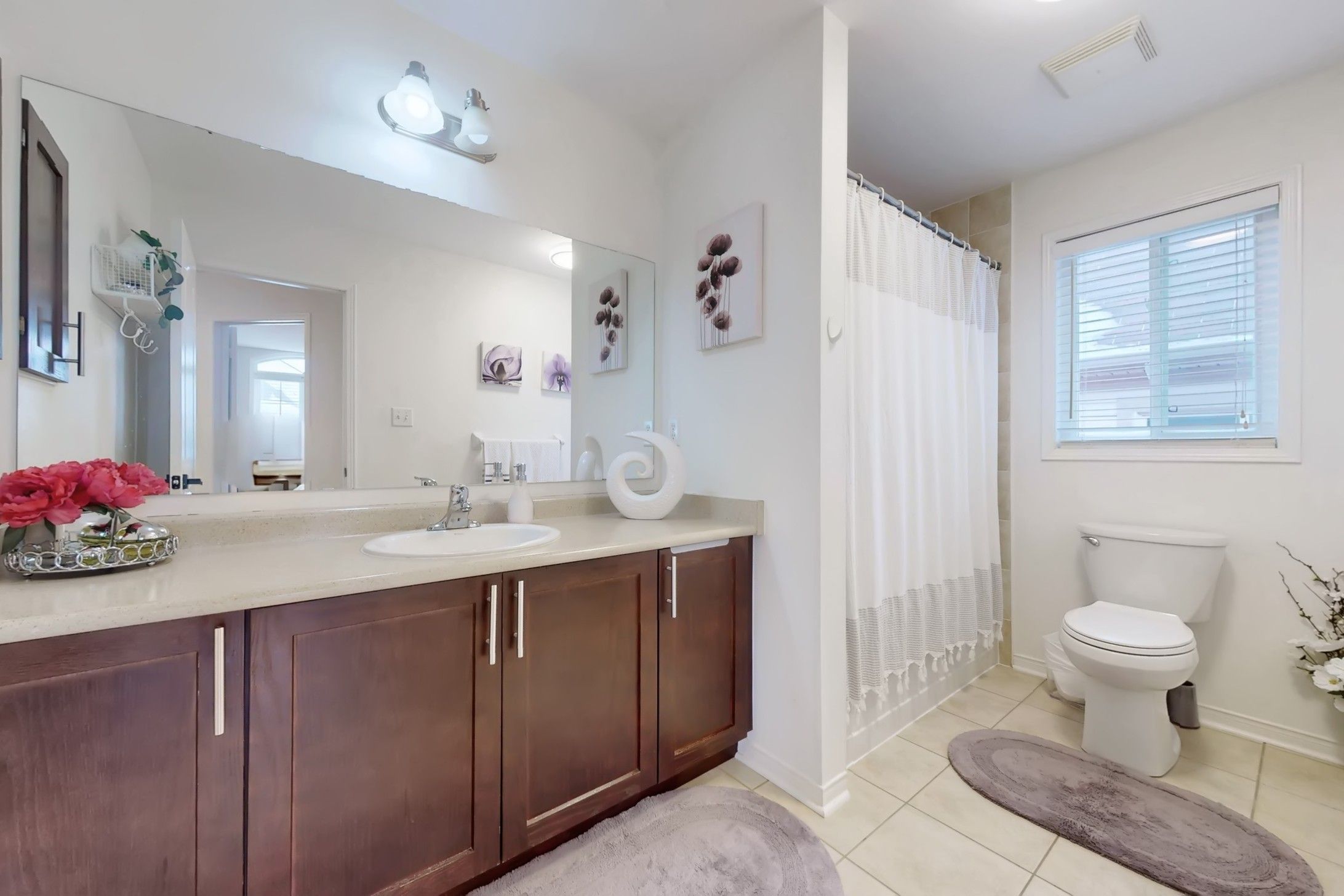 • Bright modern kitchen with quartz countertops and breakfast bar.