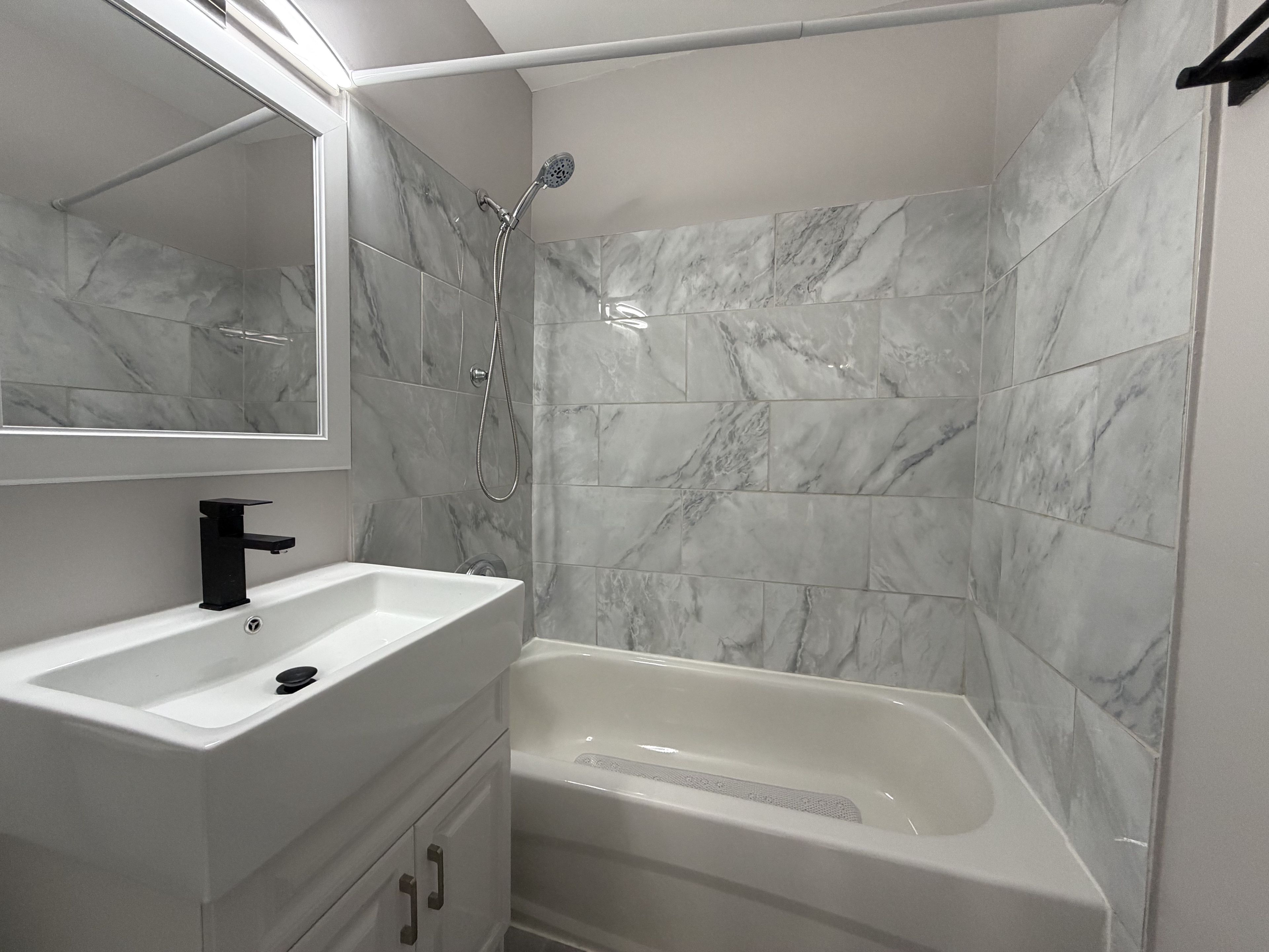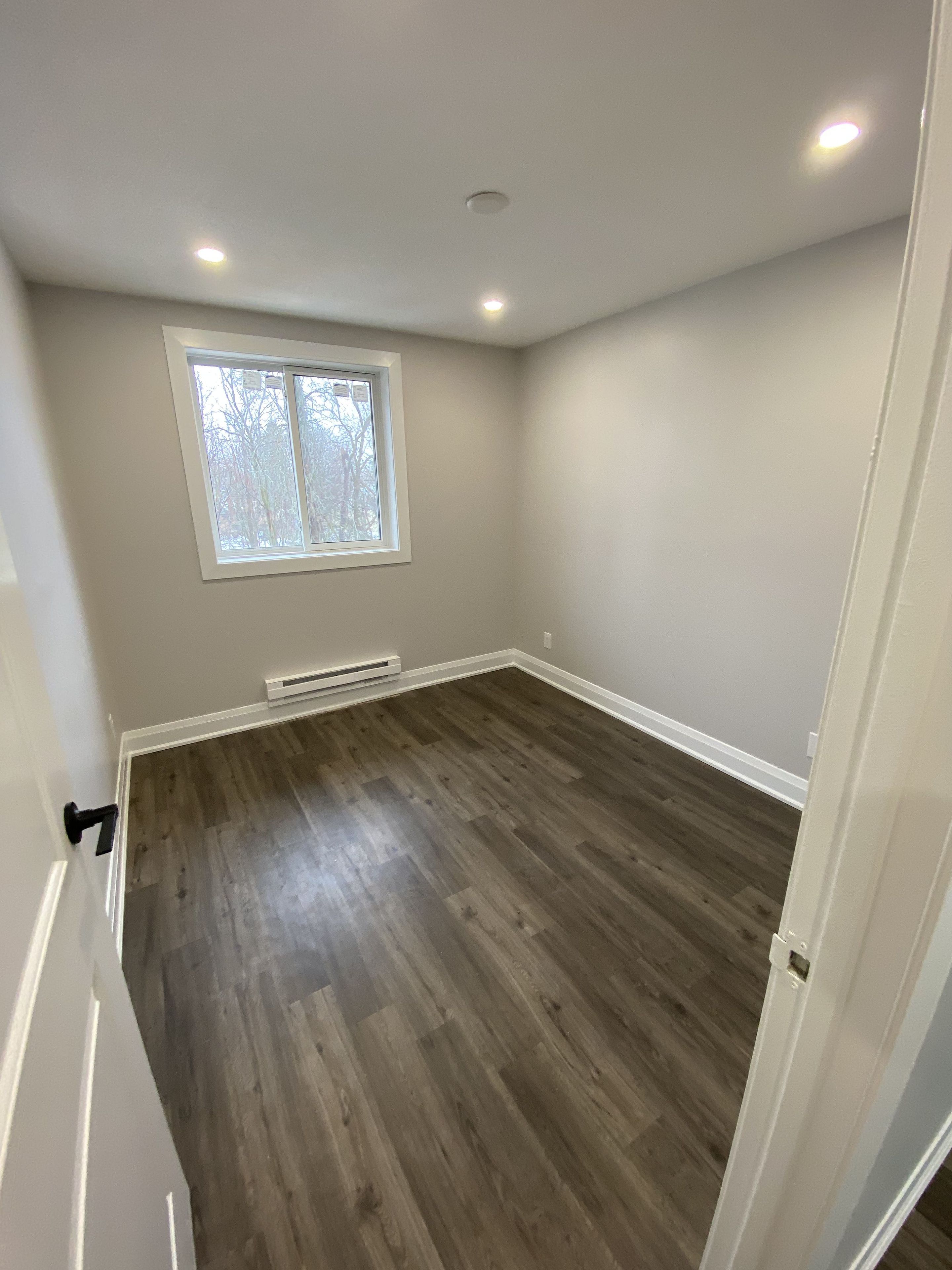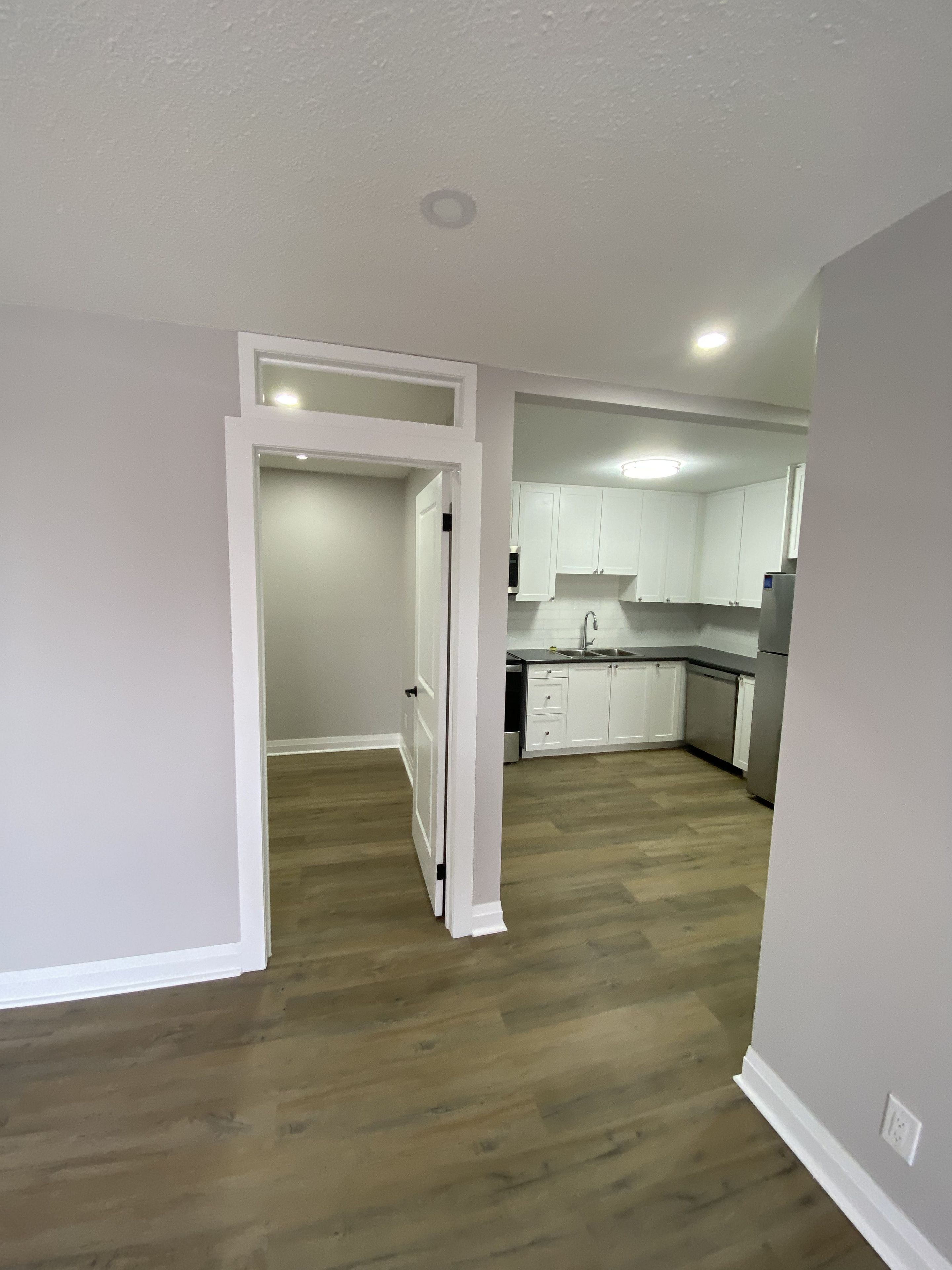 Fully renovated 3-bedroom apartment across from the lake! Enjoy boutique-style living with over 800 sq ft of upscale space featuring a bright, open layout and walk-out balcony. Modern kitchen with full-size stainless steel appliances, ceiling-height cabinetry. Includes stainless steel fridge, stove, dishwasher, range hood, washer & dryer. Brand new led lighting, new windows, and stylish finishes throughout. Primary bedroom offers double-door closet and additional in-suite storage. In-suite washer & dryer, air conditioning, and 4-pc bath complete this exceptional space!
