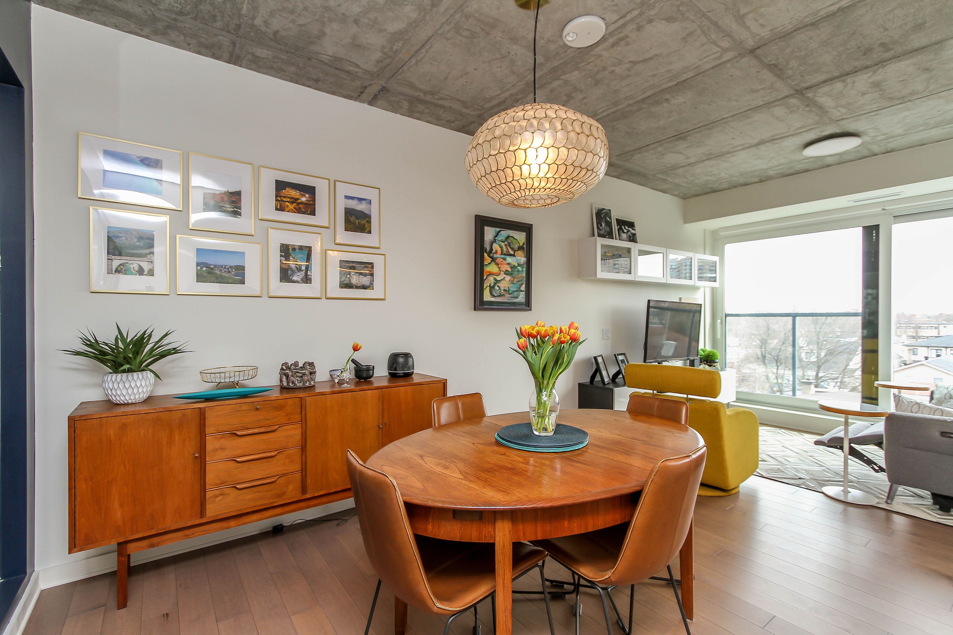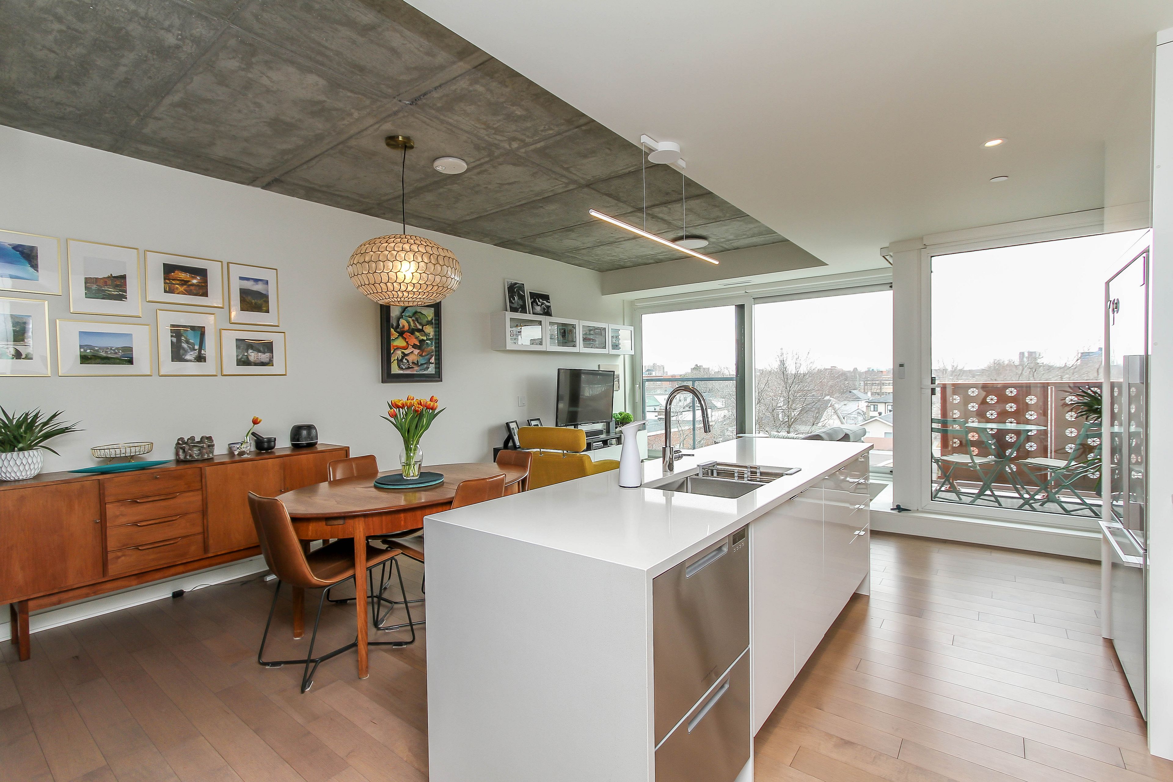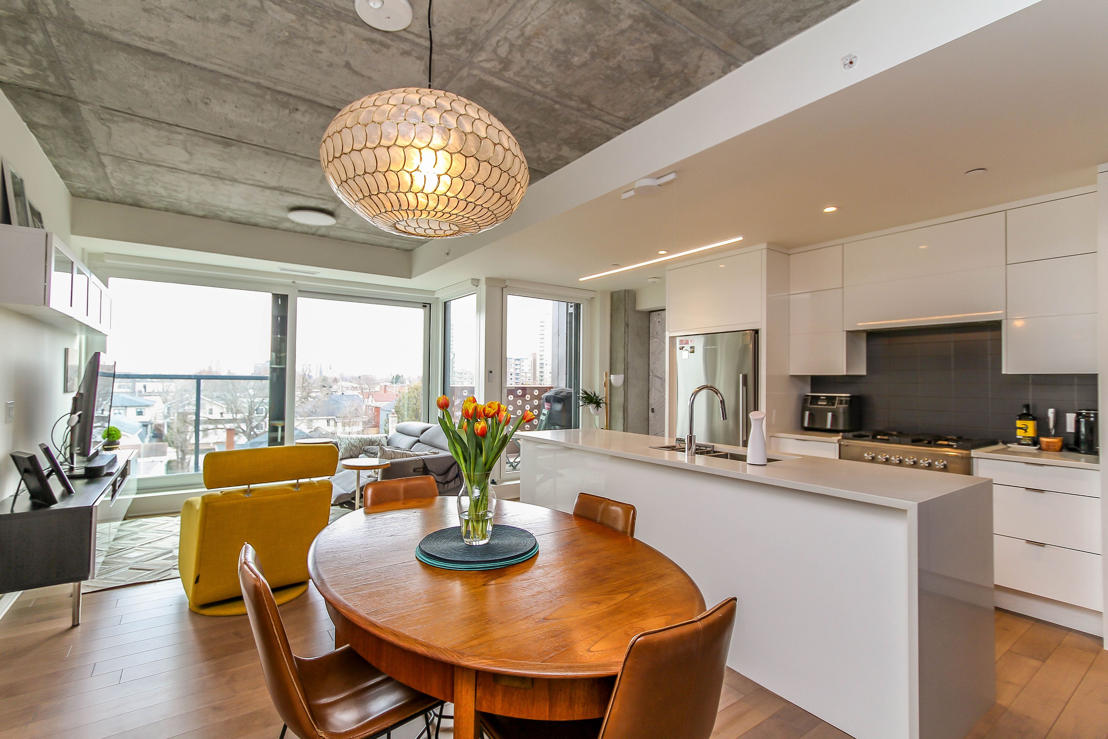 • Open concept living and dining areas filled with natural light.