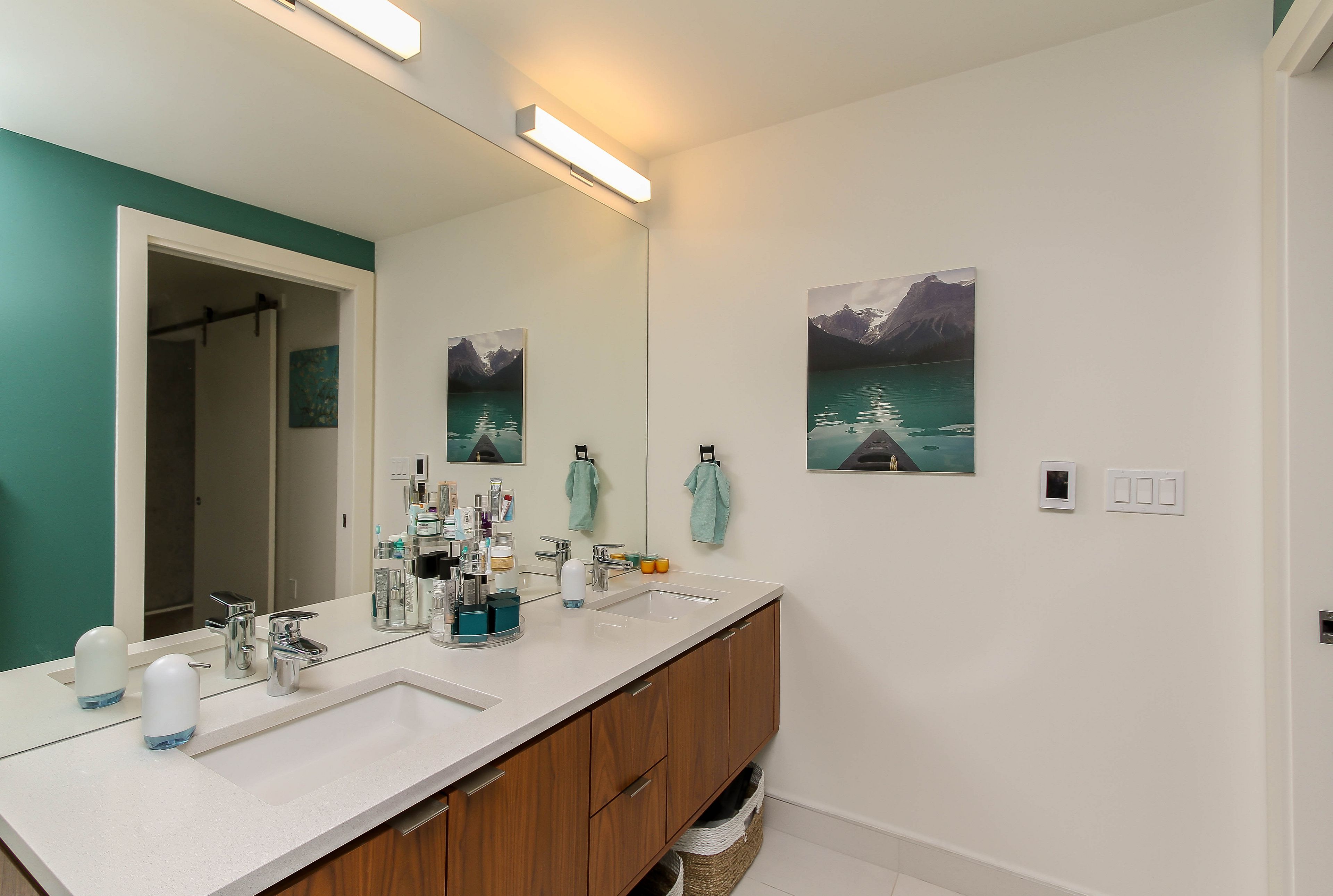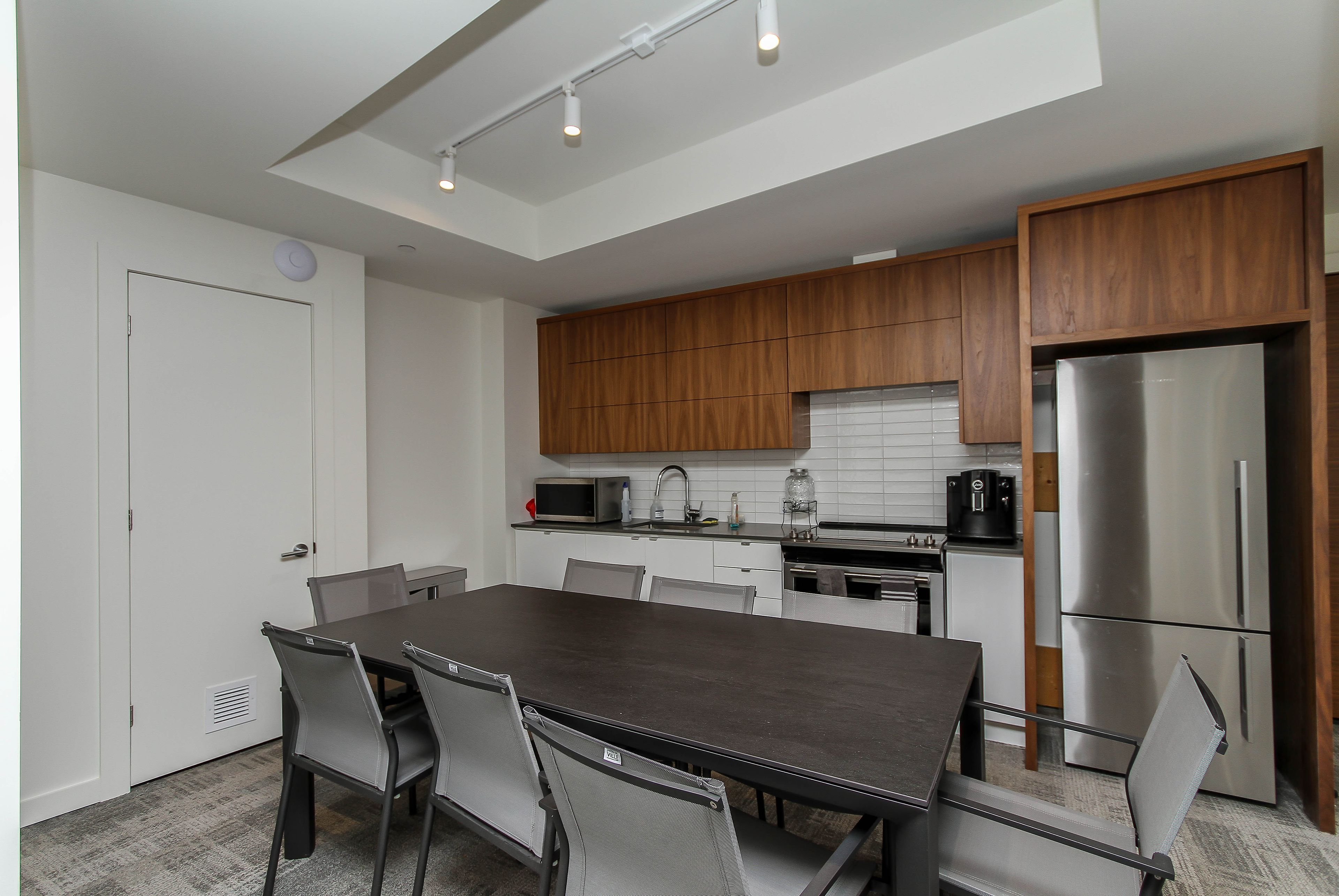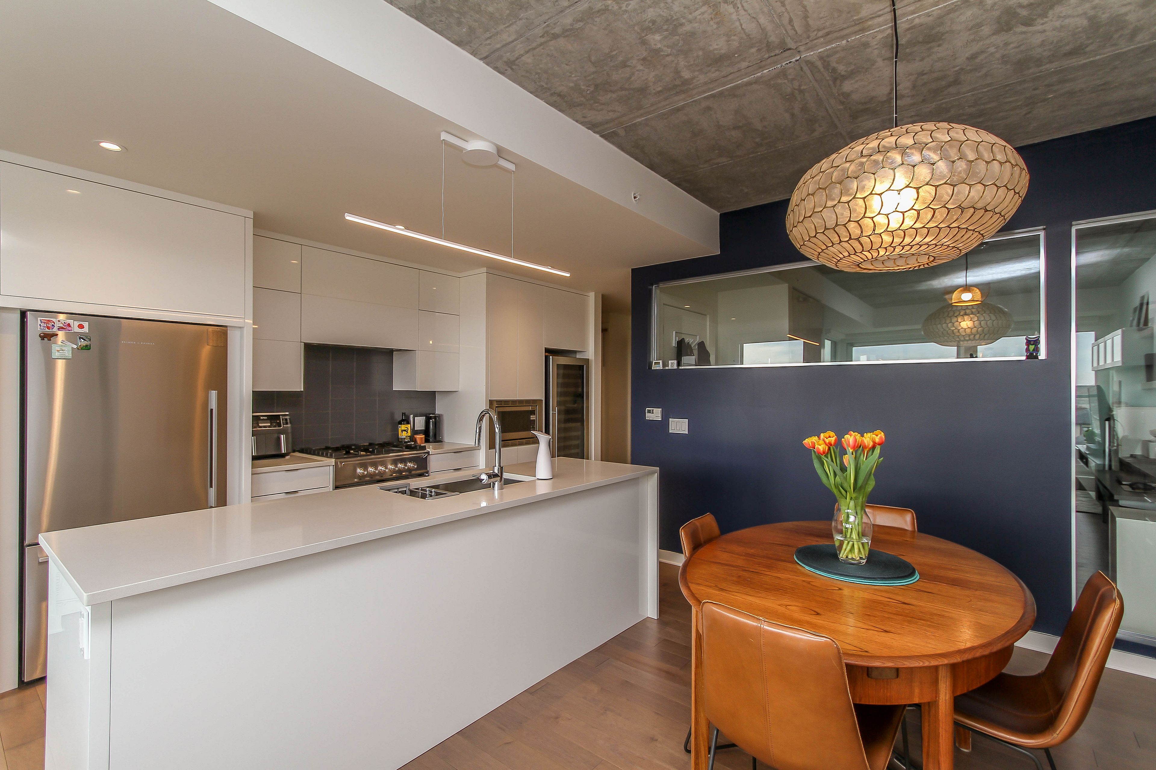 • High-end kitchen featuring quartz counters and premium appliances.