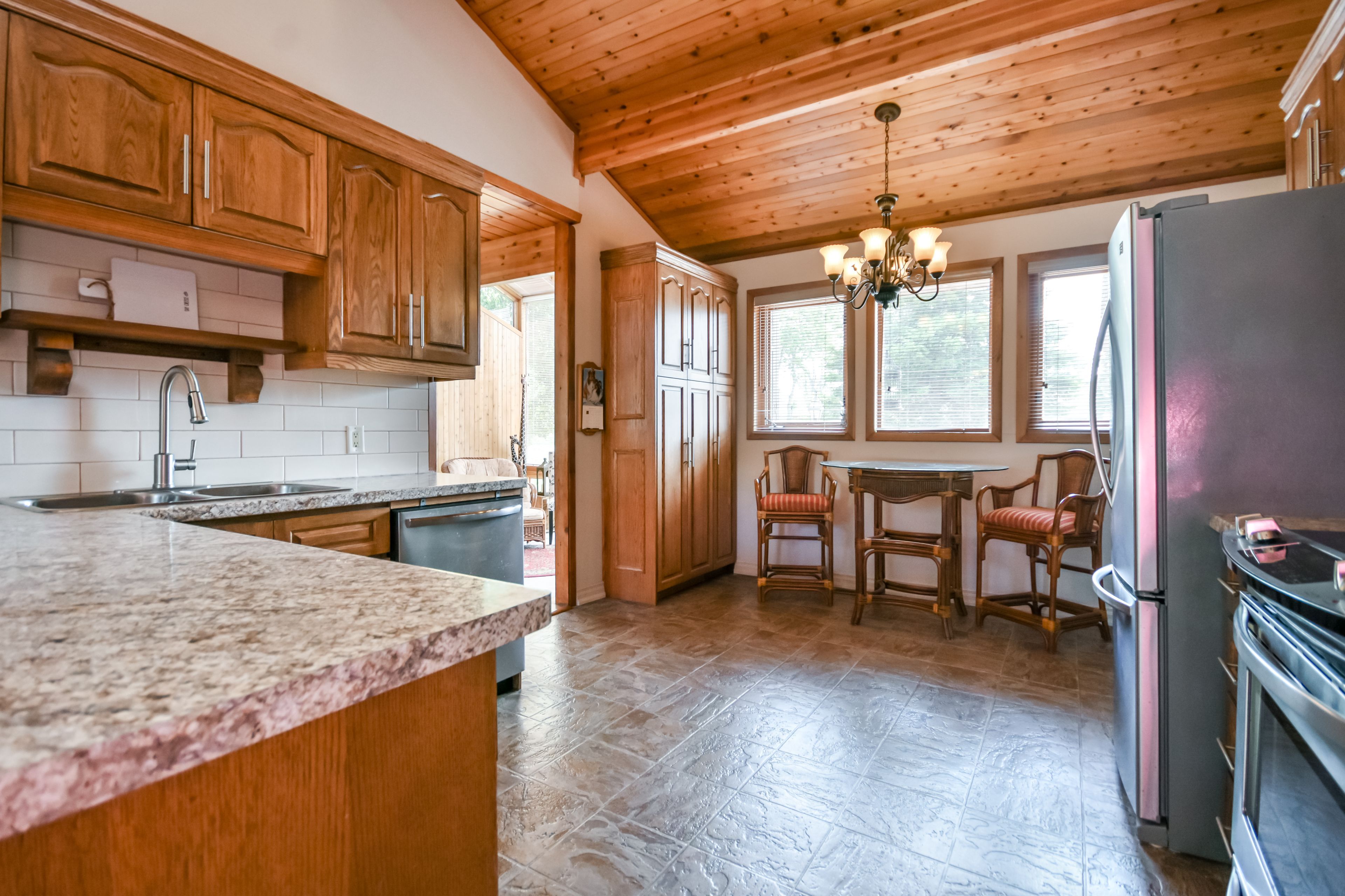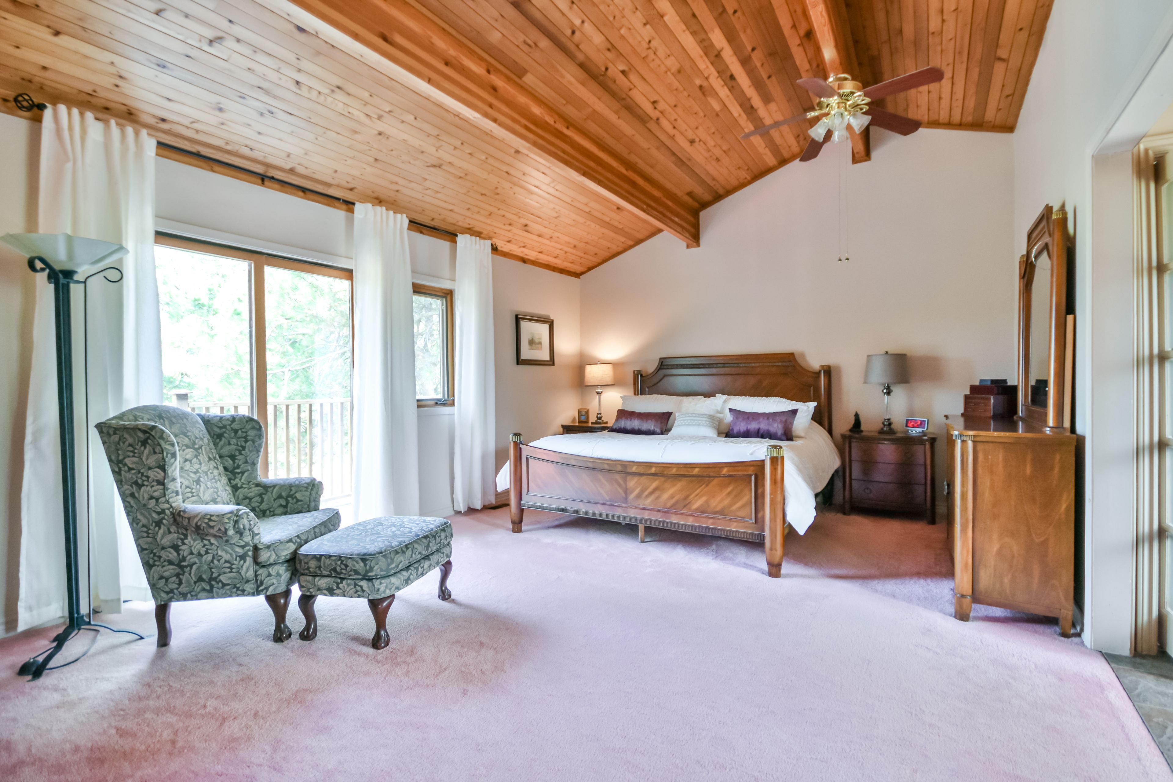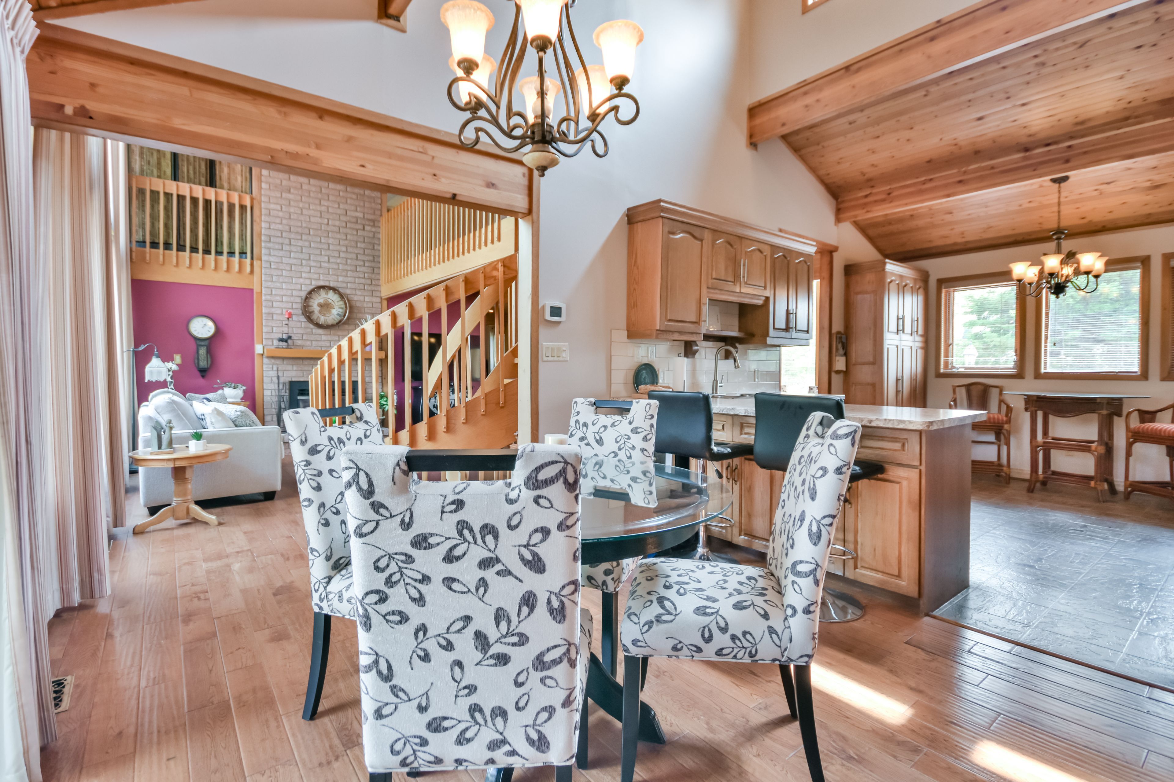Welcome to this beautiful lindal home in the desirable bayshore village community. From the moment you step inside, the solarium-style front entrance with floor-to-ceiling windows sets the tone for a bright and airy living experience. This spacious 4-bedroom, 3-bathroom home features warm tongue-and-groove ceilings throughout, adding character and a cozy ambiance to every room. The main level boasts rich hardwood flooring and expansive windows that flood the space with natural light. Enjoy cozy evenings by the propane fireplace in the open-concept living room. The primary suite is your personal retreat, complete with an ensuite, walk-in closet, and a loft space perfect reading space. The private balcony featuring a spiral staircase leading to the lower patio is perfect for morning coffee or evening relaxation. The finished basement offers additional living space, including a generously sized bedroom and a 3-piece bathroom ideal for guests or extended family. Additional highlights include: member in good standing with bayshore village association ($1,100/2025), bell fibre program. Enjoy all the bayshore village amenities; golf, pickle ball, parks, boating, special events plus much more. Attached 2-car garage with both heat & a/c. Durable steel metal roof. Generac backup generator. Large circular driveway with ample parking. Propane furnace & central a/c and in-ground sprinkler system. Don't miss your chance to own this beautiful, light-filled home in a tranquil and welcoming community. Book your private viewing today!