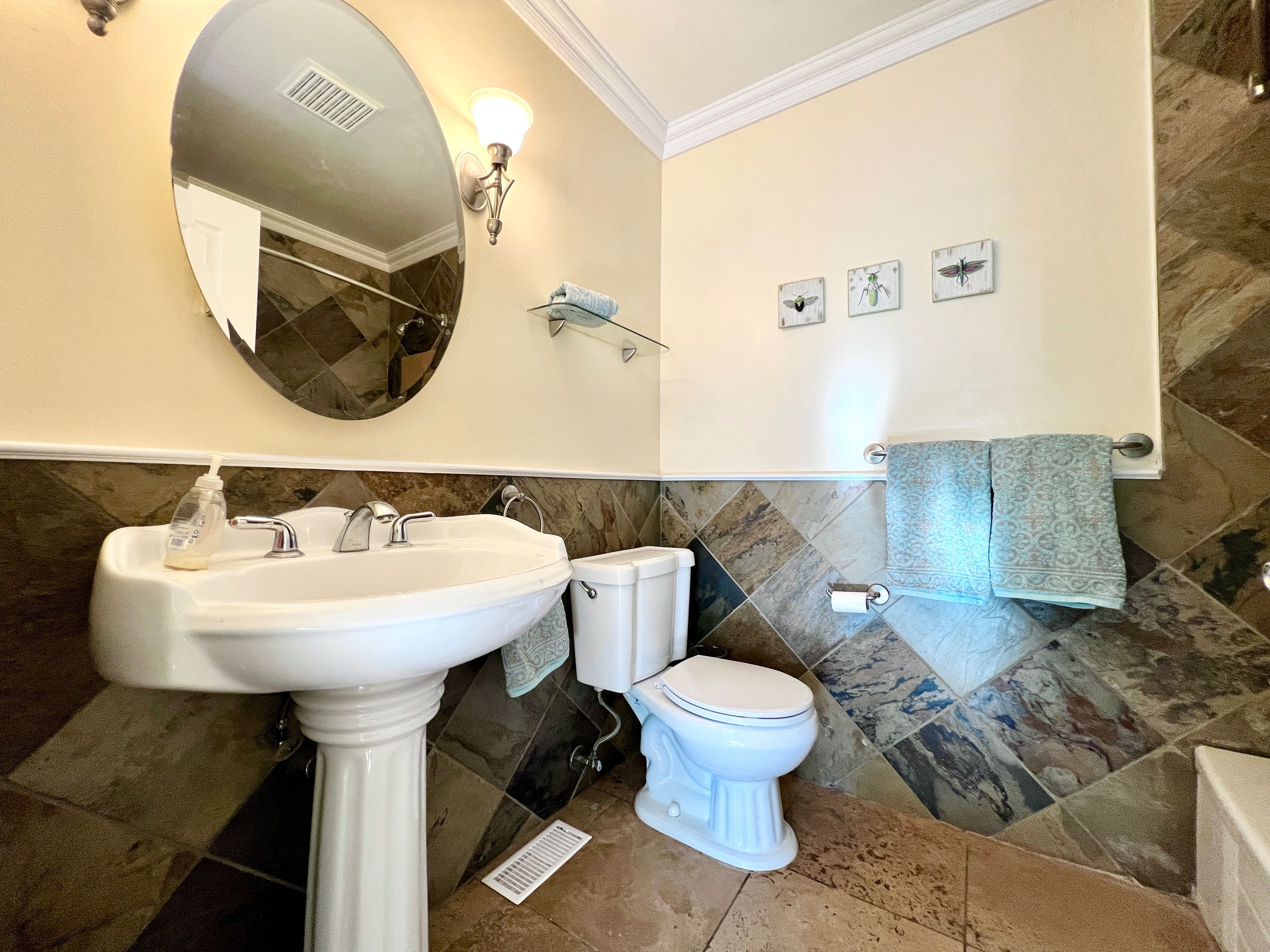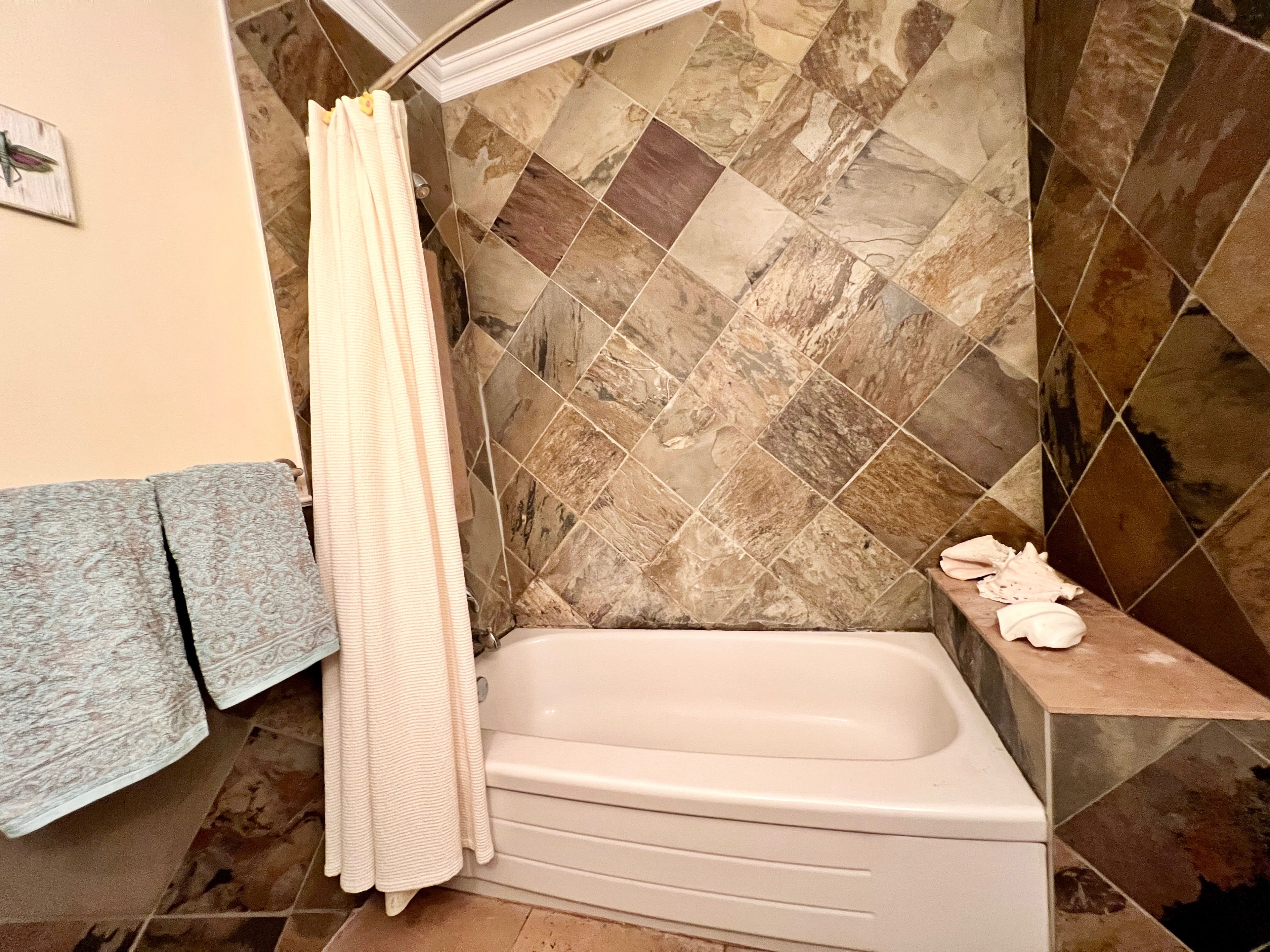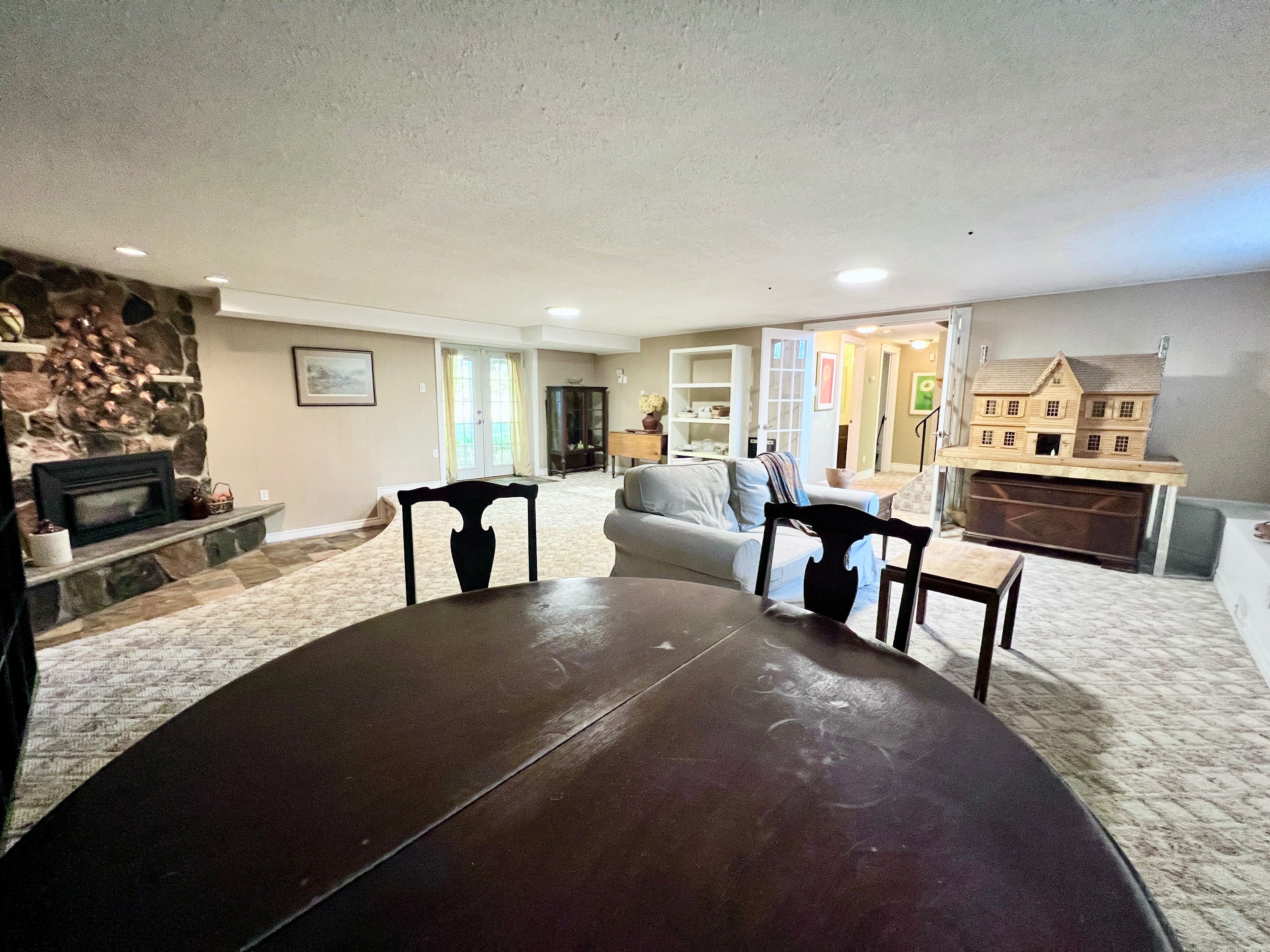 • Cozy stone fireplace perfect for entertaining or family nights in.