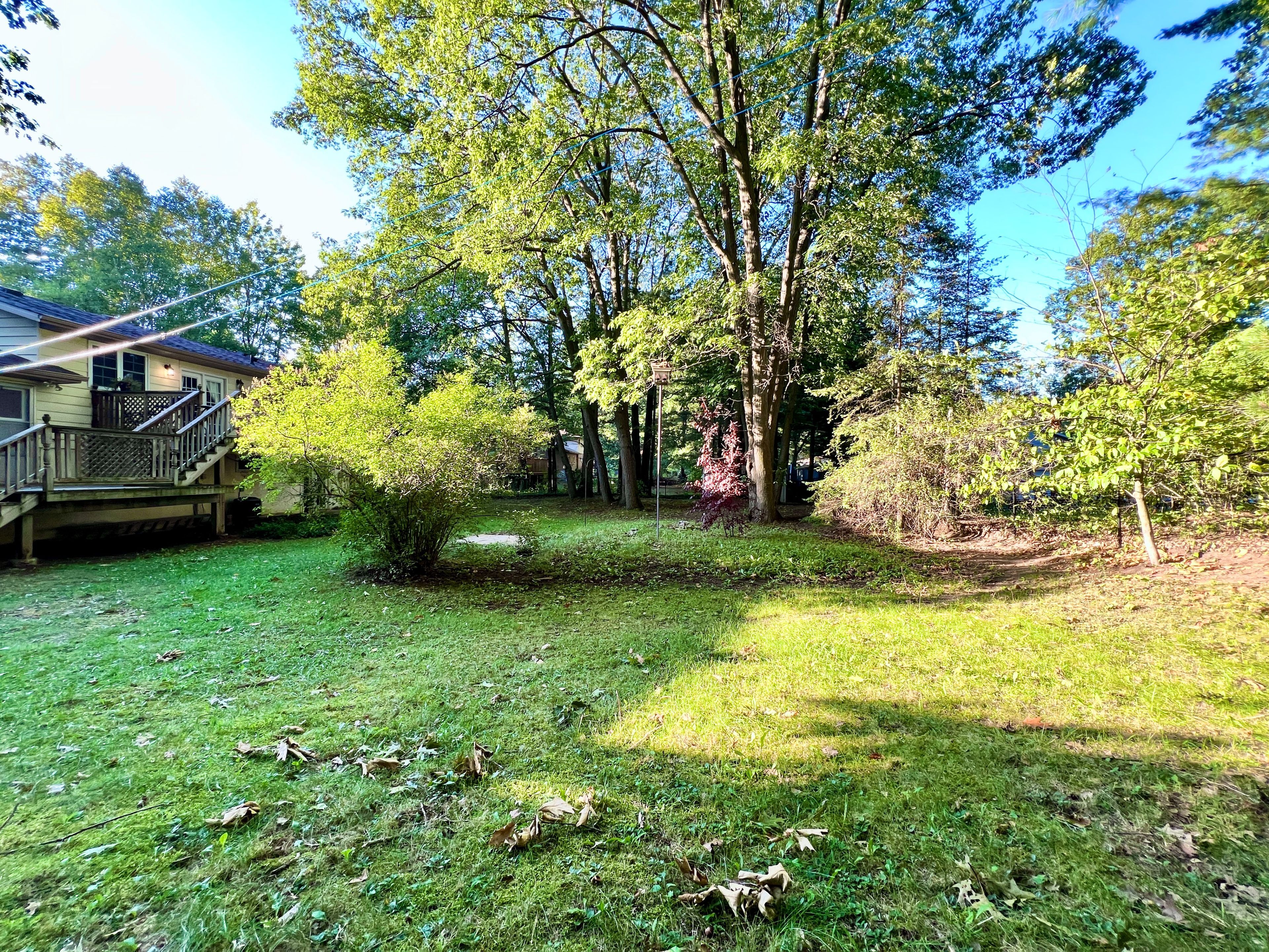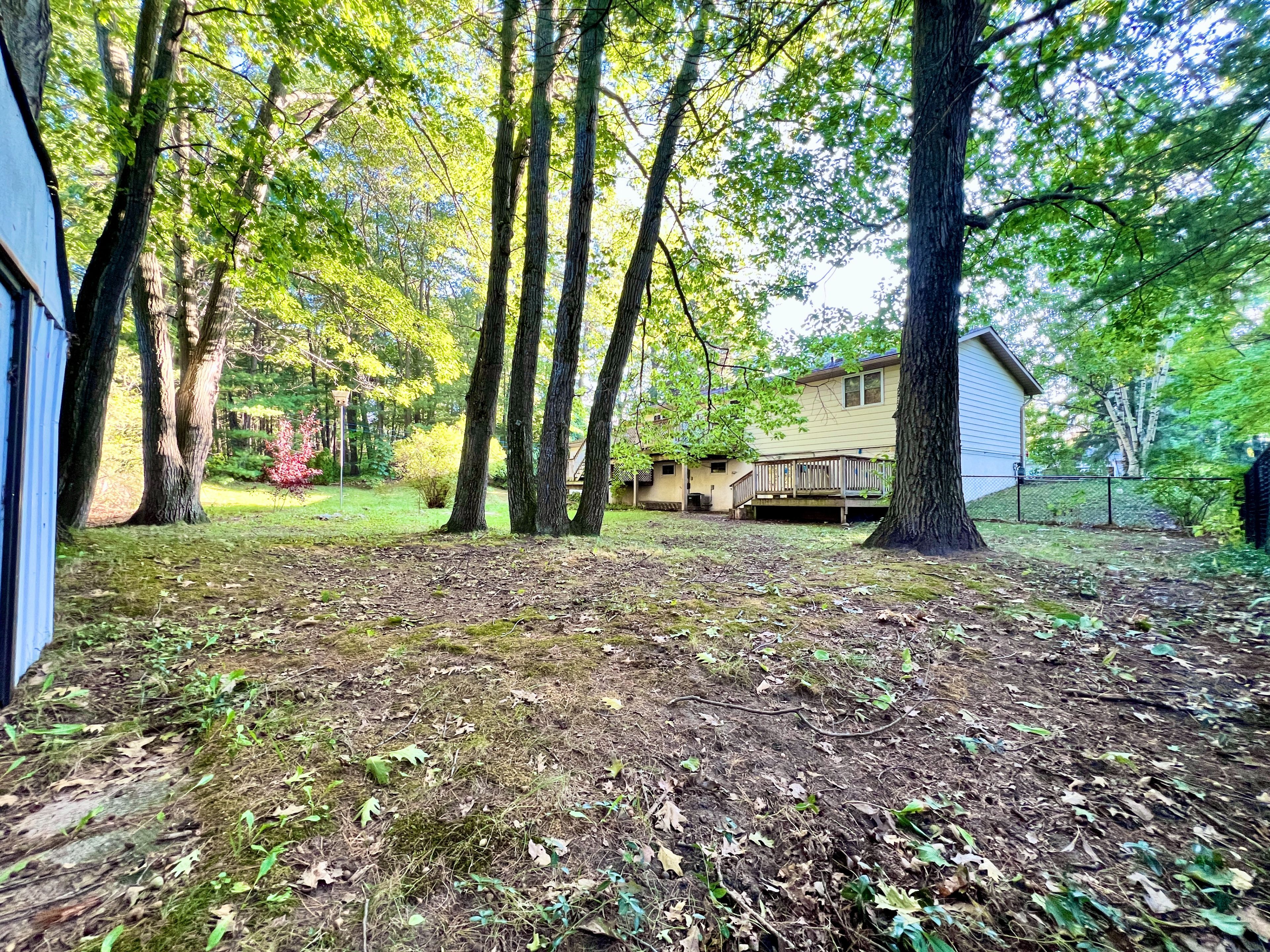• Massive fenced lot surrounded by mature trees for privacy and space.