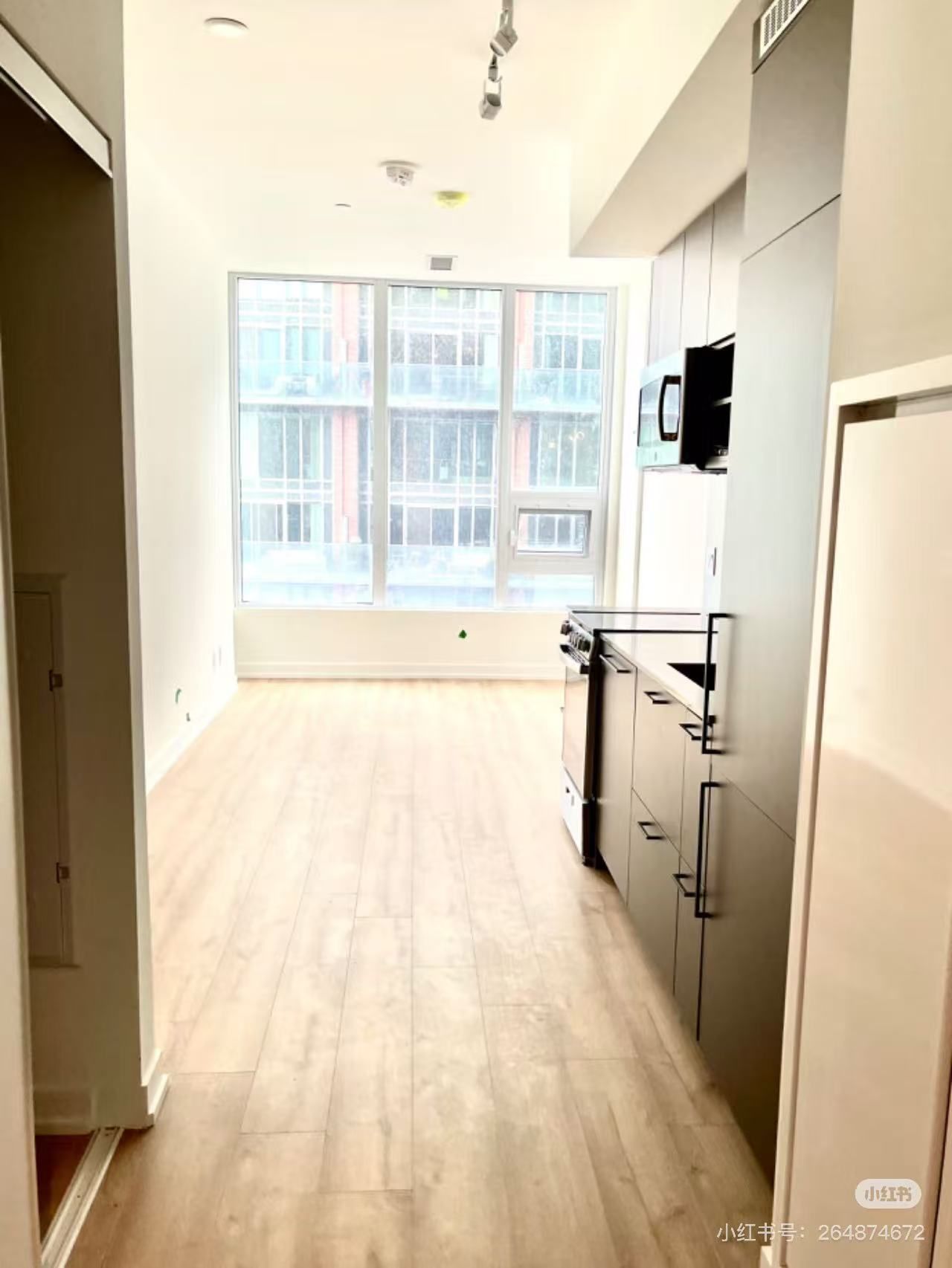 • Modern layout with stylish wide plank flooring and large windows.