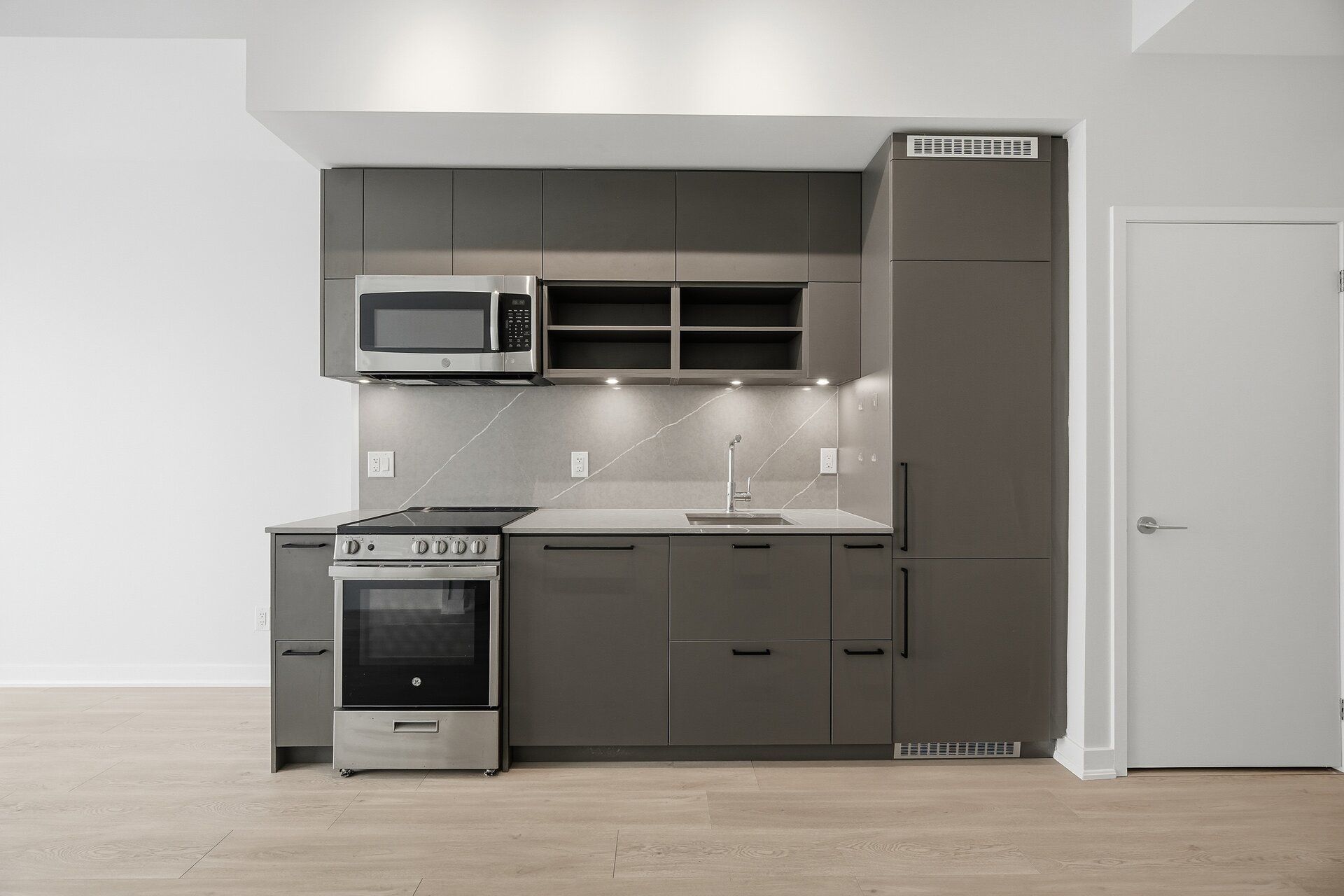 Welcome to liberty village's market tower. This 1+den, 1-bathroom suite offers 611 sq'. Of thoughtfully-designed interior space offering newly installed quality flooring and fresh paint, ideally located on the 15th floor with unobstructed eastern views. Large windows flood the suite with natural light and open onto a sunny private balcony, the perfect spot to enjoy expansive city views and morning sun. The modern kitchen features soft-close cabinetry, built-in appliances, and granite countertops, seamlessly blending style and functionality. The versatile den is ideal for a home office or guest space, while the thoughtfully designed layout maximizes both comfort and usability. Situated in toronto's vibrant west end, you're just steps from liberty village dining and cafes, king west nightlife, trinity bellwoods park, and waterfront trails. Commuters will appreciate easy access to the gardiner expressway and dvp, exhibition go station, and the waterfront streetcar loop, making travel throughout the city effortless.