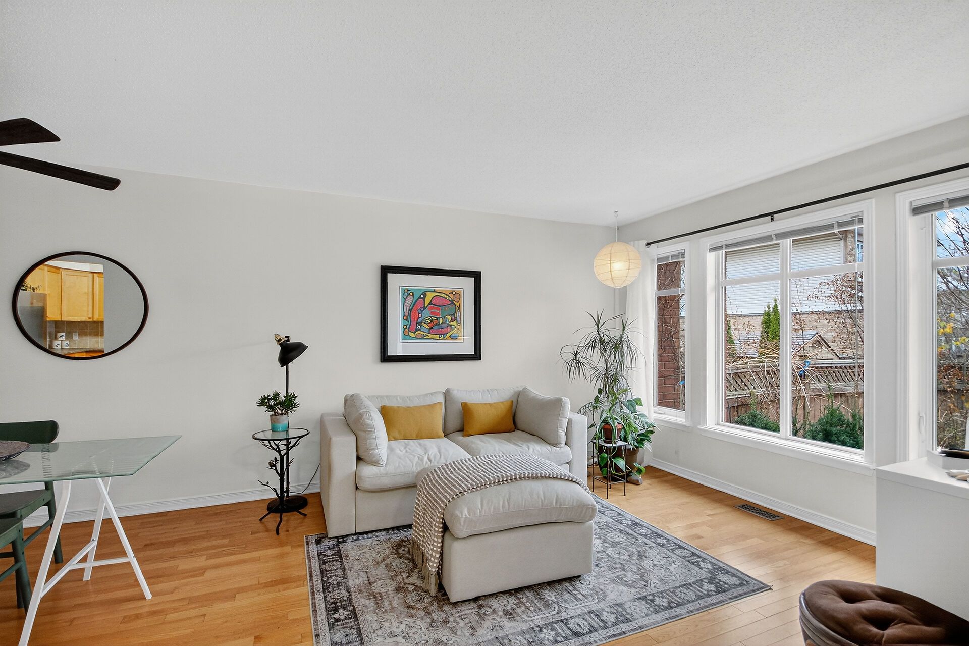 Location! Location! This richcraft 2 storey, 3 bedroom, 2. 5 bathroom townhome is tucked away on desirable gatespark private in kanata lakes. This home features oak hardwood floors in the living room and dining room. Large picture window overlooks the back yard providing garden views. Eat in kitchen with patio door to the back yard. Kitchen offers ample cupboard and counter space with attractive wood cabinetry. Stainless steel kitchen appliances compete the look. Ceramic floors in entrance, kitchen and all bathrooms. 3 spacious bedrooms. Walk in closet in the primary bedroom. The recreation room offers lots of space to entertain and is complete with a corner gas fireplace. Easy care modern vinyl plank floor! Rough in for 4th bathroom and central vac. The fenced backyard offers a quiet oasis away from it all with a deck and planter boxes. Just a gardeners delight! This quiet peaceful location offers proximity to jim malone park. Nothing to do but move in. Kanata lakes has become one of the most popular, premium communities in all of ottawa. Top-rated schools, and excellent shopping and dining, while community is surrounded by nature. Parks, and trails are steps away. . Make it your new home today. Recent updates include: furnace(2019), hot water tank( 2022), basement plank vinyl floor and basement stair carpet (2022), air conditioner (2024), humidifier (2024), roof(2025). Painting(2025) newer stainless appliances. 24 hours irrevocable on all offers.