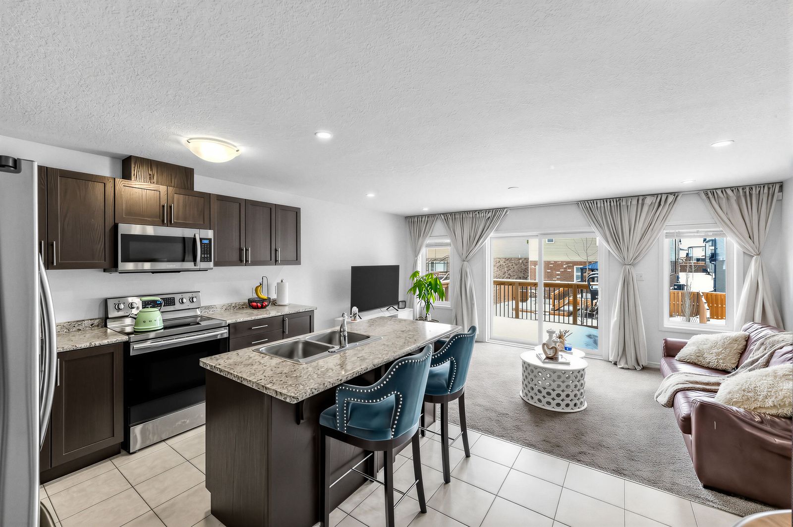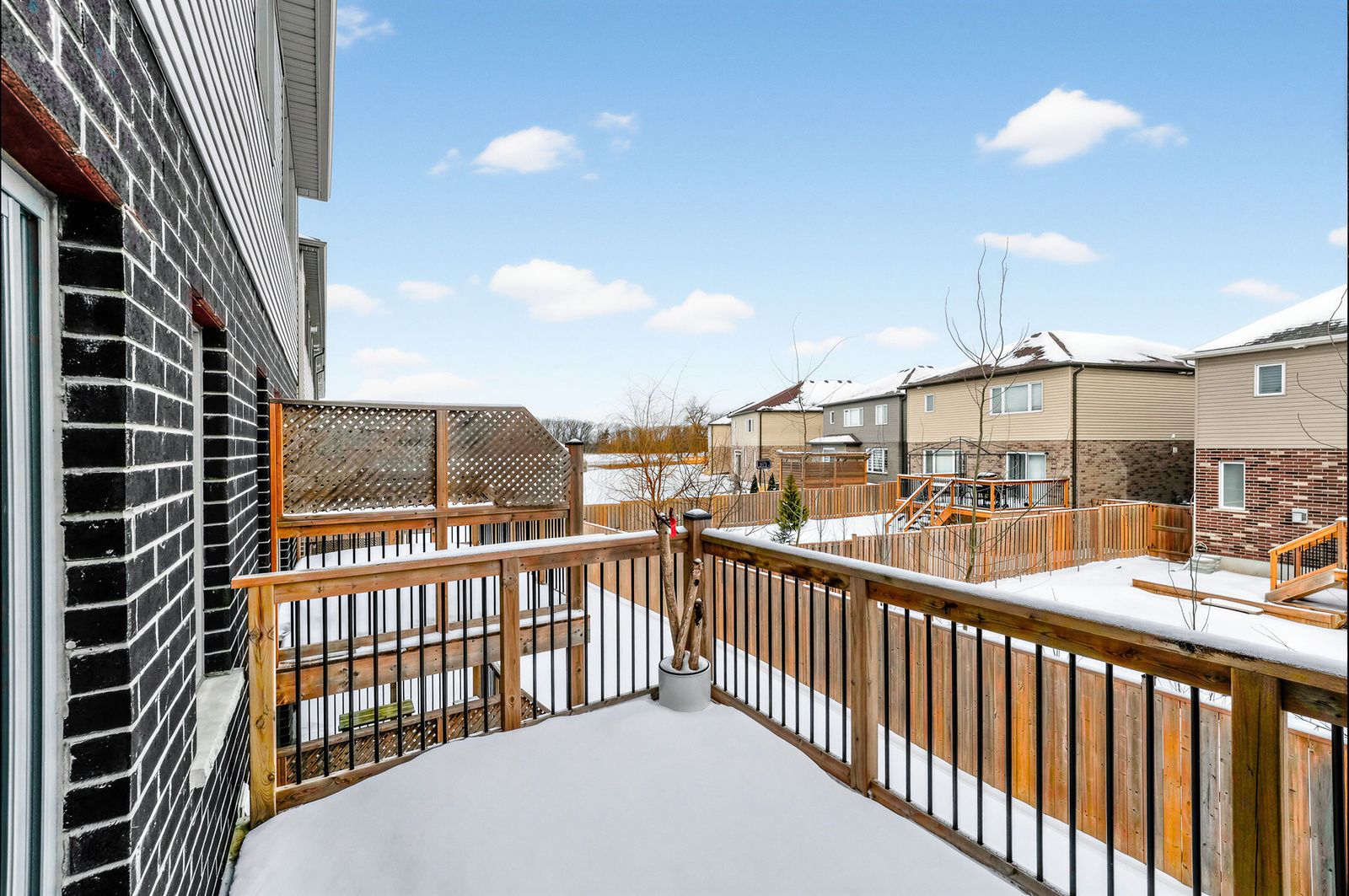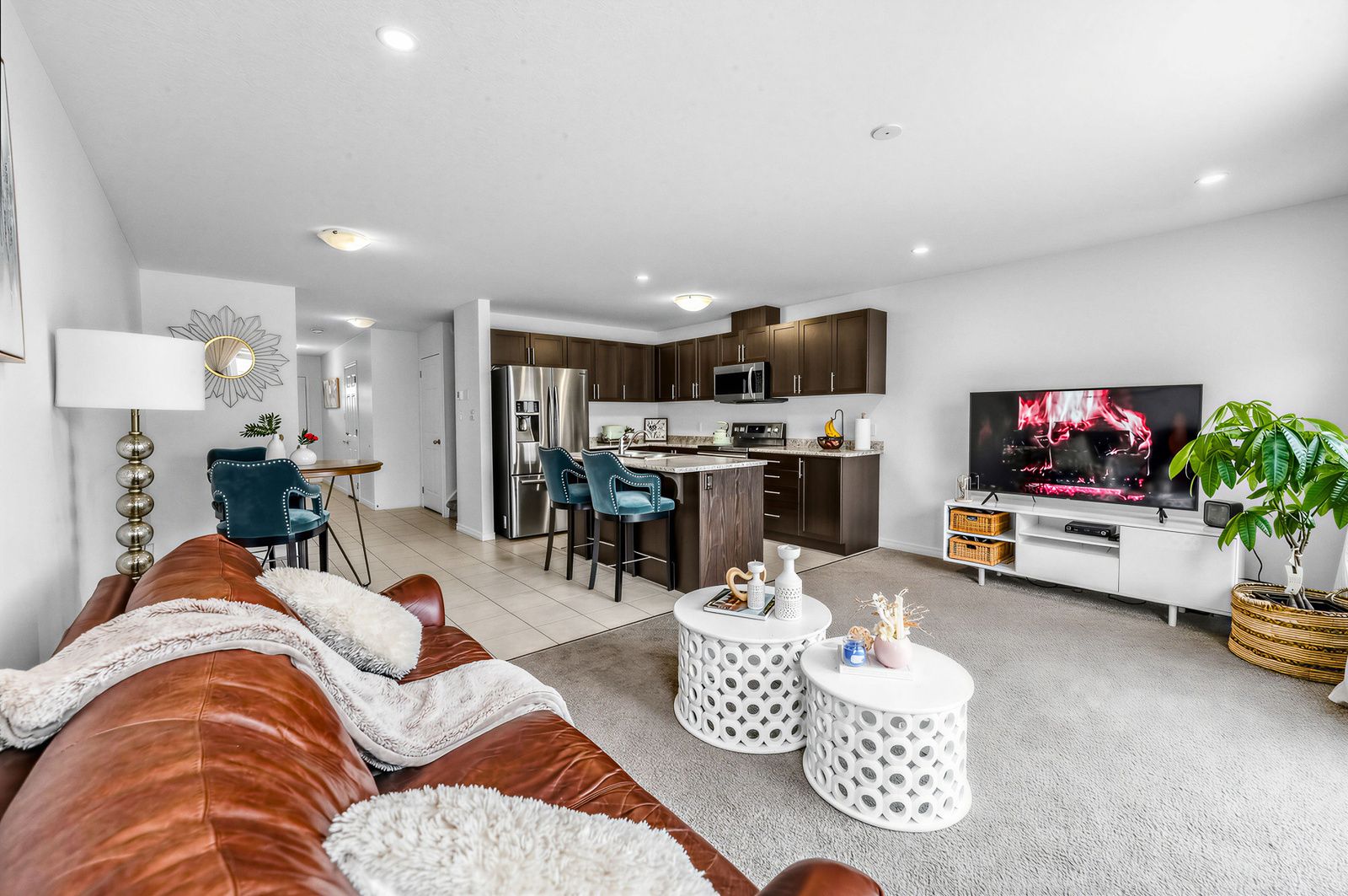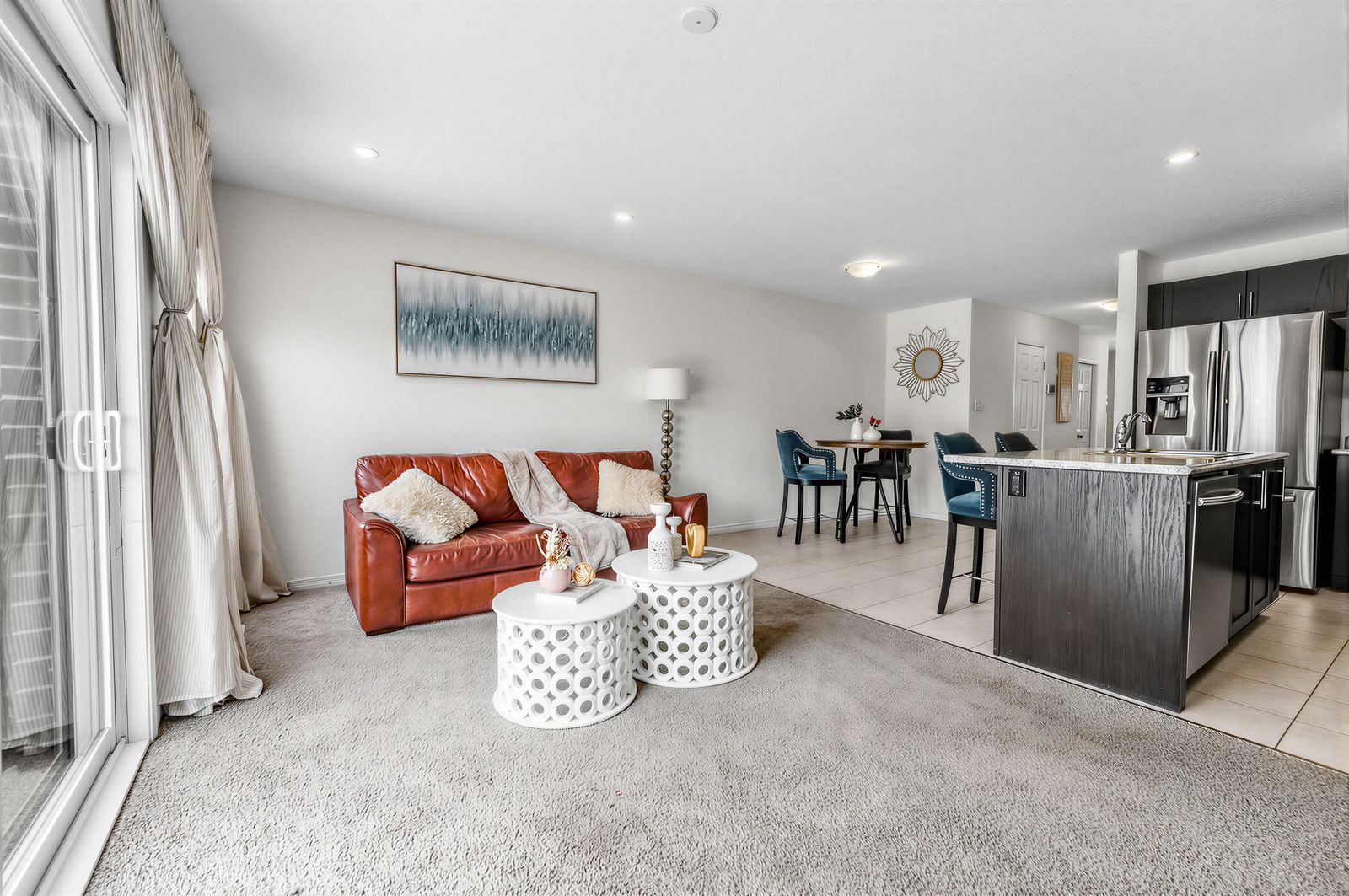 Experience this stunning executive townhouse, featuring a bright, sun-drenched open-concept kitchen, dining, and great room that flows effortlessly to a private kitchen patio. The thoughtfully designed second floor offers ultimate convenience with a dedicated laundry room and three spacious bedrooms, including a primary retreat boasting a large walk-in closet and a private 4-piece ensuite. A rare and lucrative opportunity awaits in the full walk-out basement, which features a separate entrance, a private deck, and a roughed-in washroom-providing a blank canvas for a in-law suite or a secondary income unit to offset your mortgage. Complete with an attached garage offering direct interior access and a location just minutes from the 401 and scenic trails, this home is the ideal choice for families and savvy investors alike.