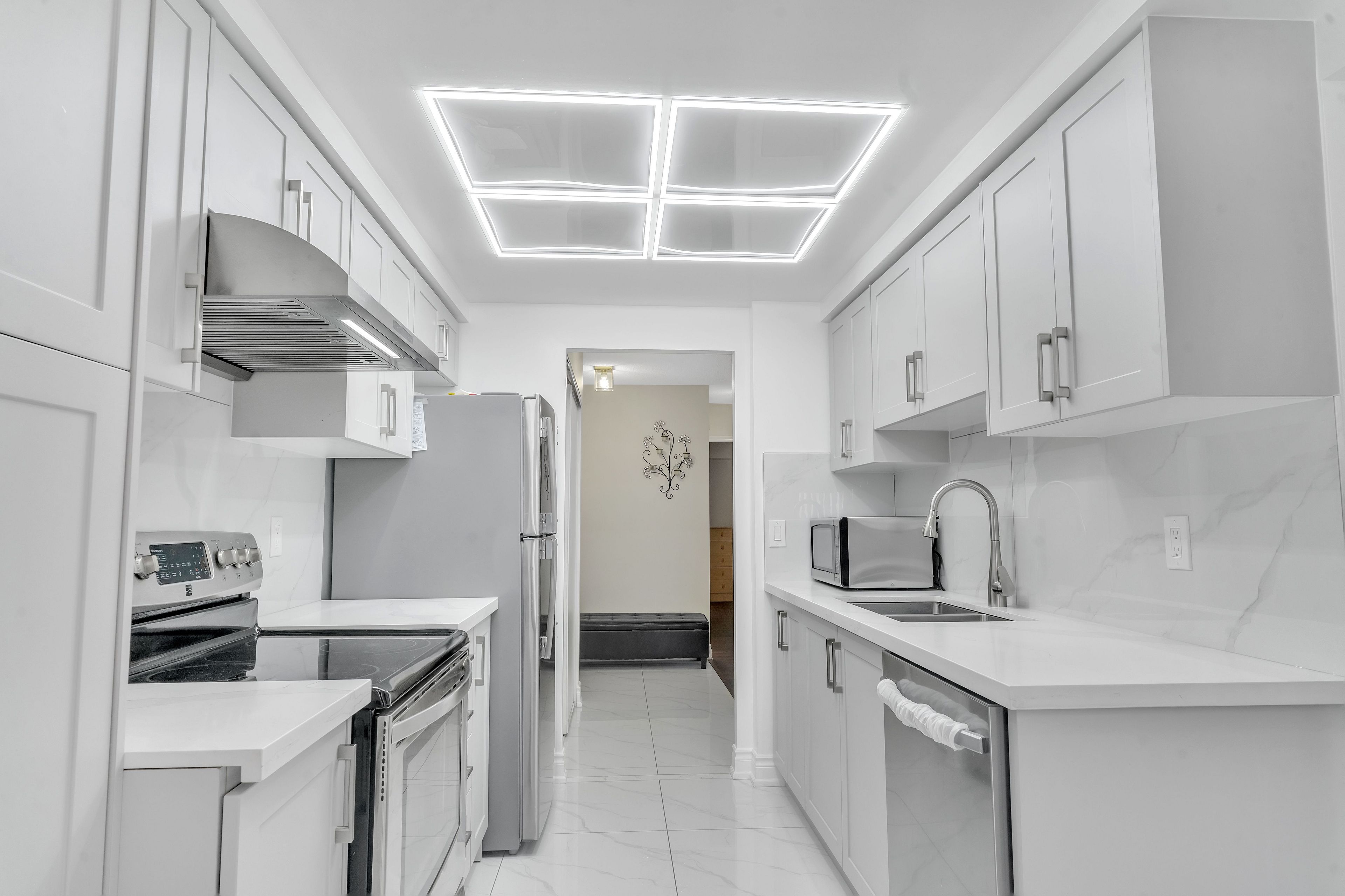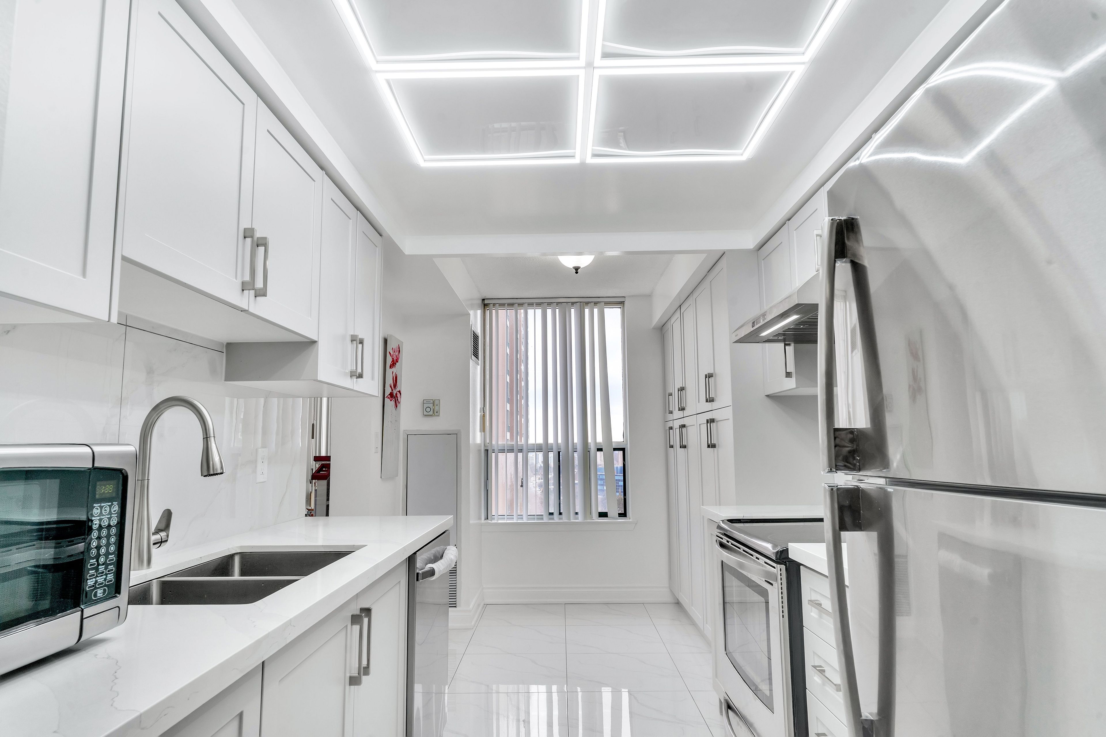 If you are looking for a spacious, economical and newly renovated 2 bedrooms/2 bathrooms condo in the heart of mississauga, here you go! This could be the one for you! This se-facing condo with mesmerizing, amazing views is move-in ready. Includes a great, brightly lit open-concept floor plan with a large solarium with sliding glass door(could be used as a sunroom or home office/work space, kids' playing room or exercise room) in an excellent, well-maintained building with secure 24-hour concierge access. Both bedrooms are good-sized. The master bedroom has a 3 piece ensuite bathroom and a walk-in closet, and there is a 2nd, 3 piece common bathroom for guests conveniently located just across the second bedroom. The newly renovated kitchen, new tiles with the latest design (2025), new cabinets in the kitchen and extra pantry cabinets (2025), new hood with new style (2025), dishwasher (2025), and bathrooms have tiled floors with new vanities, while the bedrooms and living area, including the solarium, are all with new floor (2025). All appliances are included. Close to square one, shopping, trillium hospital, good rating schools, public transit and minutes to the cooksville go station. Amenities include a gym, tennis/squash courts, a party room, and underground parking. Condo fees are very reasonable, which include heat, a/c and water!! Other than the gym, this building has a billiards and table tennis room, gaming and movie room.