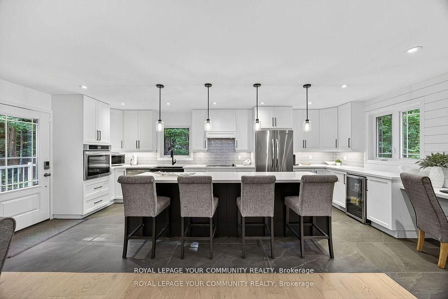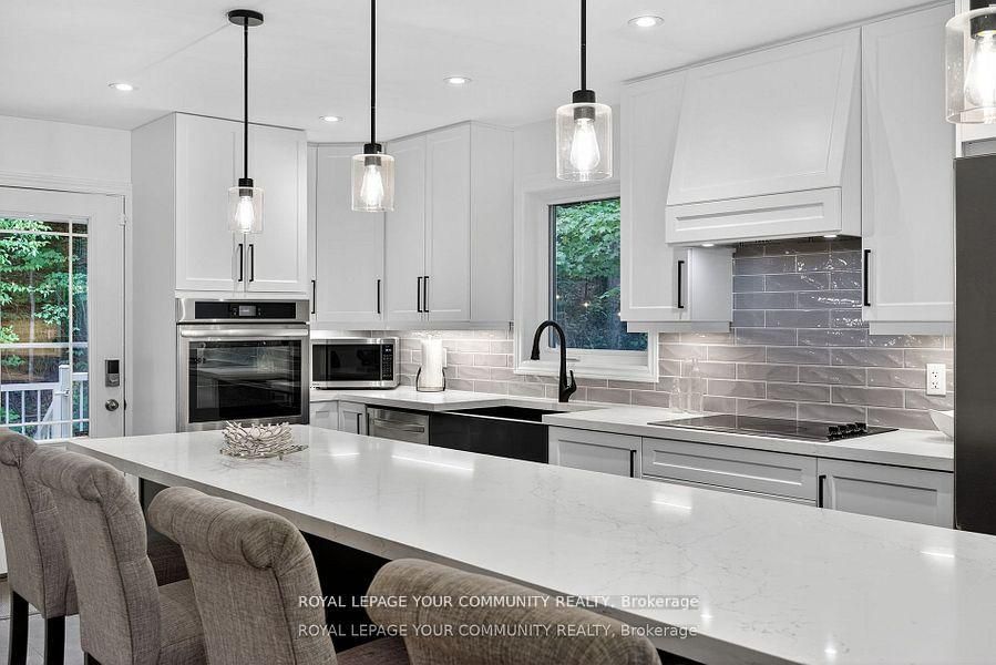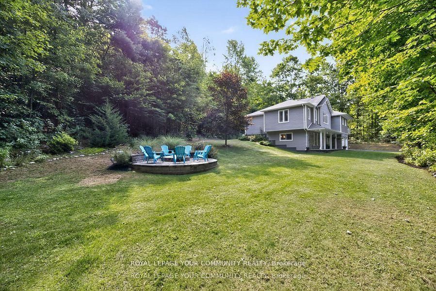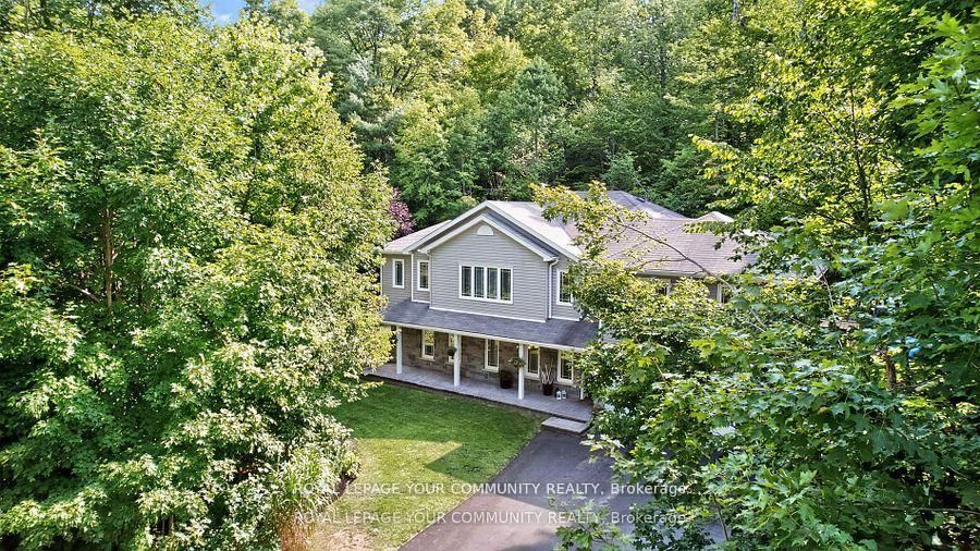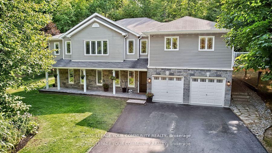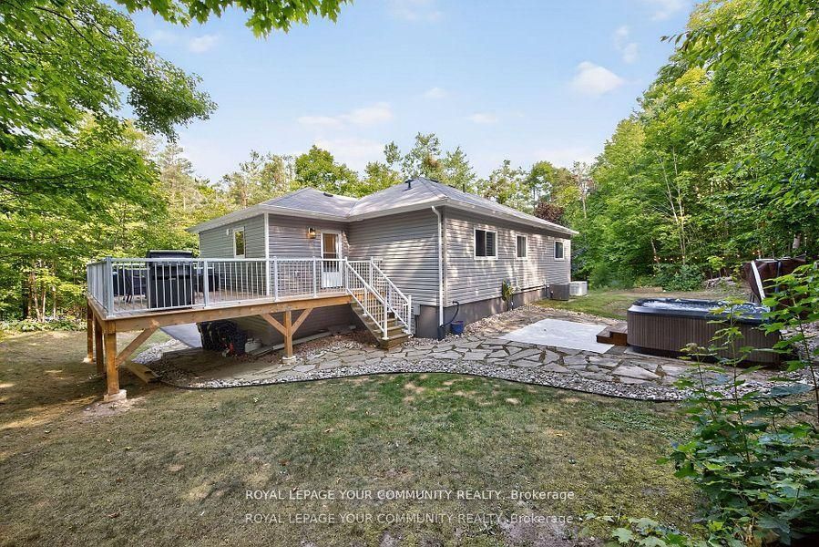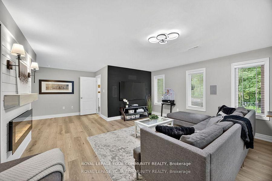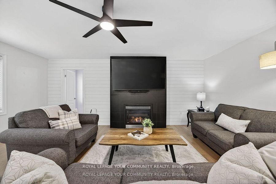 Tucked away on a private treed lot with just over an acre, this beautifully renovated raised bungalow, complete with a thoughtful addition, is located in the highly sought-after sugarbush community of oro-medonte. Offering approximately 2,500 sq. Ft. Of total finished living space, this home delivers a blend of luxury, location, and lifestyle. The home features 3+1 bedrooms and three full 4-piece bathrooms, including two recently updated and stylish, with one upgraded from a former 2-piece, enhancing functionality and value. Enter through a spacious foyer, with a few stairs leading up to the welcoming main level filled with natural light and finished with hardwood & tile flooring throughout. The open-concept layout connects the kitchen, dining, and living areas. The enlarged, modern kitchen showcases white shaker-style cabinetry with soft-close drawers, quartz countertops, stainless steel appliances, and an oversized island. From here, walk out to the wraparound deck overlooking peaceful natural surroundings or relax in the living room, anchored by a gas fireplace. The primary bedroom features an elegant, spa-inspired 4-piece ensuite with a freestanding tub and stand-up shower, while two additional generously sized bedrooms and a beautifully finished full bathroom complete this floor. The bright ground level offers additional living space with a family room featuring an electric fireplace, a fourth bedroom with a 4-piece semi-ensuite, a laundry room, and direct access to the double garage. Outdoors, enjoy the tranquility of nature with a hot tub and fire pit, with added conveniences including a sprinkler system, gas bbq hookup, shed, and generator. Ideally located minutes from horseshoe valley resort, the new horseshoe heights school, hwy 11 and hwy 400, and only 20 minutes to barrie or orillia. Enhanced by thoughtful renovations throughout, this move-in-ready home offers privacy, timeless design, and a welcoming setting to enjoy every season.
