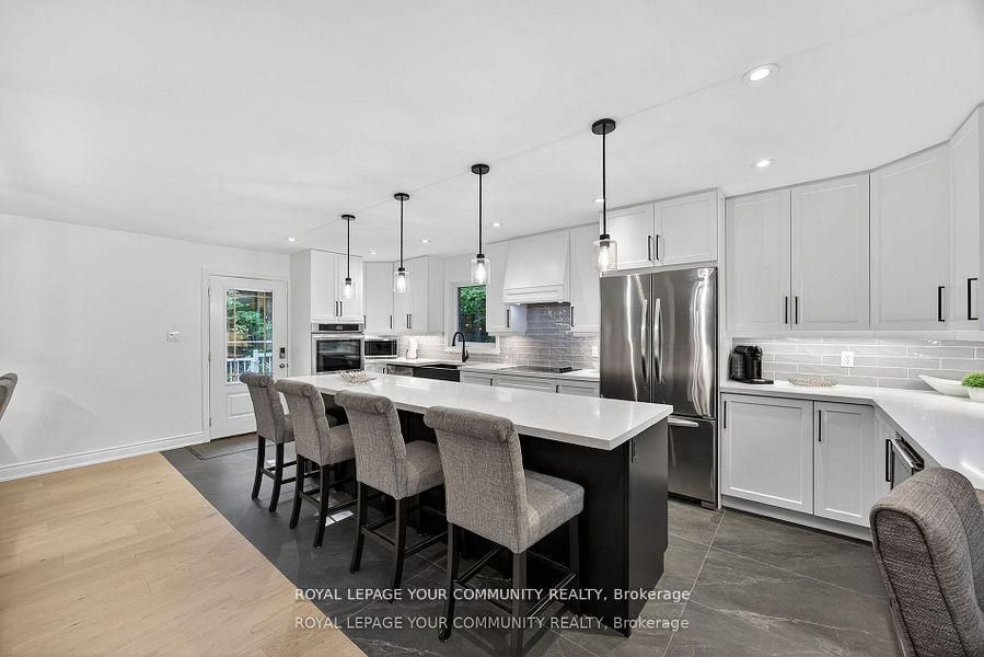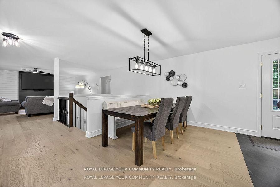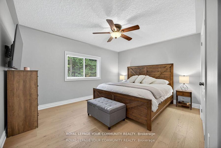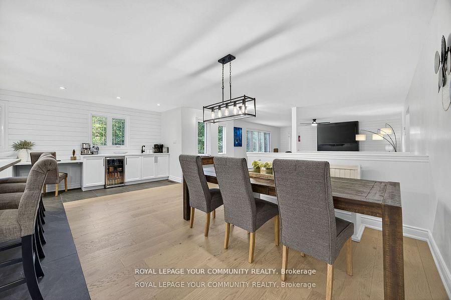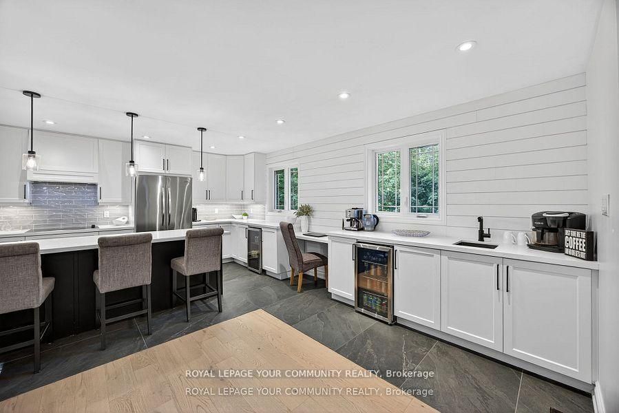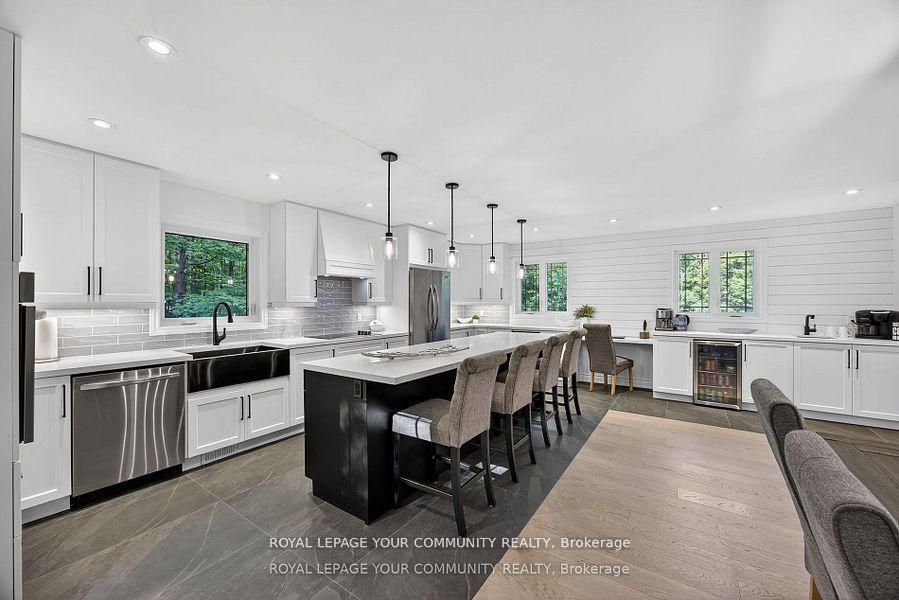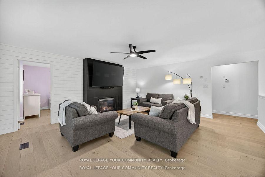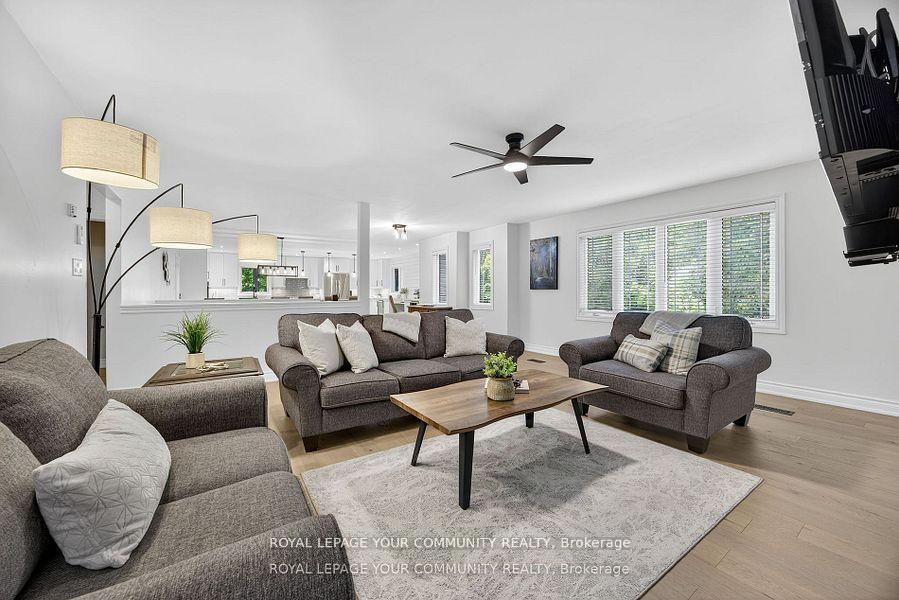 Tucked away on a private treed lot with just over an acre, this beautifully renovated raised bungalow, complete with a thoughtful addition, is located in the highly sought-after sugarbush community of oro-medonte. Offering approximately 2,500 sq. Ft. Of total finished living space, this home delivers a blend of luxury, location, and lifestyle. The home features 3+1 bedrooms and three full 4-piece bathrooms, including two recently updated and stylish, with one upgraded from a former 2-piece, enhancing functionality and value. Enter through a spacious foyer, with a few stairs leading up to the welcoming main level filled with natural light and finished with hardwood & tile flooring throughout. The open-concept layout connects the kitchen, dining, and living areas. The enlarged, modern kitchen showcases white shaker-style cabinetry with soft-close drawers, quartz countertops, stainless steel appliances, and an oversized island. From here, walk out to the wraparound deck overlooking peaceful natural surroundings or relax in the living room, anchored by a gas fireplace. The primary bedroom features an elegant, spa-inspired 4-piece ensuite with a freestanding tub and stand-up shower, while two additional generously sized bedrooms and a beautifully finished full bathroom complete this floor. The bright ground level offers additional living space with a family room featuring an electric fireplace, a fourth bedroom with a 4-piece semi-ensuite, a laundry room, and direct access to the double garage. Outdoors, enjoy the tranquility of nature with a hot tub and fire pit, with added conveniences including a sprinkler system, gas bbq hookup, shed, and generator. Ideally located minutes from horseshoe valley resort, the new horseshoe heights school, hwy 11 and hwy 400, and only 20 minutes to barrie or orillia. Enhanced by thoughtful renovations throughout, this move-in-ready home offers privacy, timeless design, and a welcoming setting to enjoy every season.