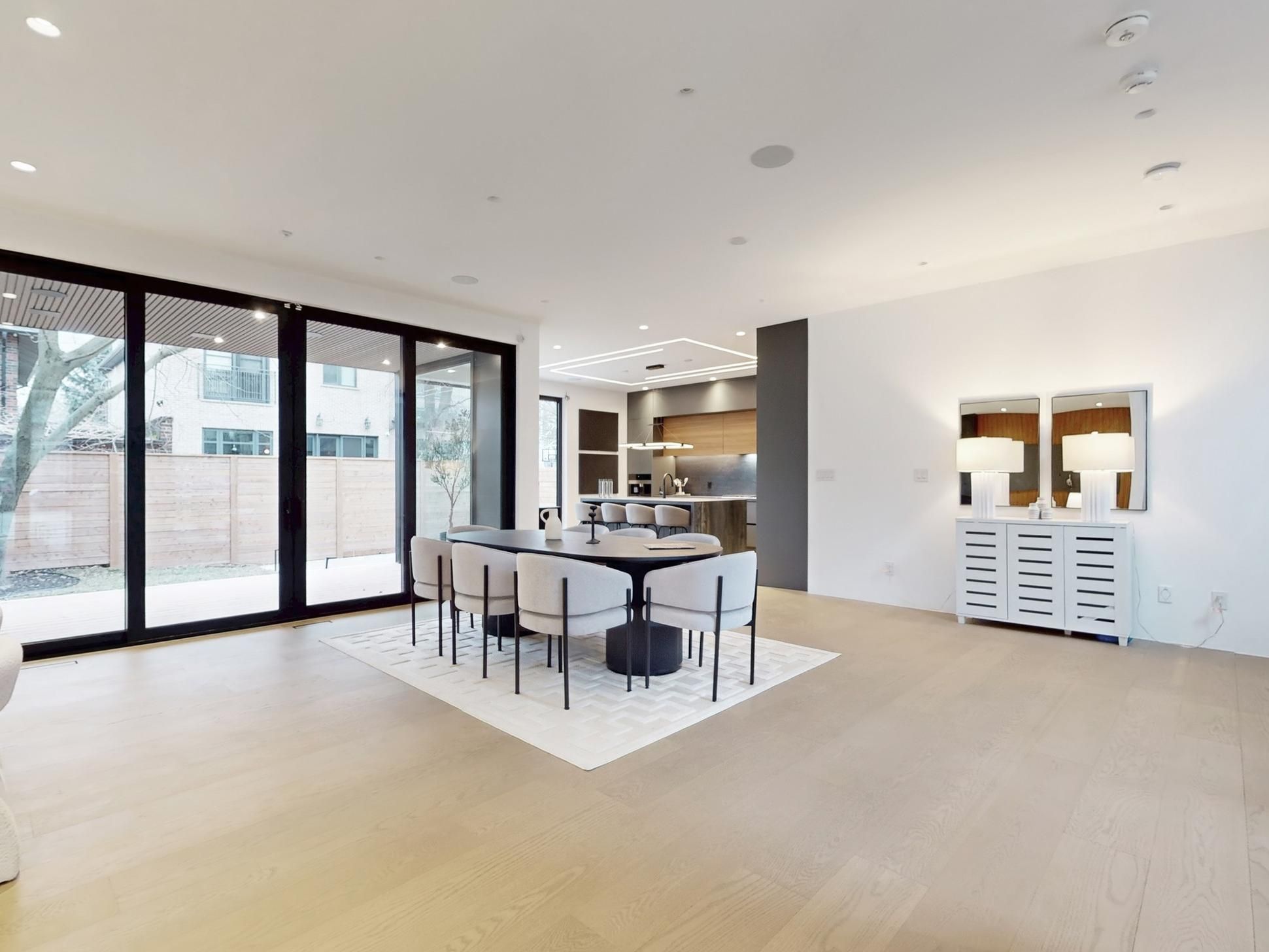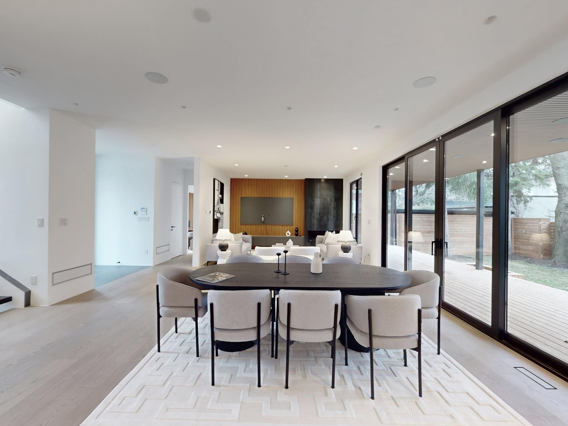 Exceptionally located in toronto's highly sought-after chaplin estates community, this brand-new custom modern home sits proudly on a rare 60 ft frontage and delivers exceptional luxury throughout. Featuring a striking mixed facade, oversized black windows, 10 ft ceilings, floating glass staircase, level-5 wall finish, and hydronic heated basement floors. Designer kitchen with custom cabinetry, waterfall island, and full sub-zero/wolf appliances. Spa-inspired baths with frameless glass, rain showers, full-height tile, and a smart toilet in the primary suite. Finished basement includes a steam & dry sauna. Complete smart-home system, two-zone hvac, trimless lighting, and premium landscaping with stone patio, deck, irrigation, and soffit lighting-offering refined living in one of the city's most coveted neighbourhoods.