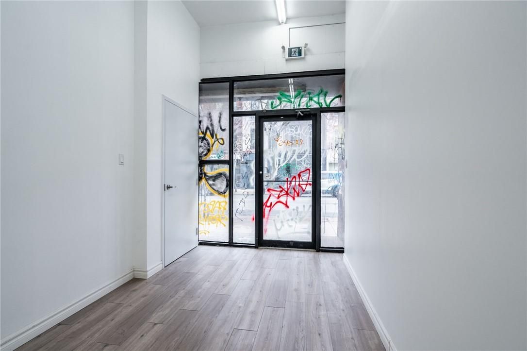 All 3 units. Floor to ceiling windows let in ample natural light in large space. High ceilings, incredible potential! Street access on james st n with its great foot traffic. 3 parking spots. Flexible on possession.