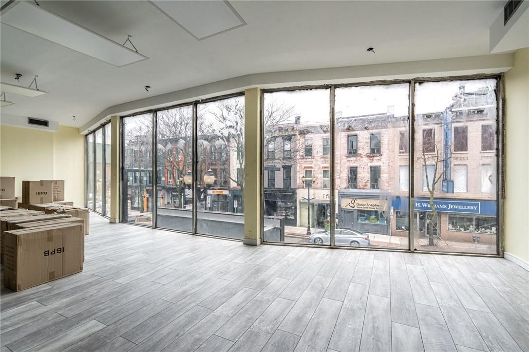 2nd floor unit with access off the back of the building. Floor to ceiling windows let in ample natural light to this large space. High ceilings, incredible potential! On james st n with its great foot traffic. 1 parking spot for this unit. Flexible on possession.