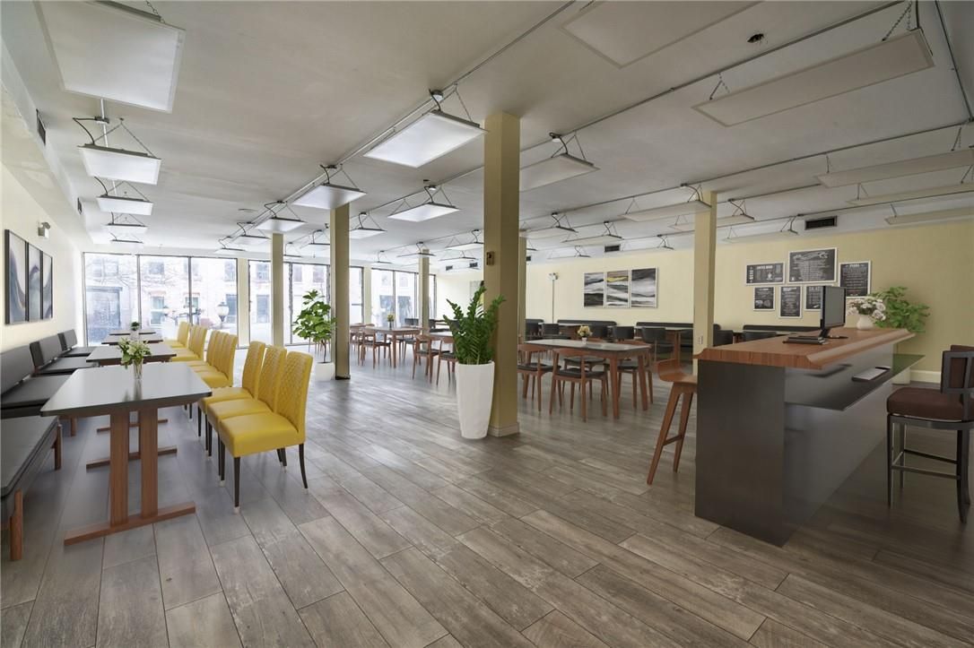 • Floor to ceiling windows create a bright and airy atmosphere.